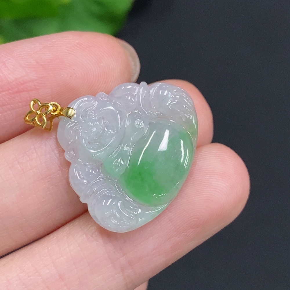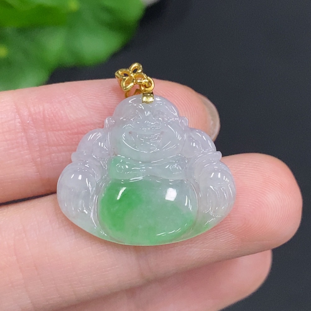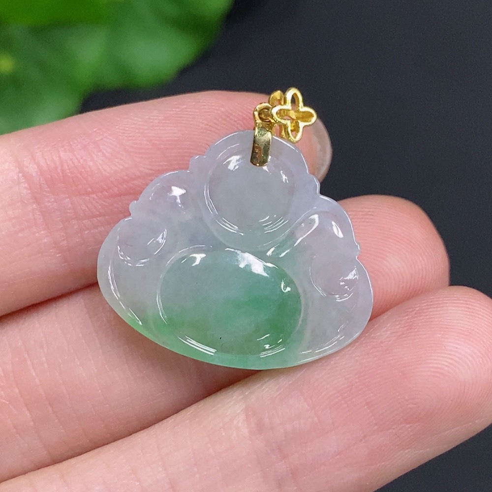 Jadeite Buddha Pendant with 18K Gold Clasp, Total Weight Approximately 2.6g