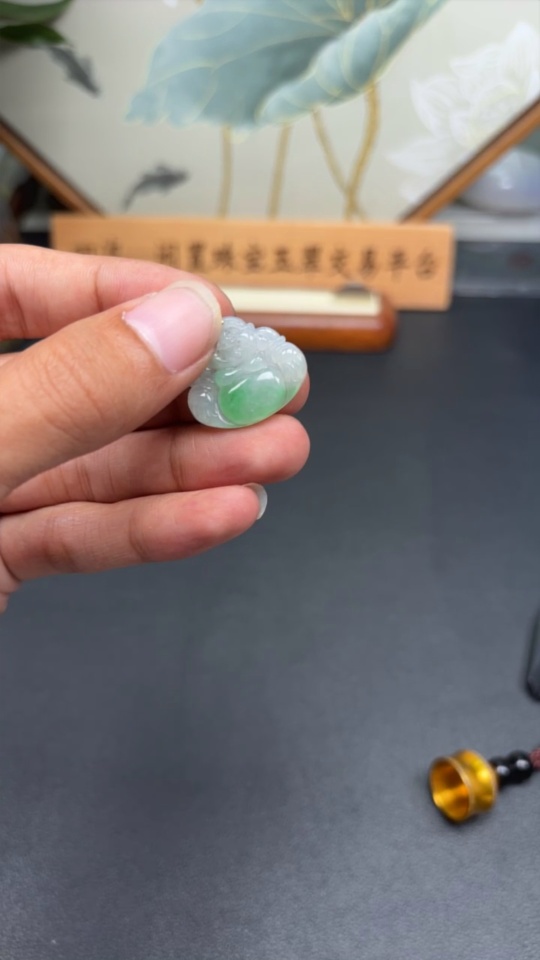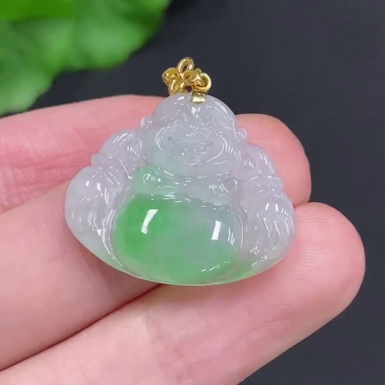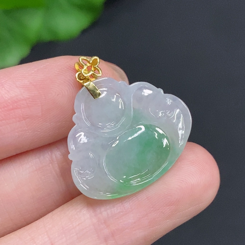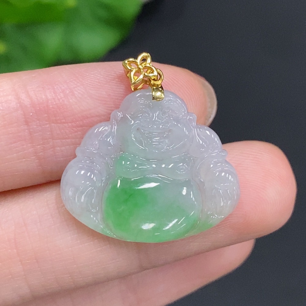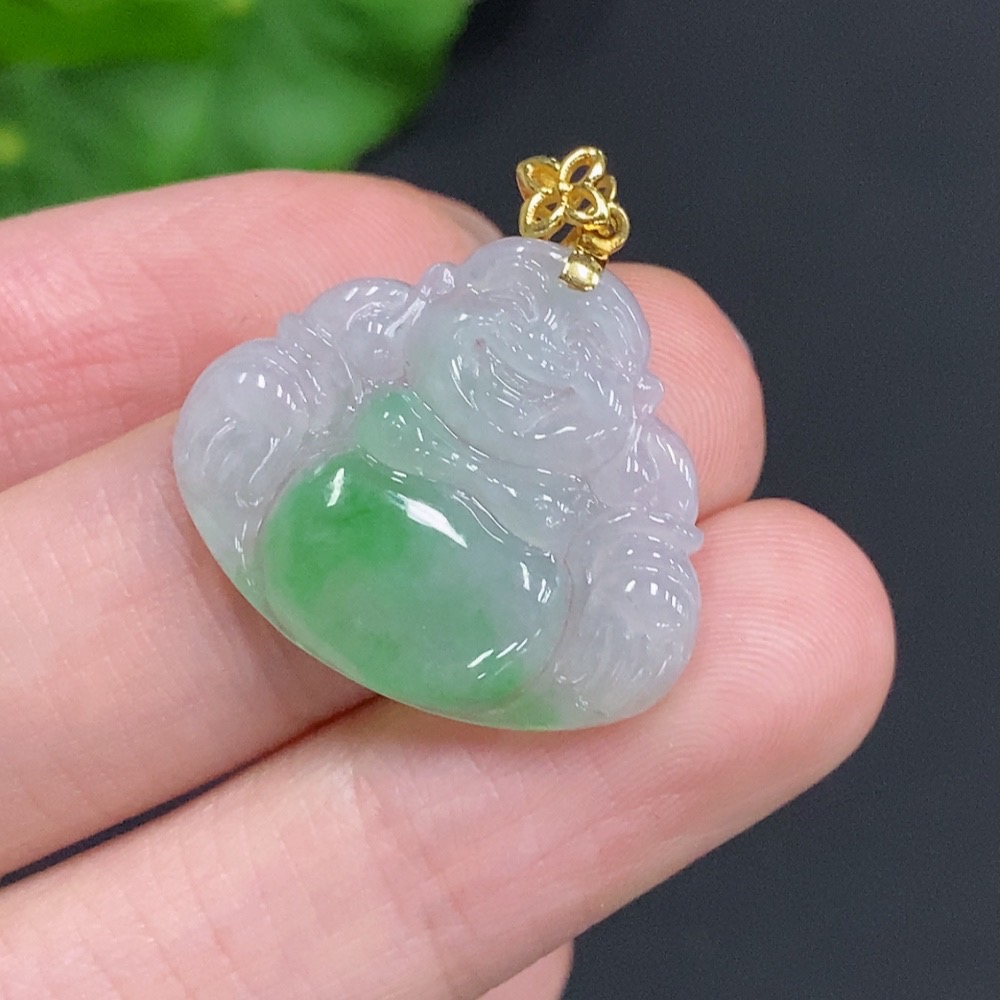 Jadeite Buddha Pendant with 18K Gold Clasp, Total Weight Approximately 2.6g