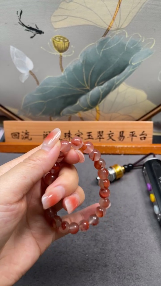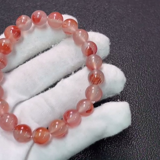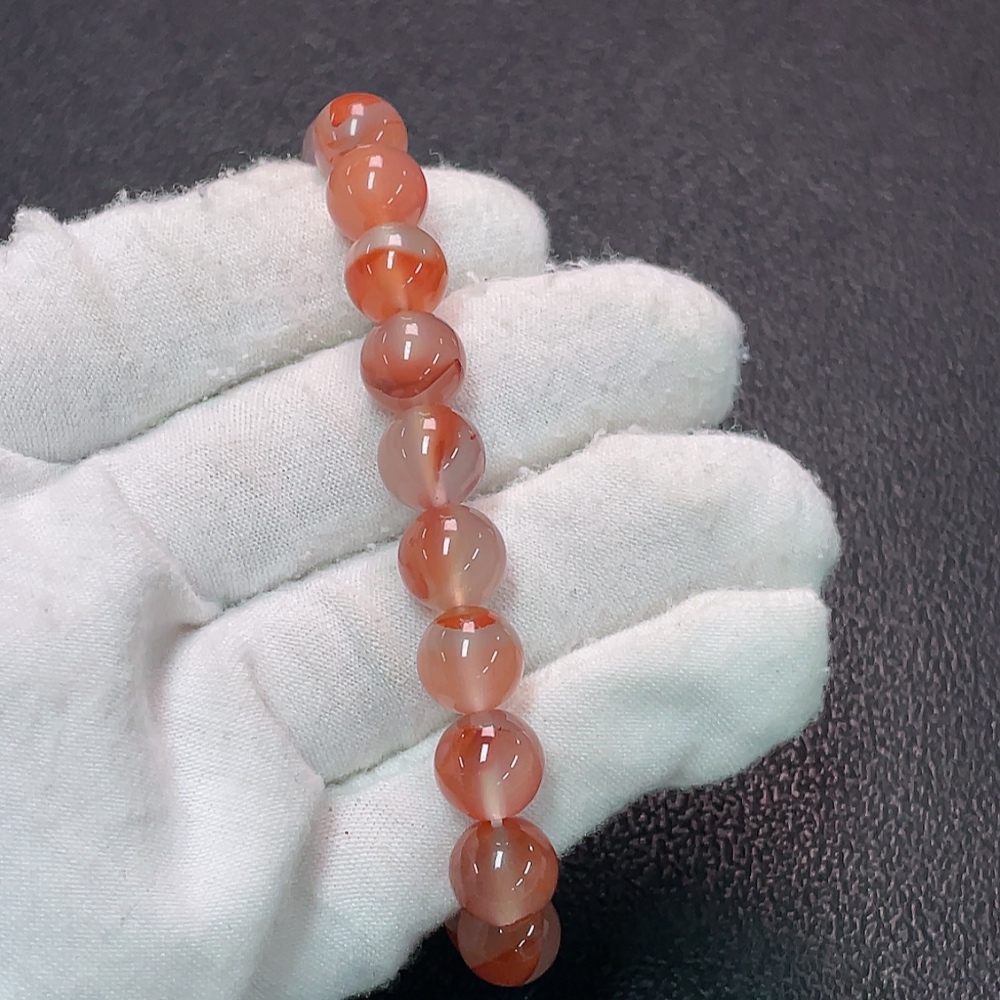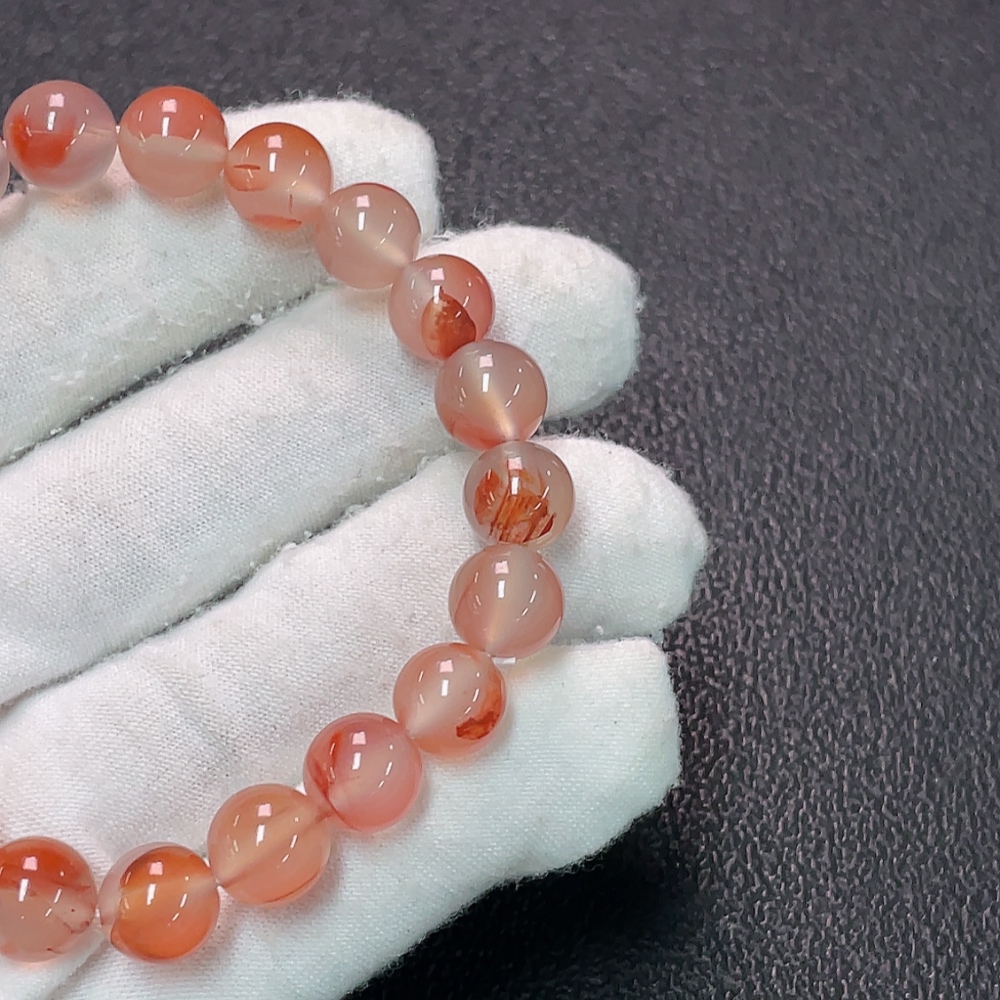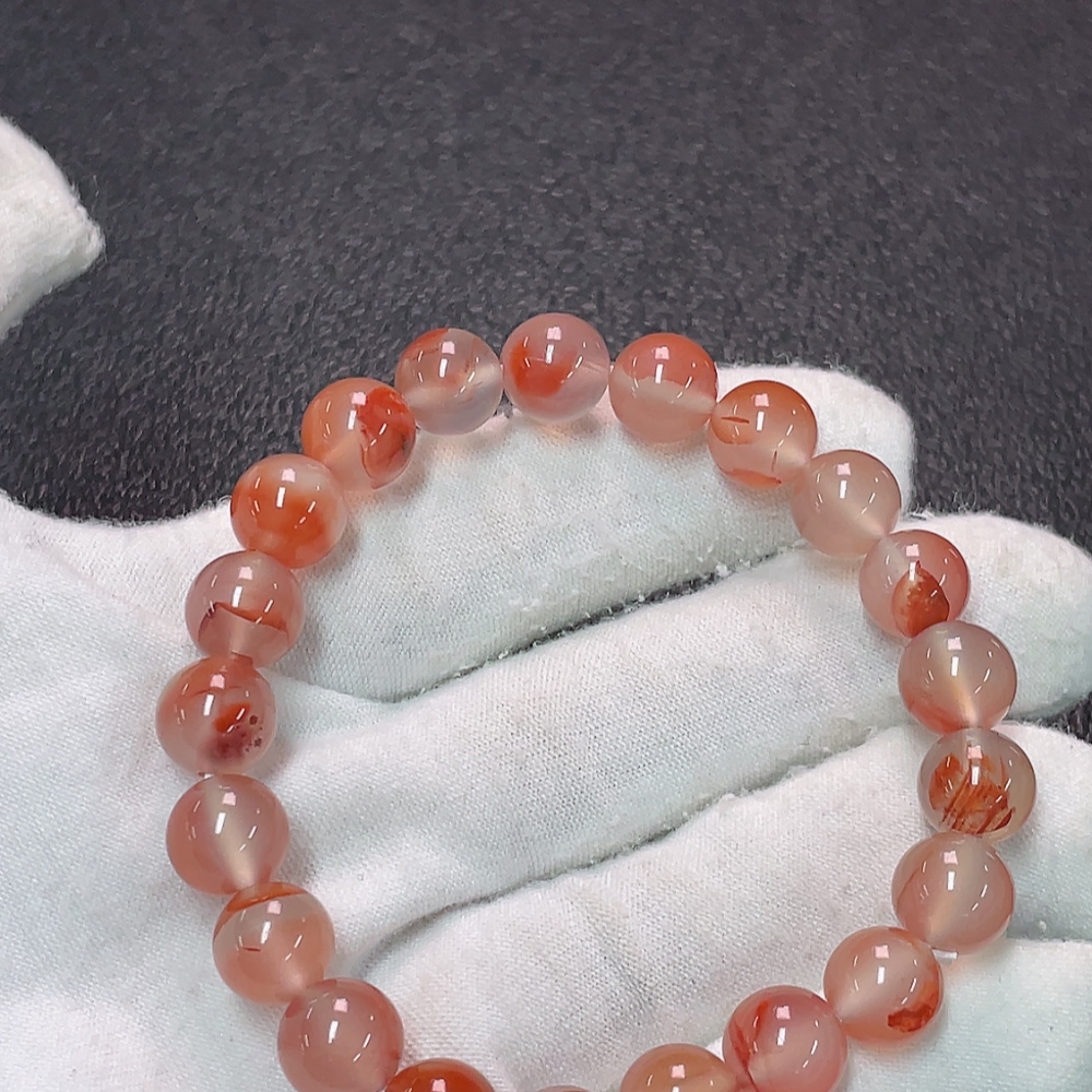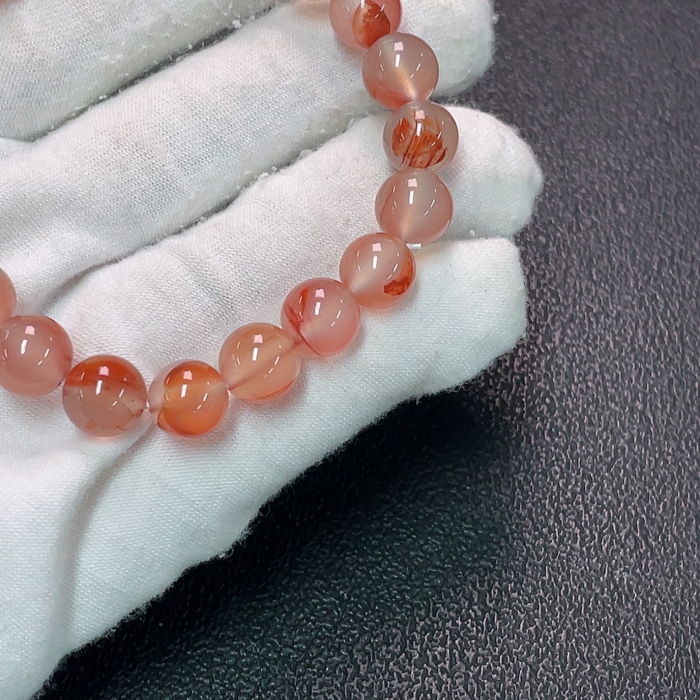 Red Agate Bracelet with Visible Organic Matter, Total Weight Approx. 22.68g, Size About 8.8mm