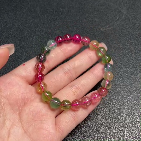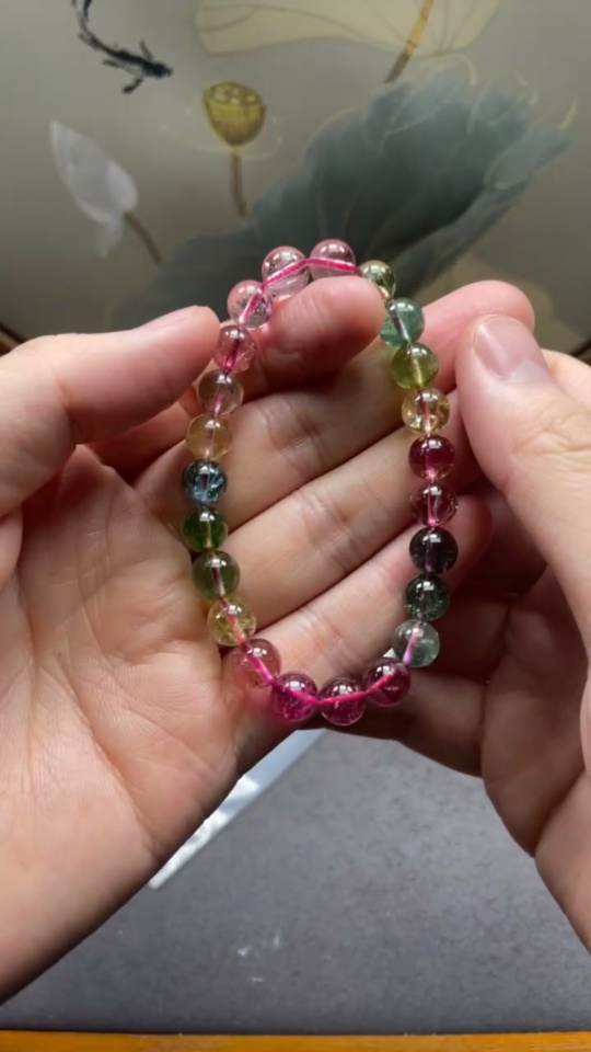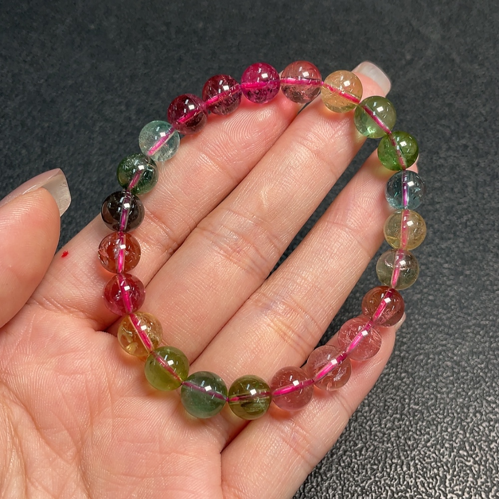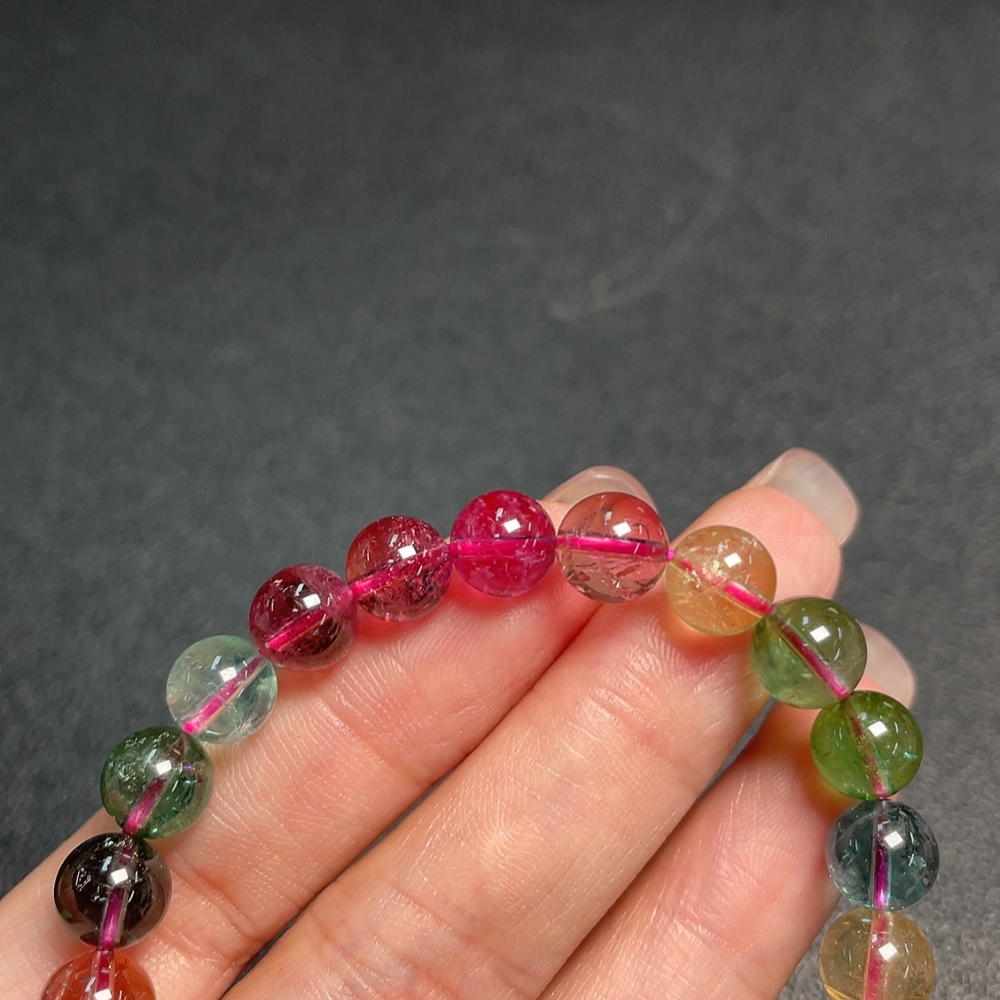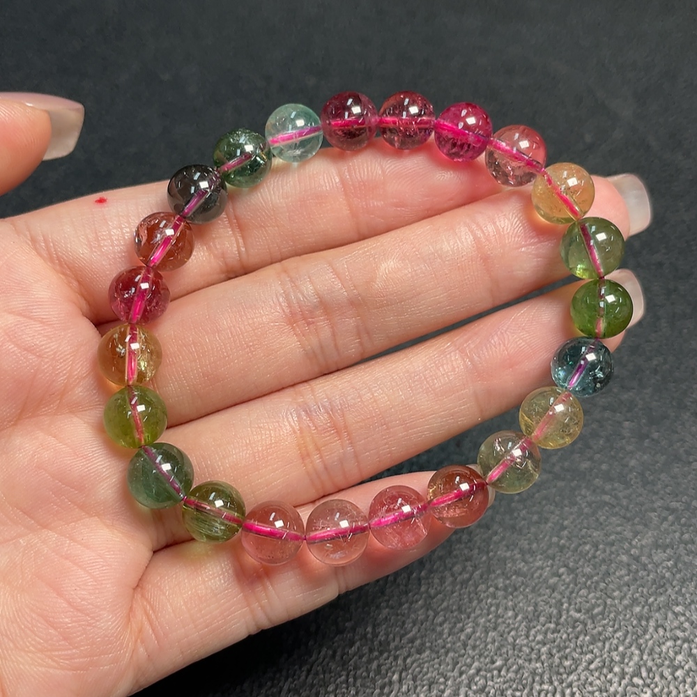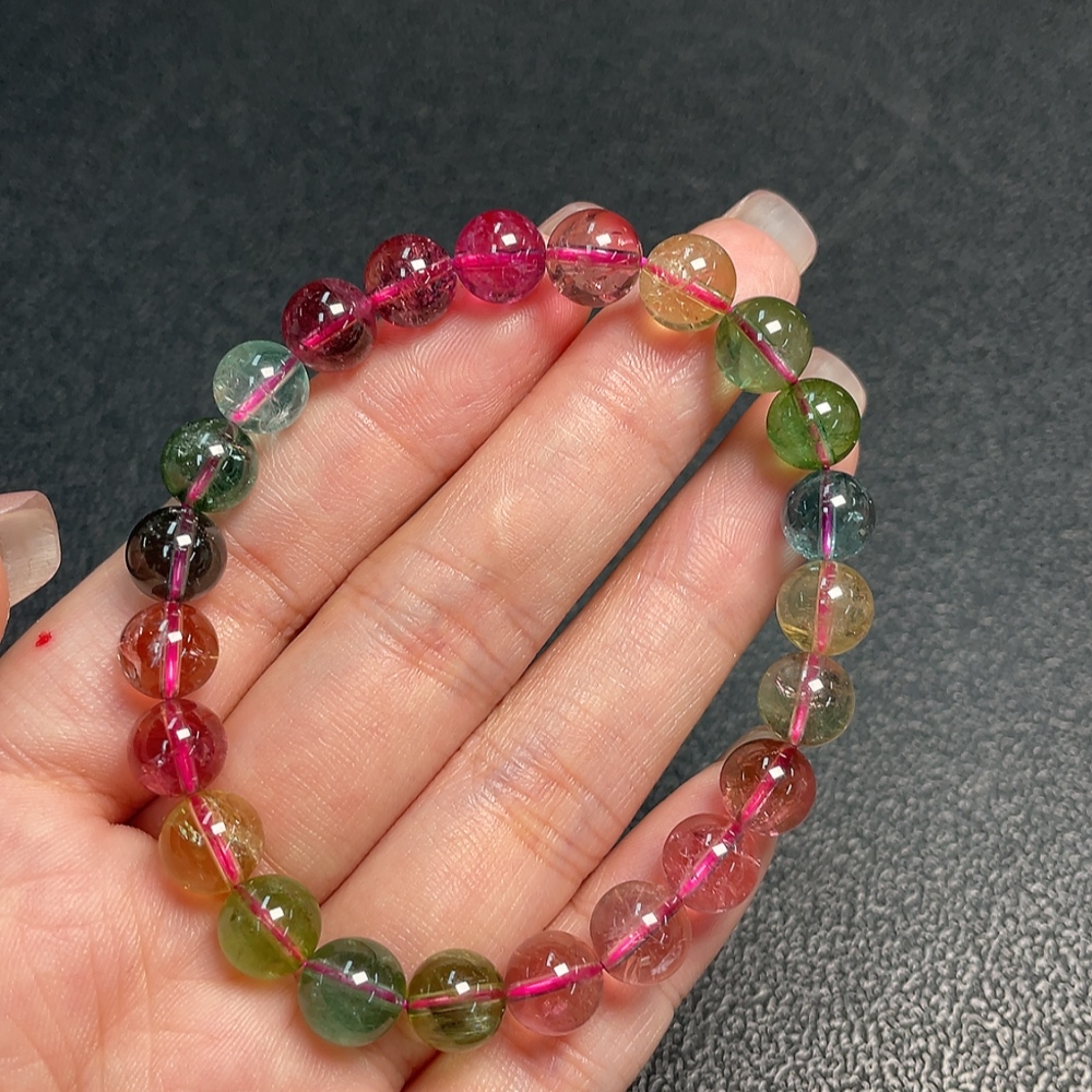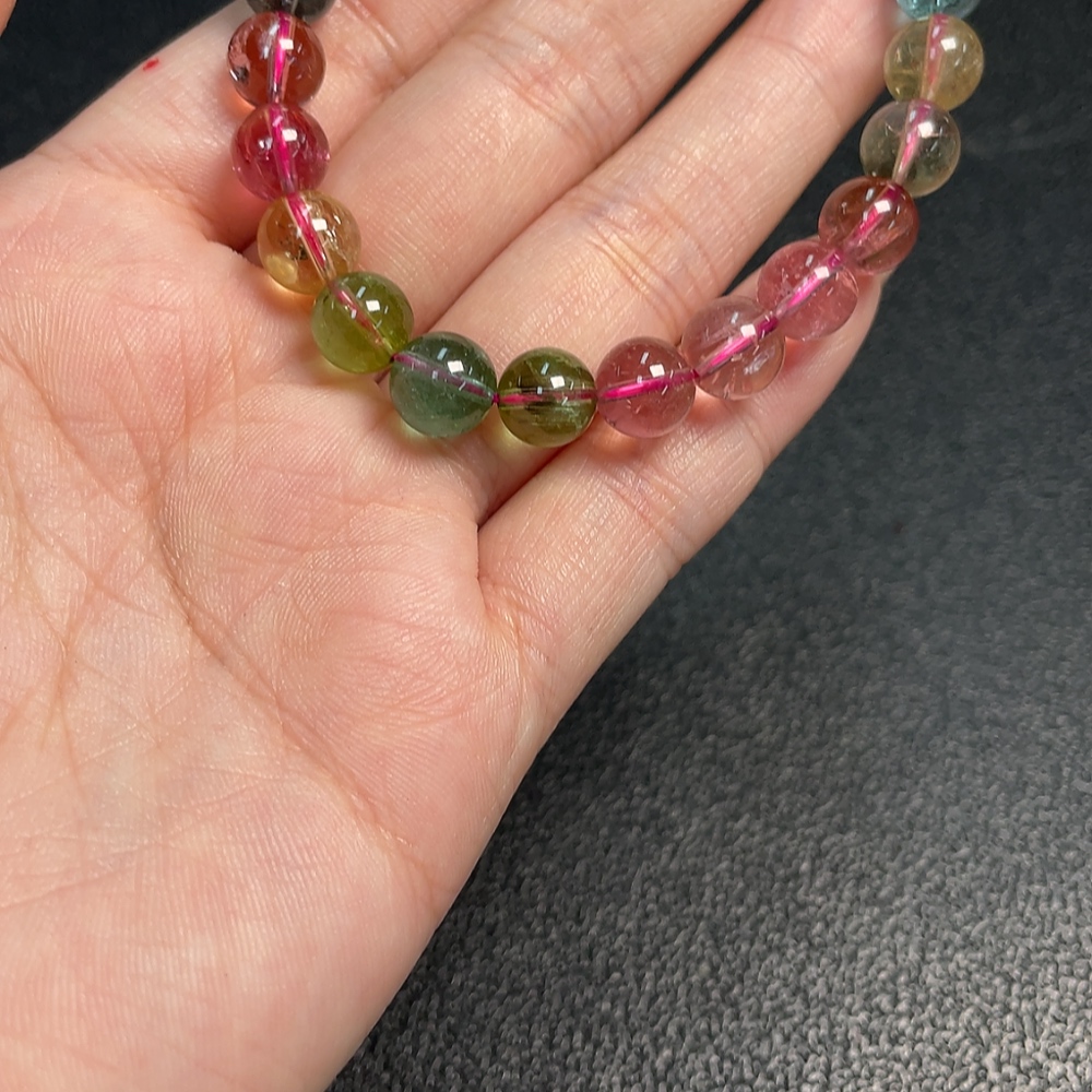 Tourmaline bracelet with visible organic matter, total weight approx. 19.48g, size approx. 8.3mm