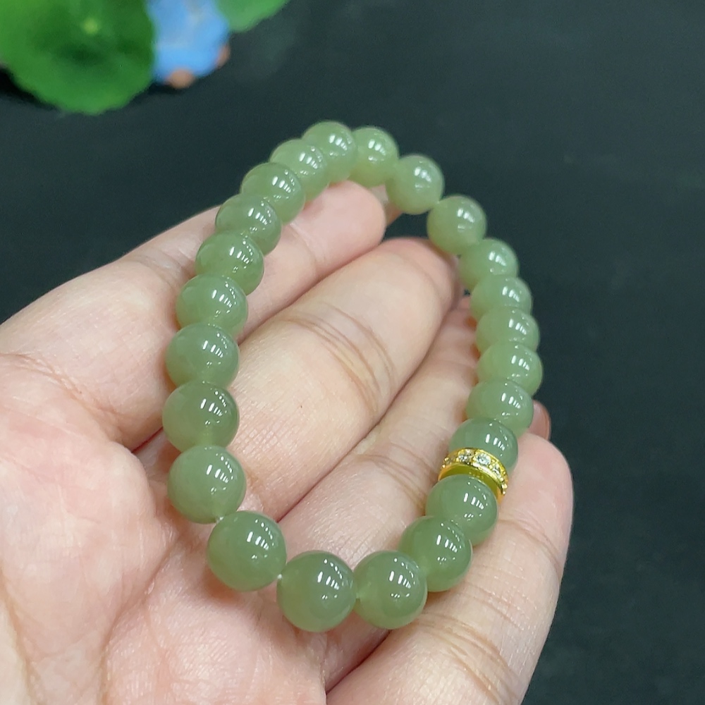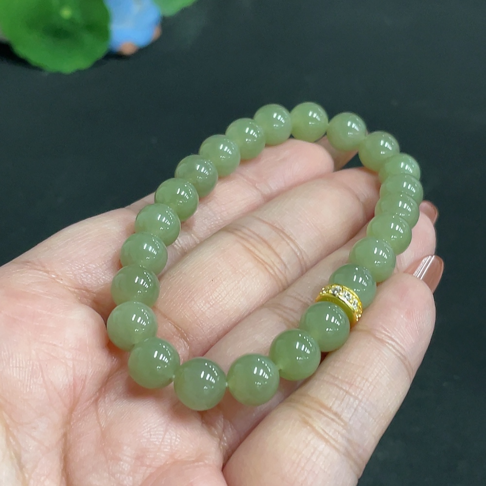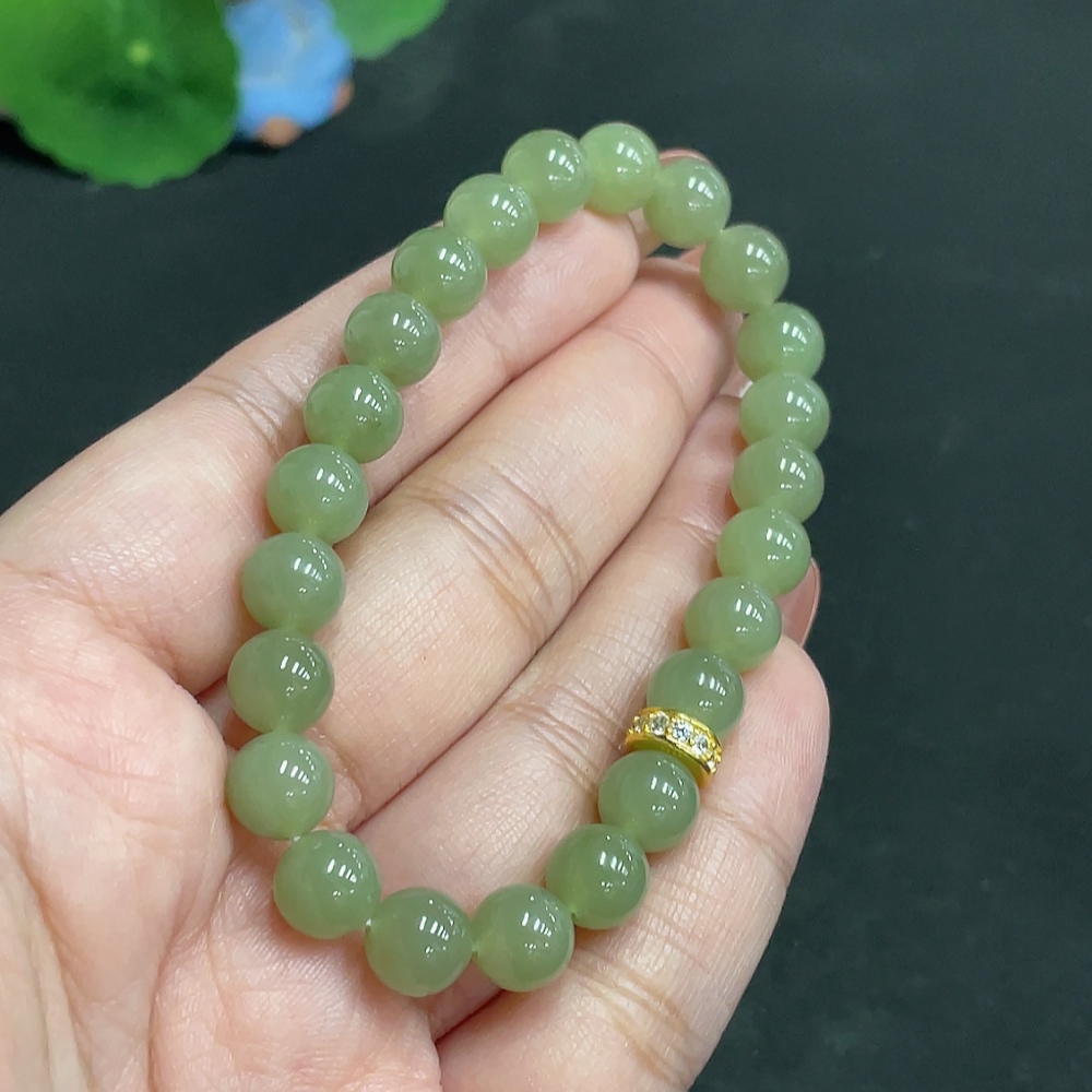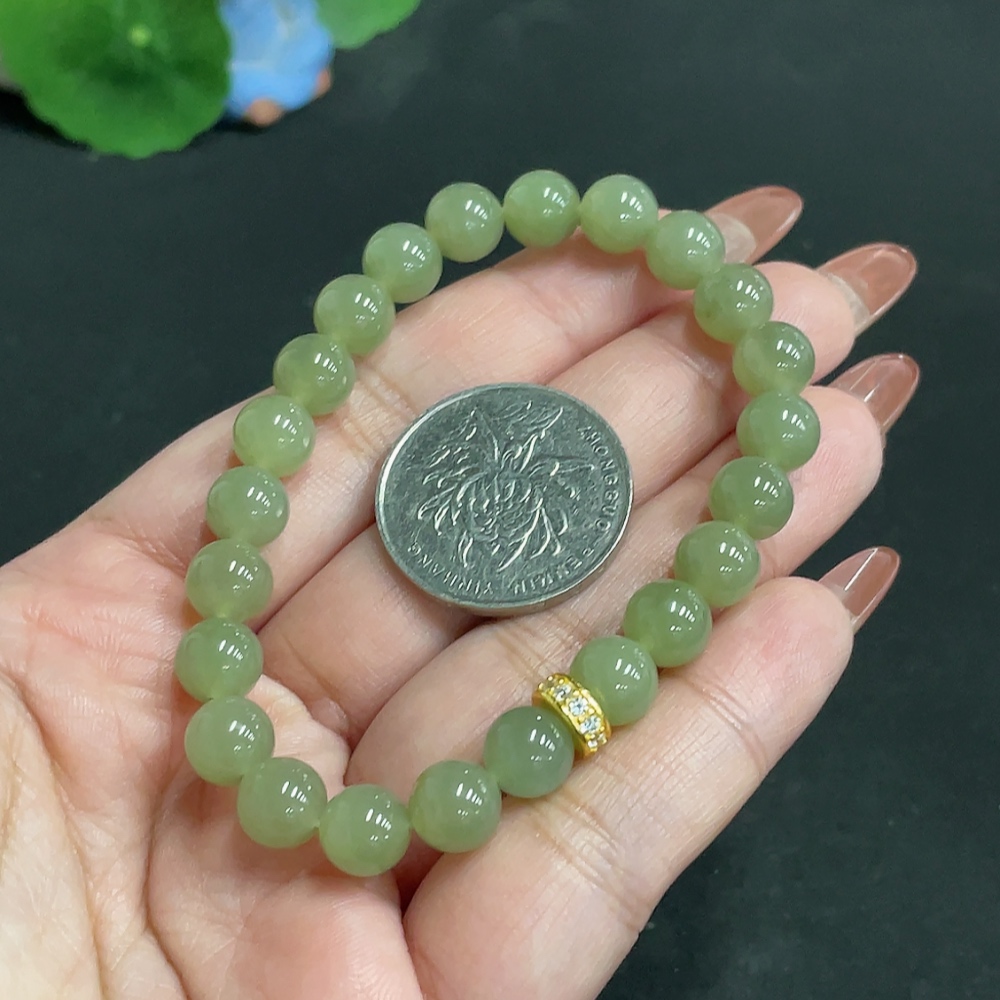 Hetian Jade Bracelet, Approx. 7.6 mm Beads, Total Weight Approx. 19.1g, Non-Gold
