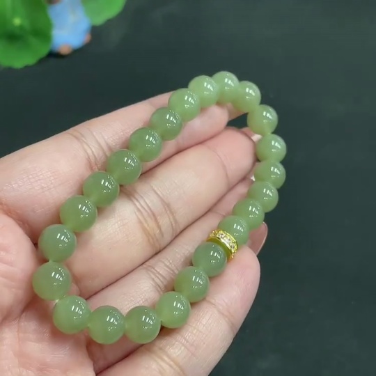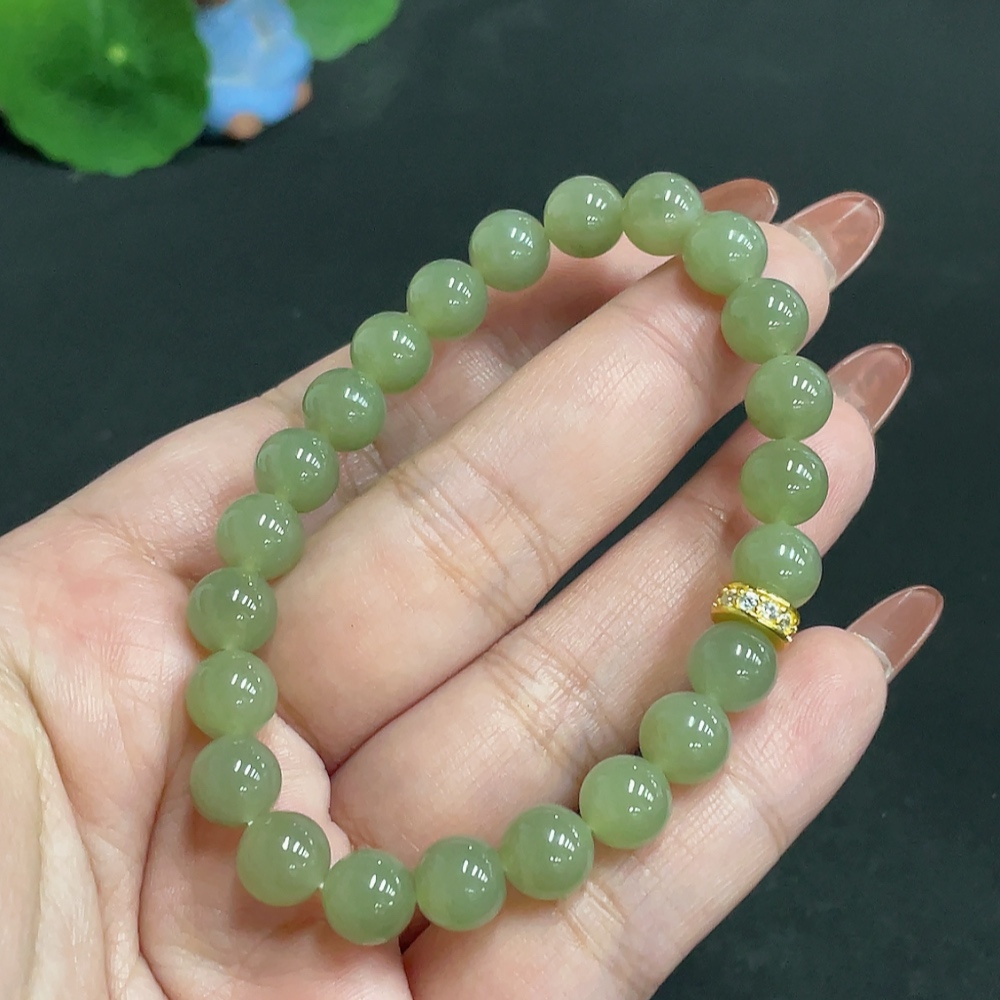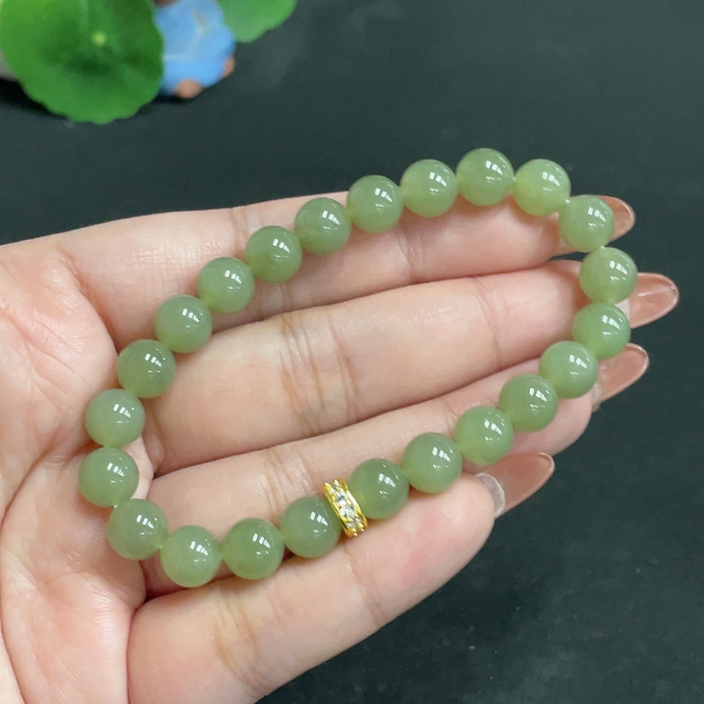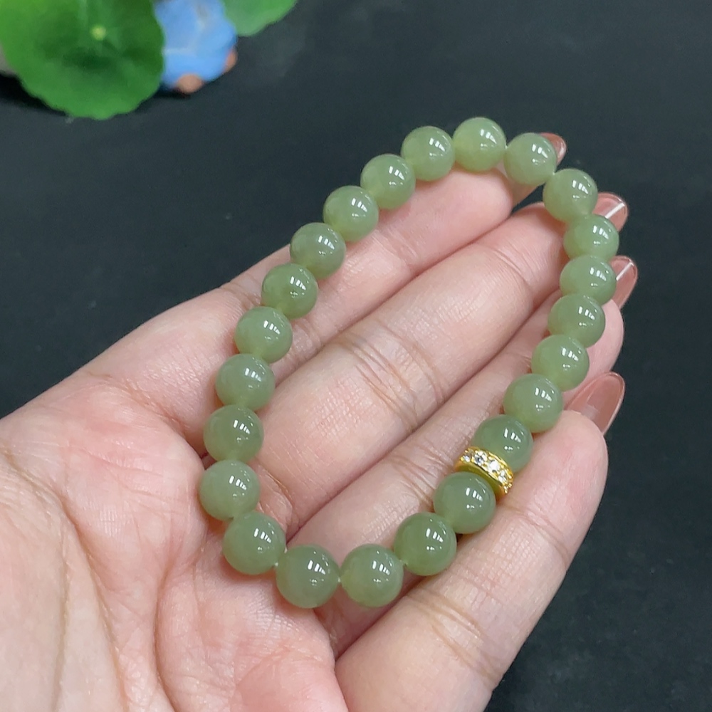 Hetian Jade Bracelet, Approx. 7.6 mm Beads, Total Weight Approx. 19.1g, Non-Gold
