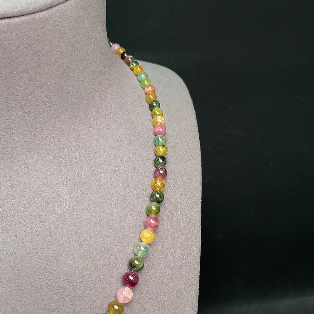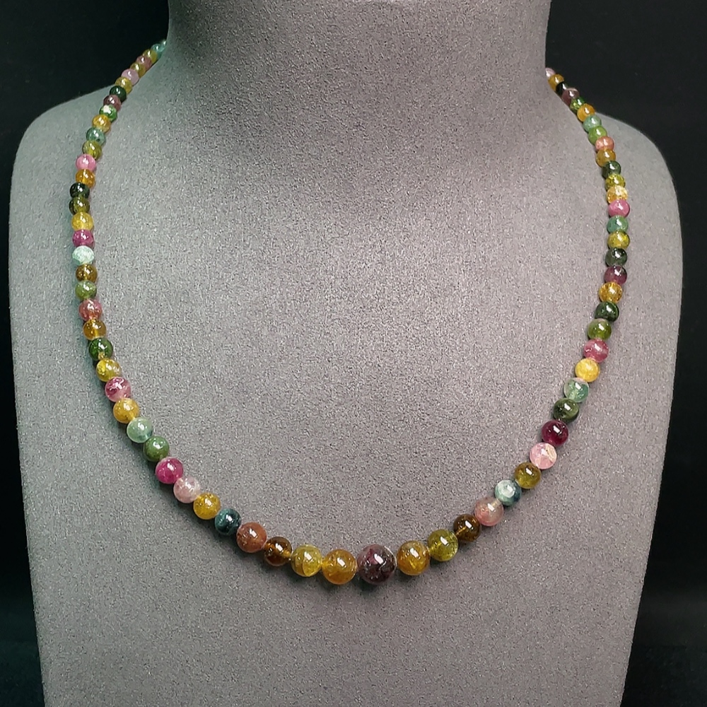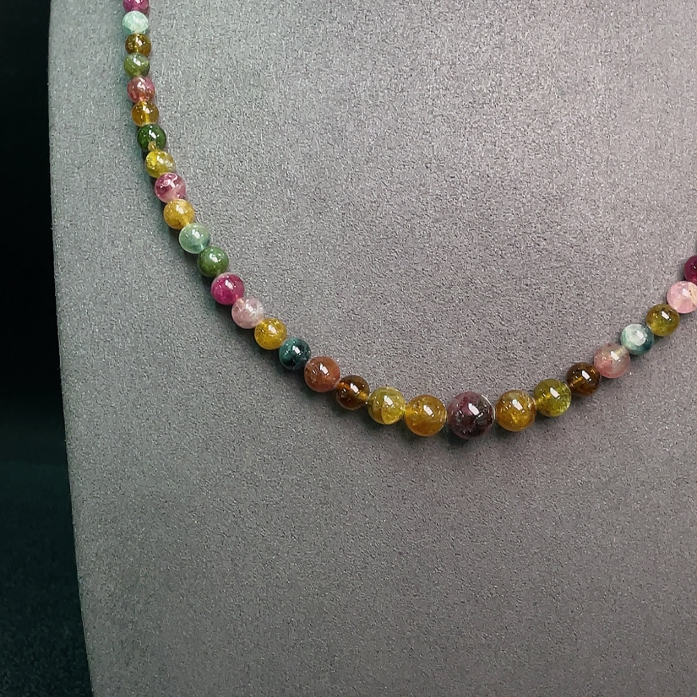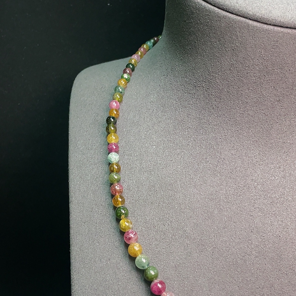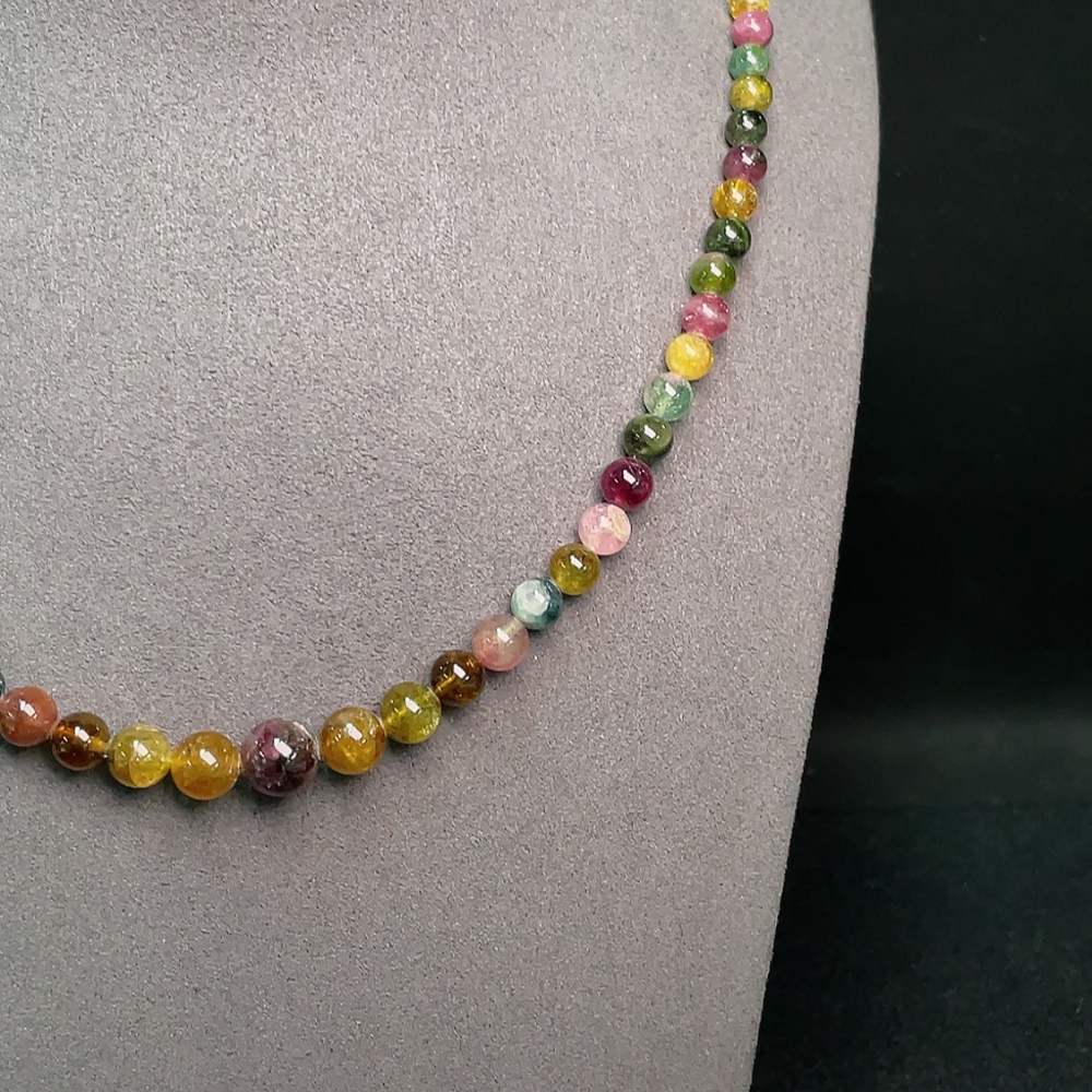 Tourmaline bead necklace, non-gold, containing other mineral components, visible organic matter, total weight approx. 21.38g, bead size 3.4-8.6mm