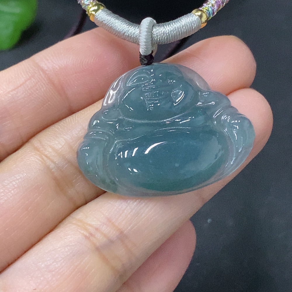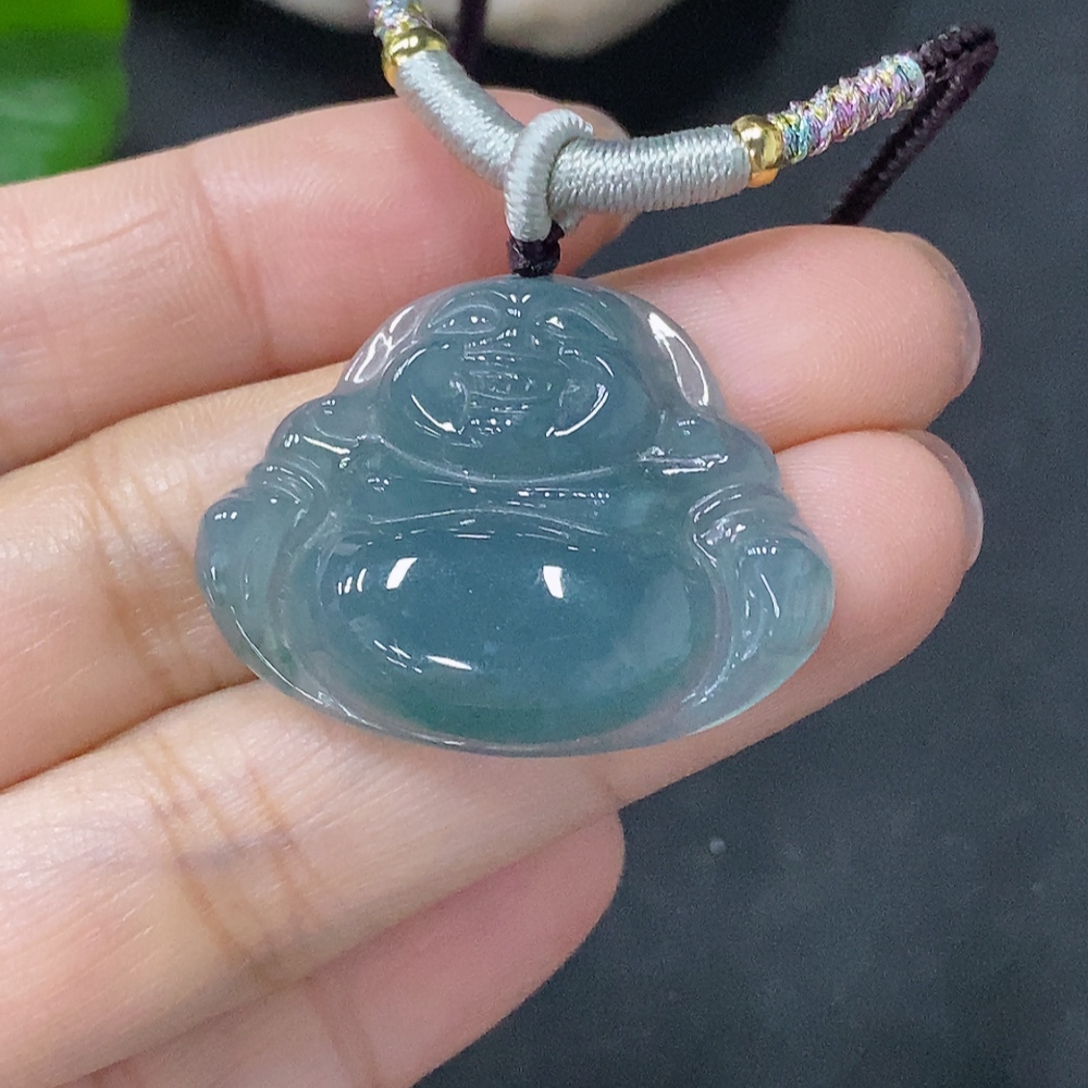 Jadeite Pendant Buddha, Total Weight Approximately 8.59g Including Rope