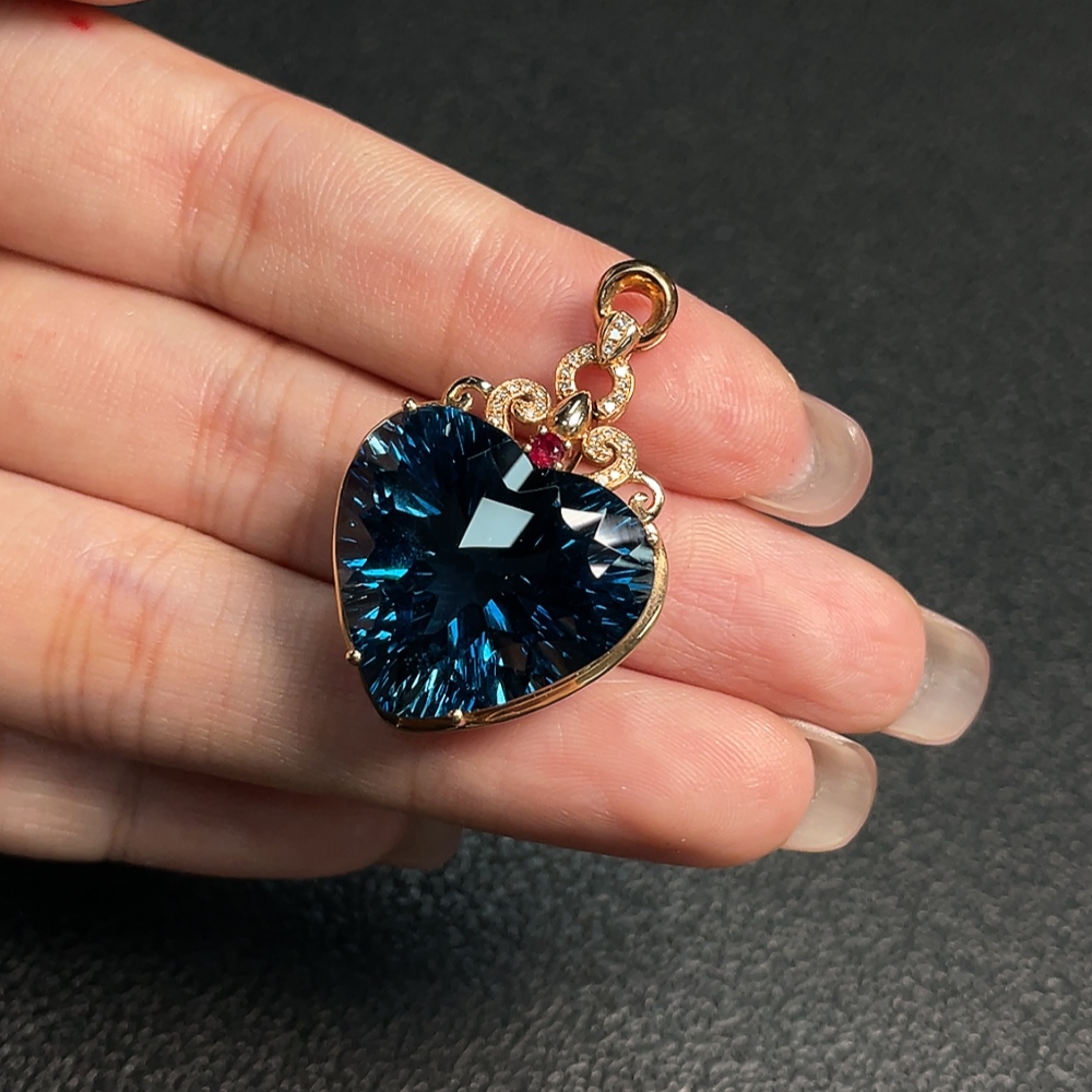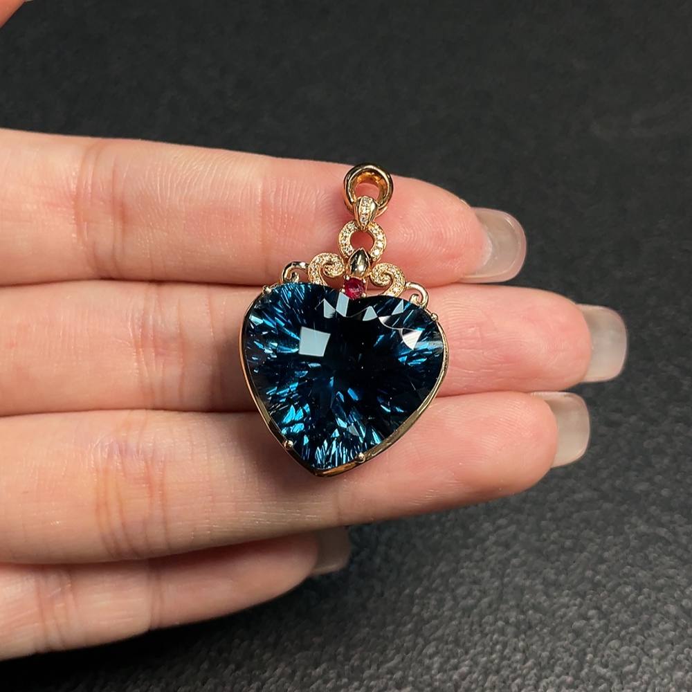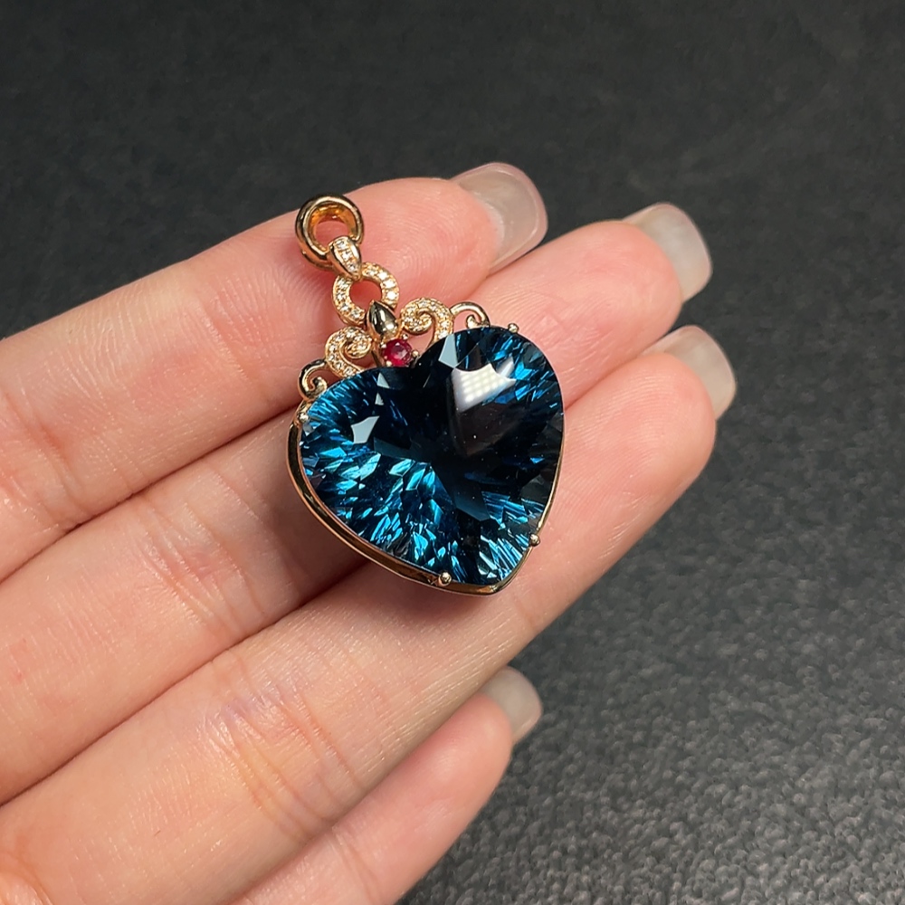 Topaz pendant with colorless diamond accents, 18K, total weight approximately 8.77g