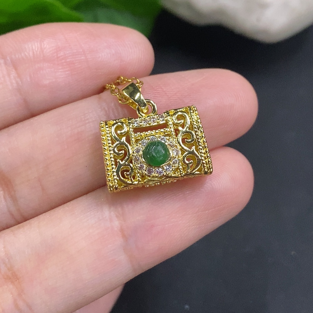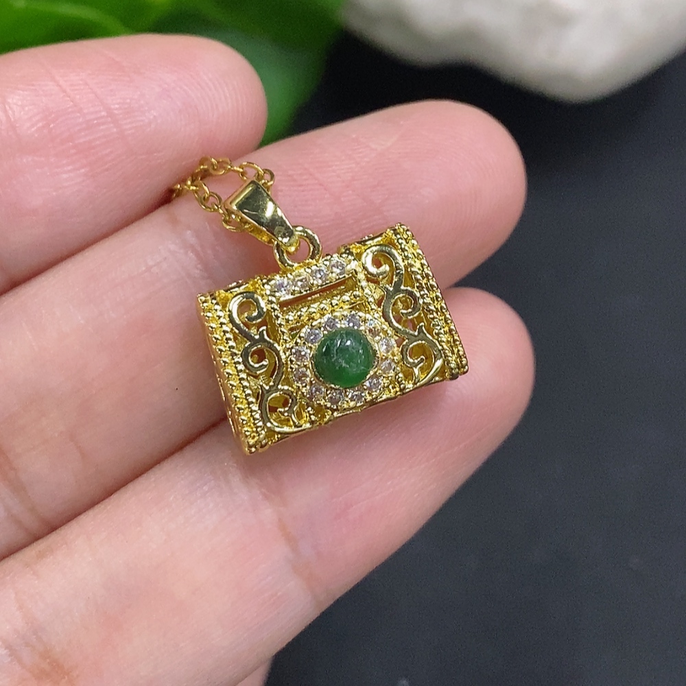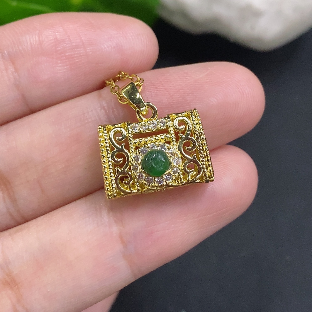 Jadeite Cabochon Pendant Non-Gold Setting Total Weight Approx. 4.4g