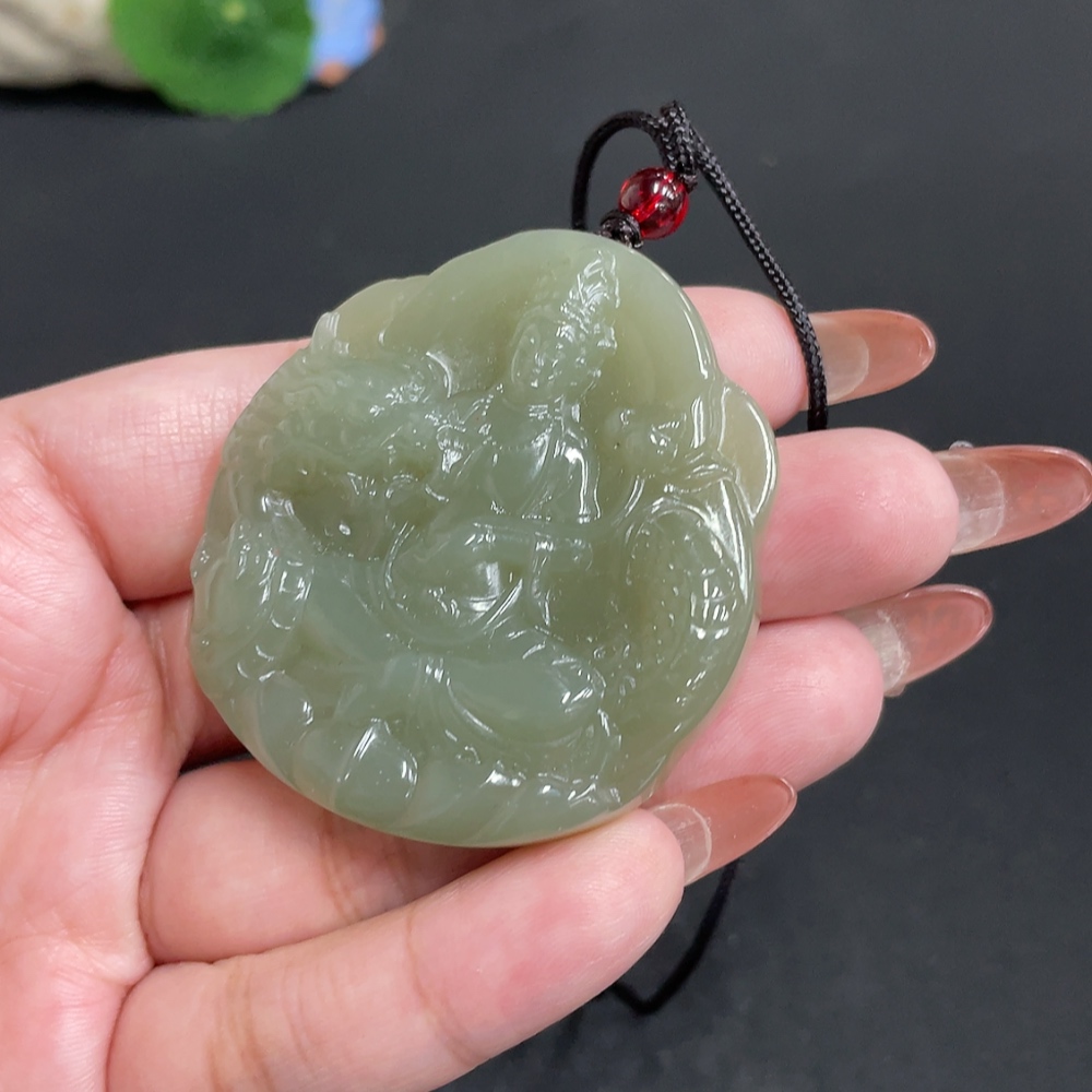 Hetian Jade Pendant Guanyin Total Weight Approx. [with rope] 50g