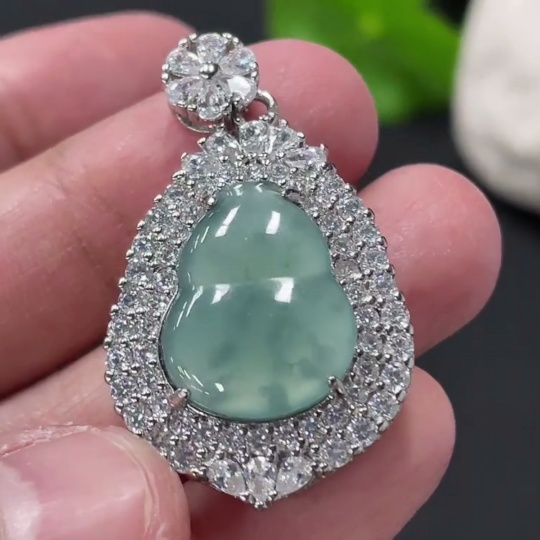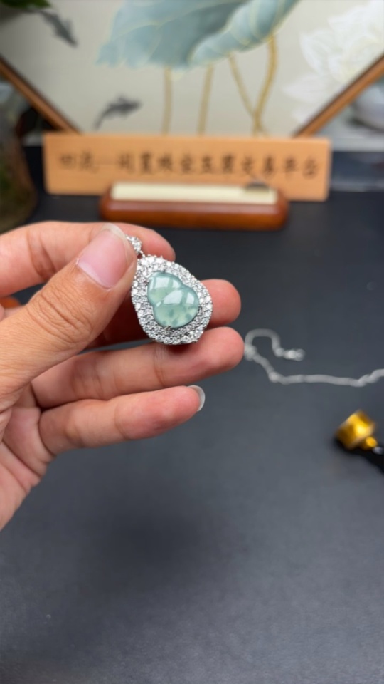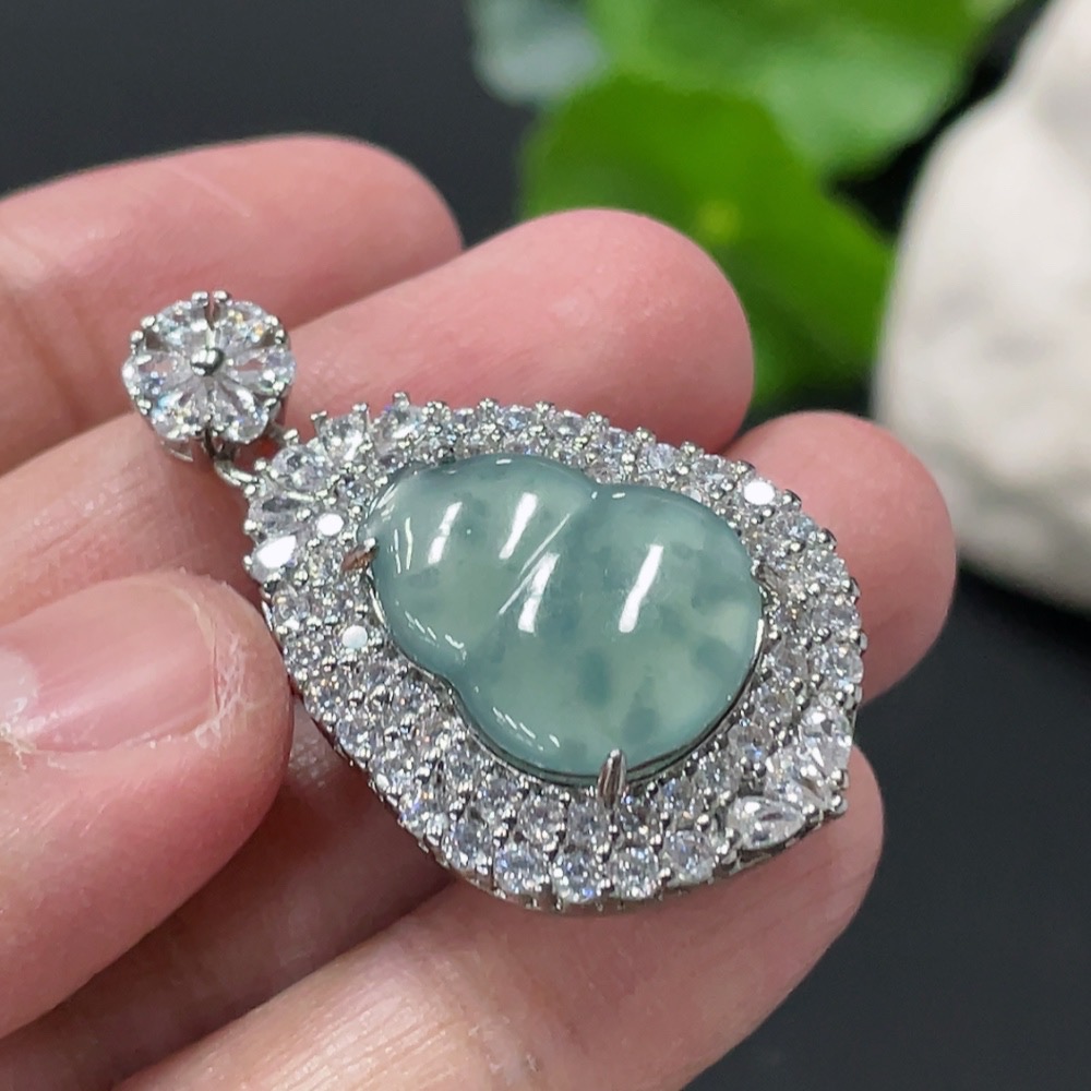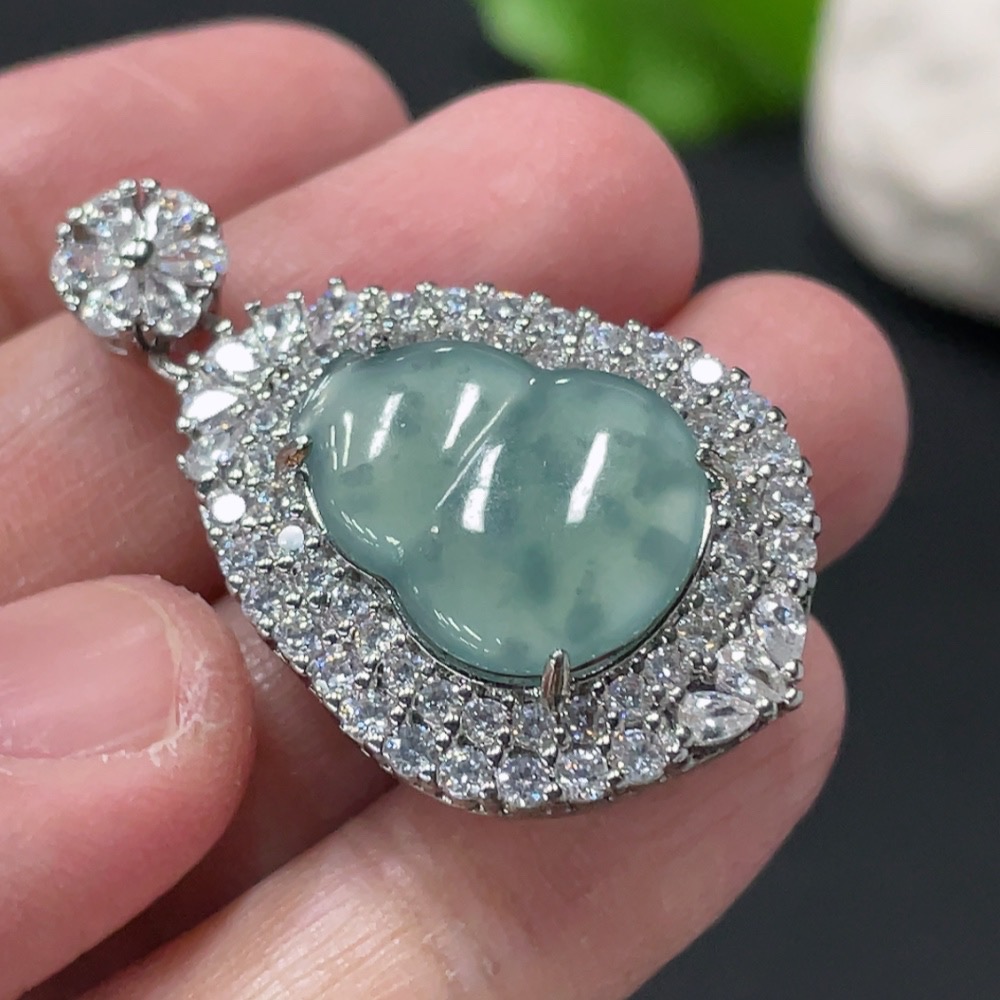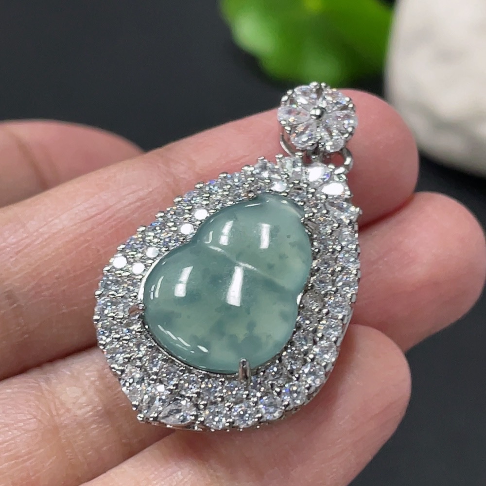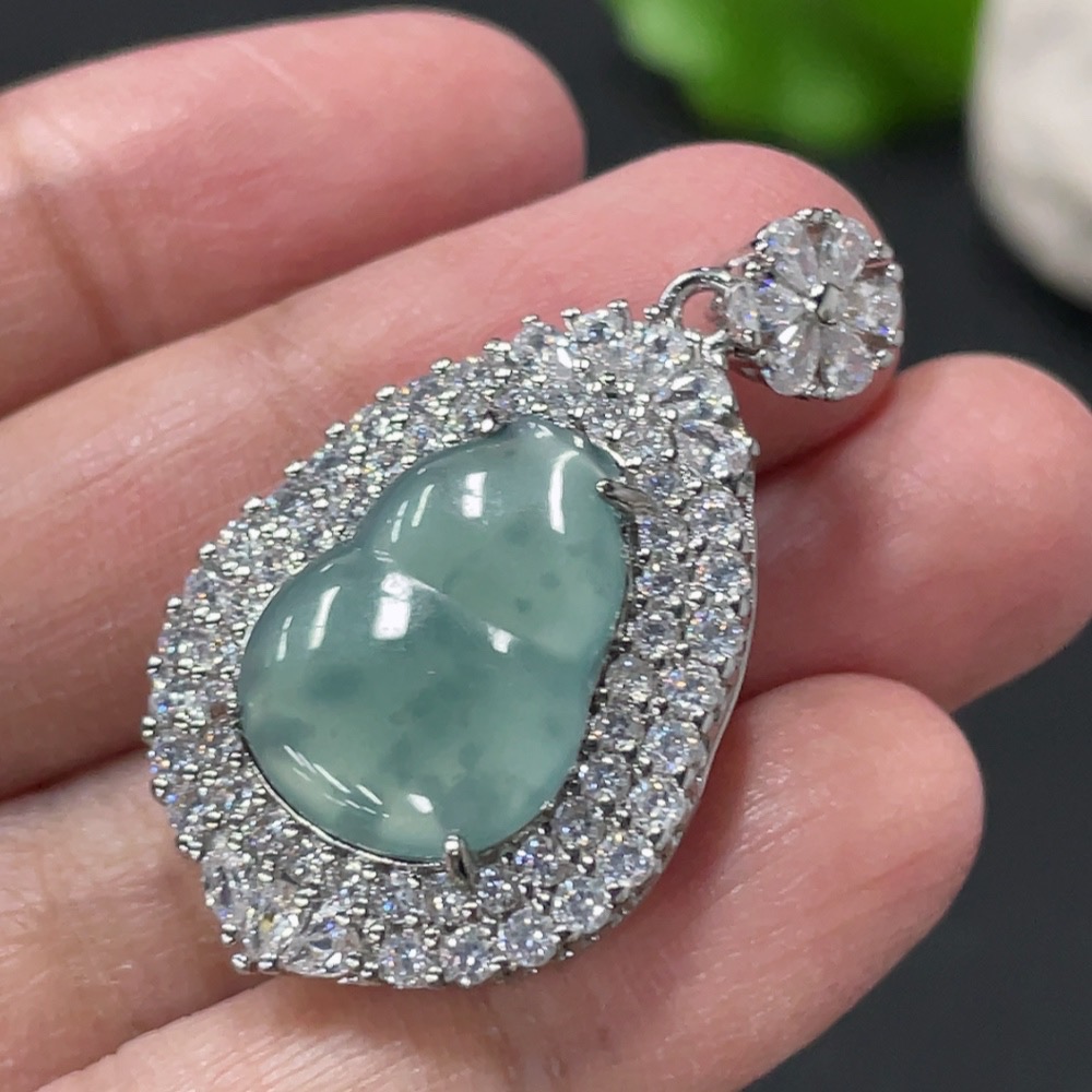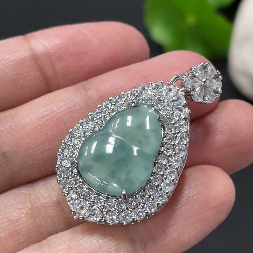 Jadeite Inlaid Gourd Pendant Non-Gold Total Weight Approx. 9.63g Including Chain