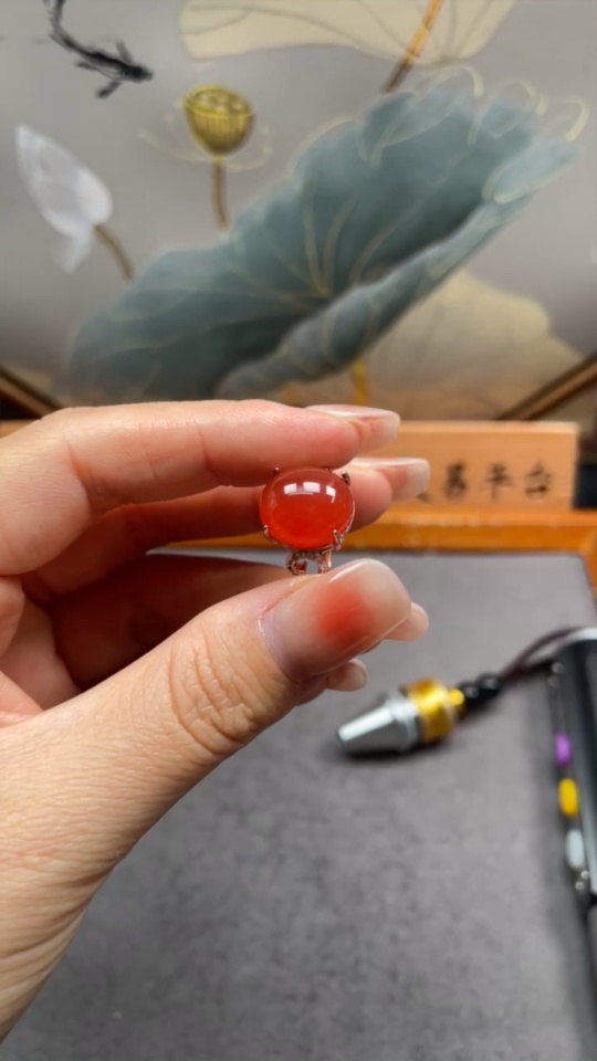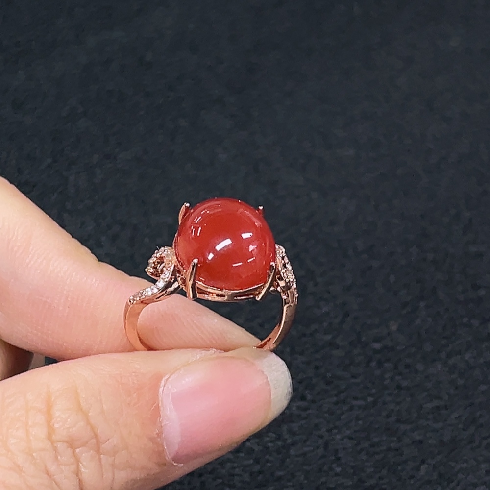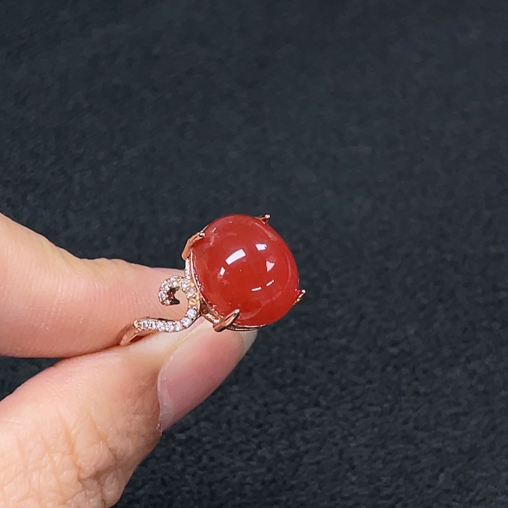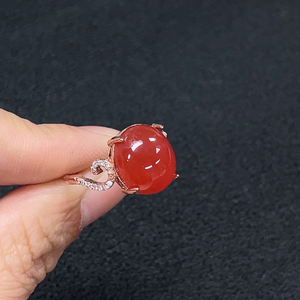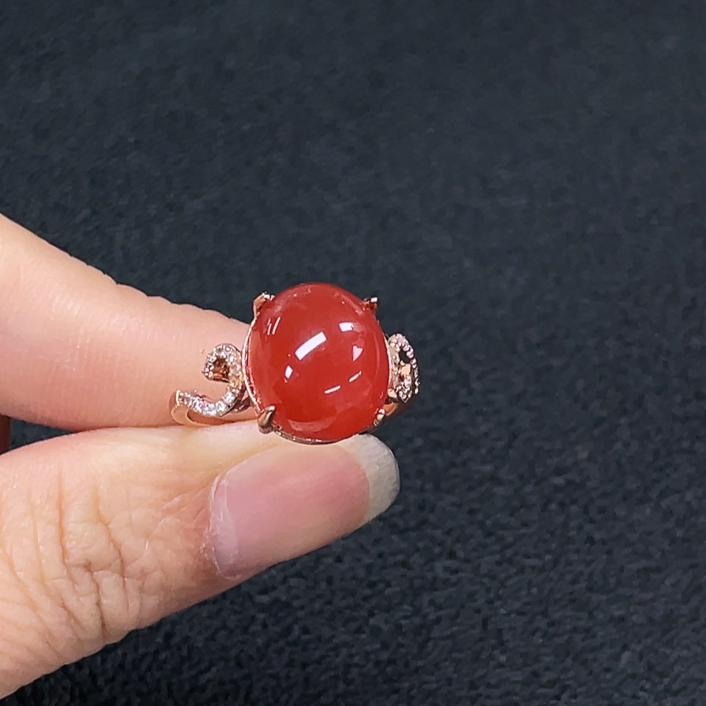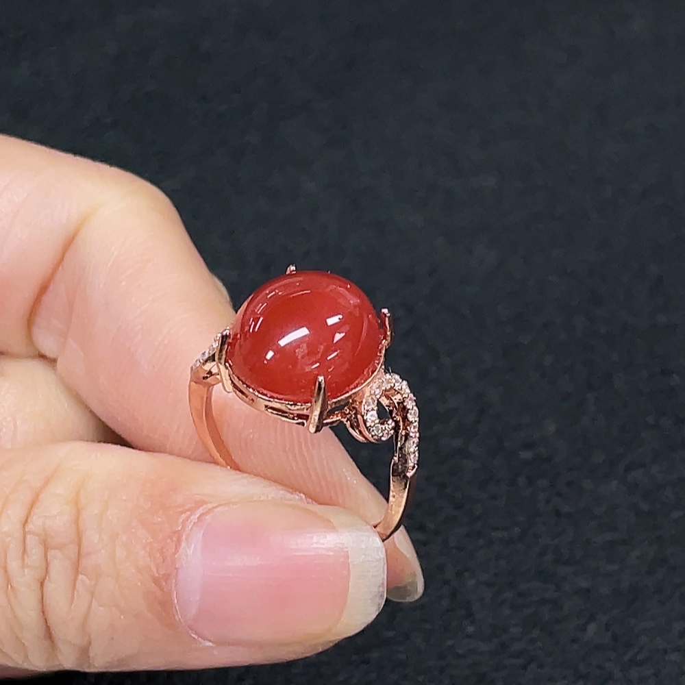 South Red Agate Ring, Non-Gold, Adjustable, Total Weight Approx. 3.73g