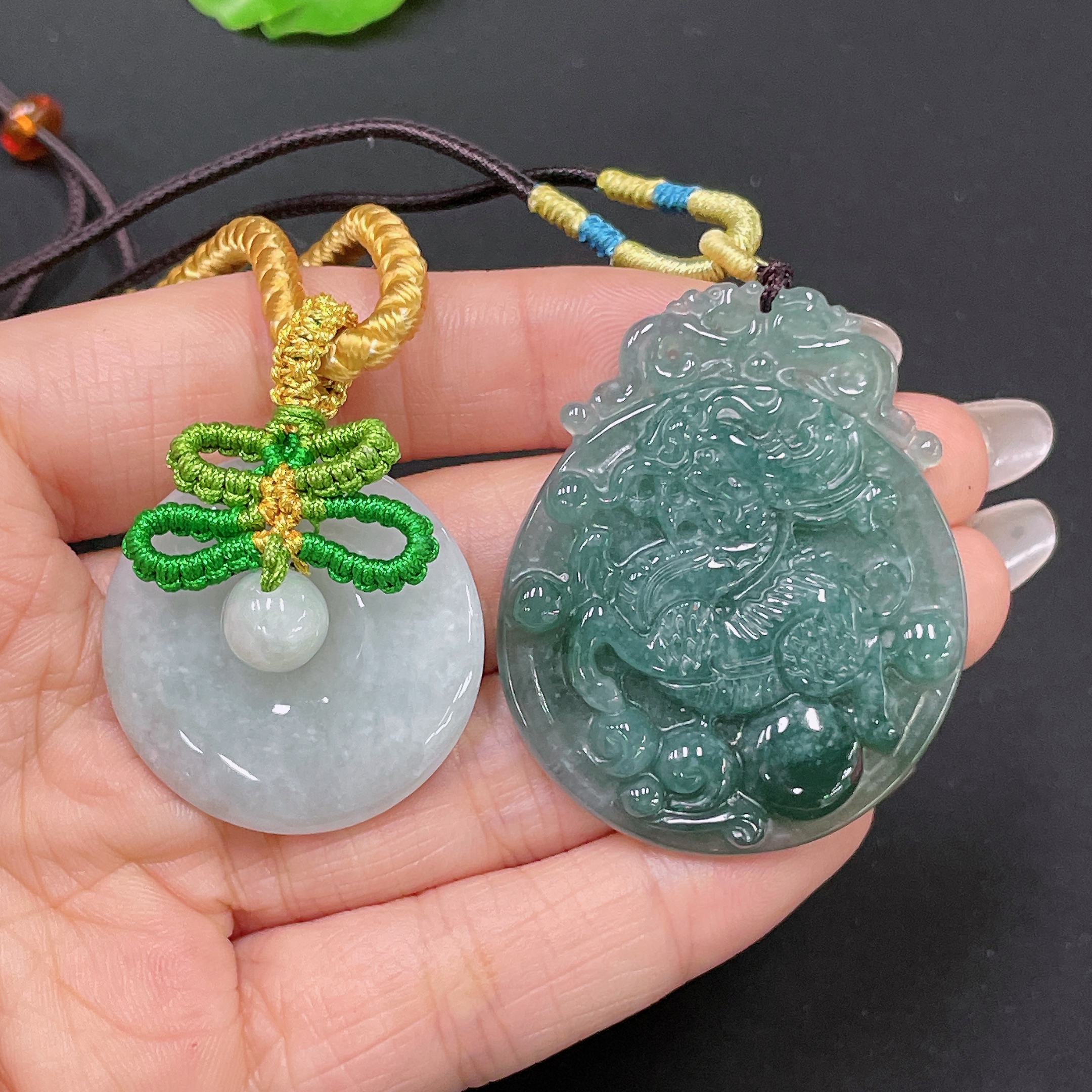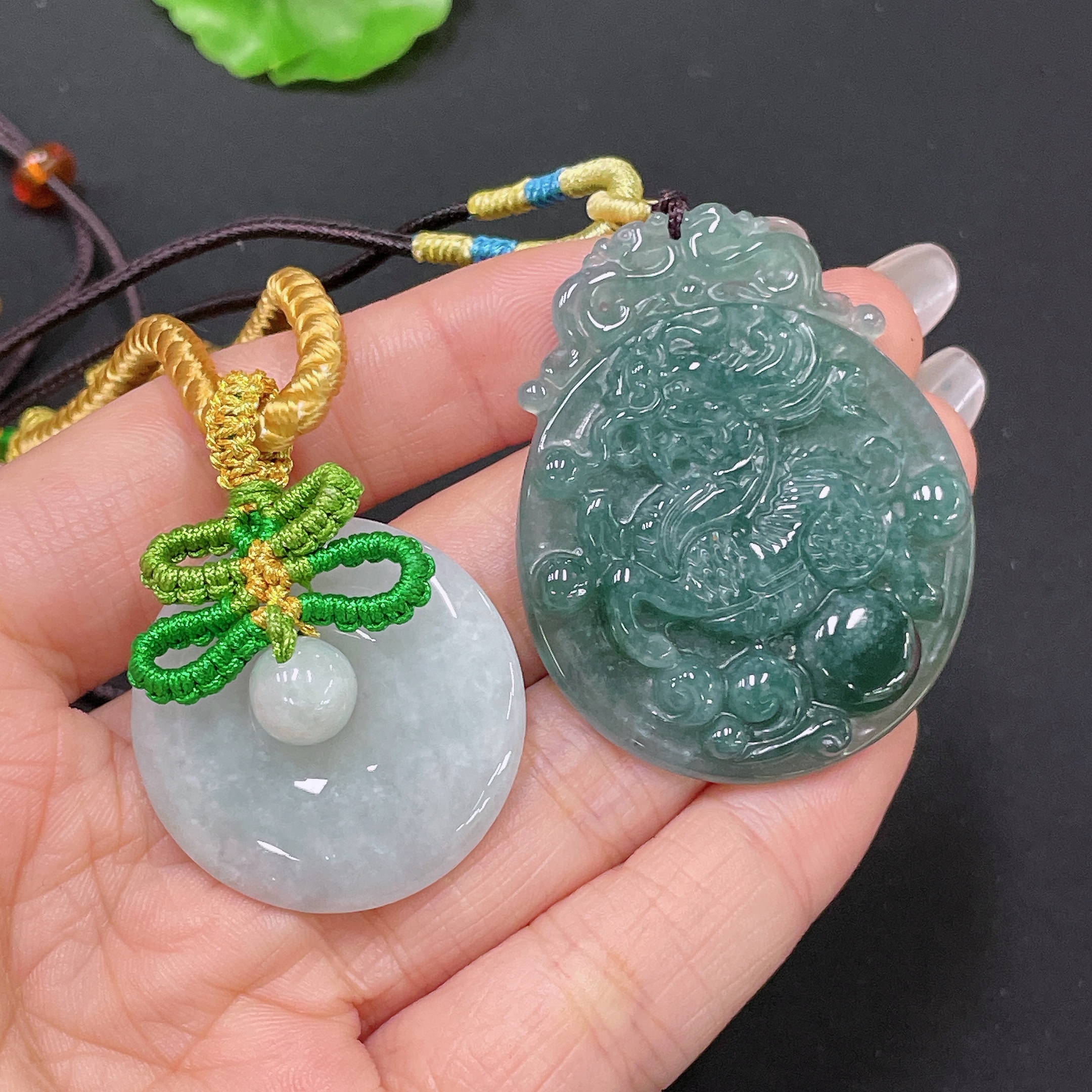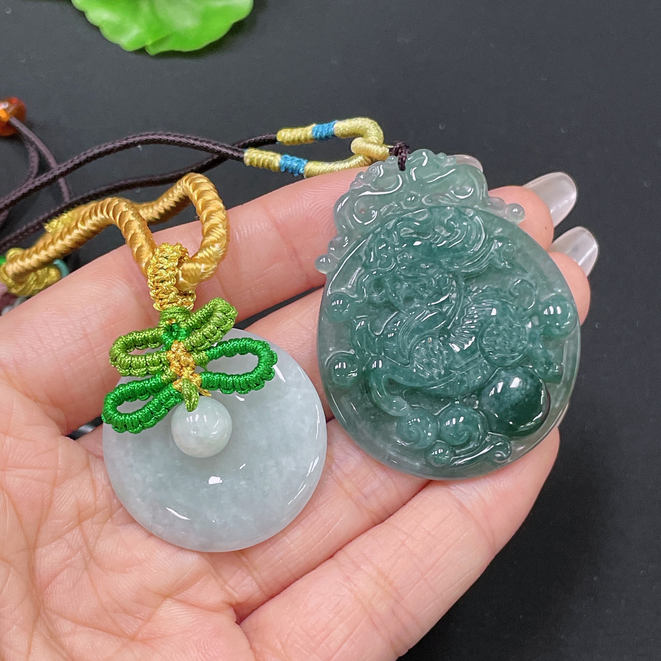 Jadeite Pendant Dragon Plaque + Peace Buckle Sell as a Lot Non-Gold