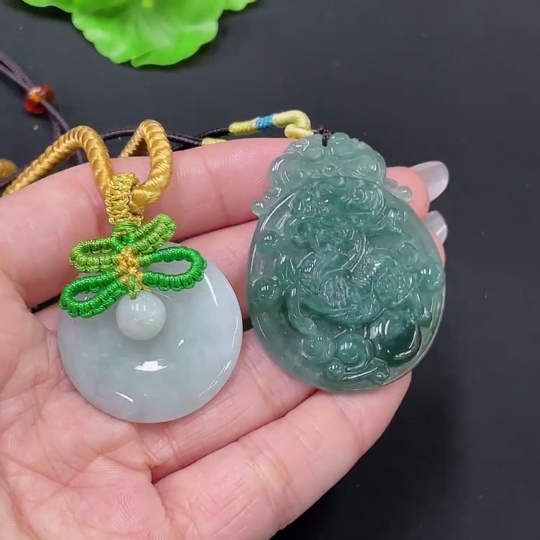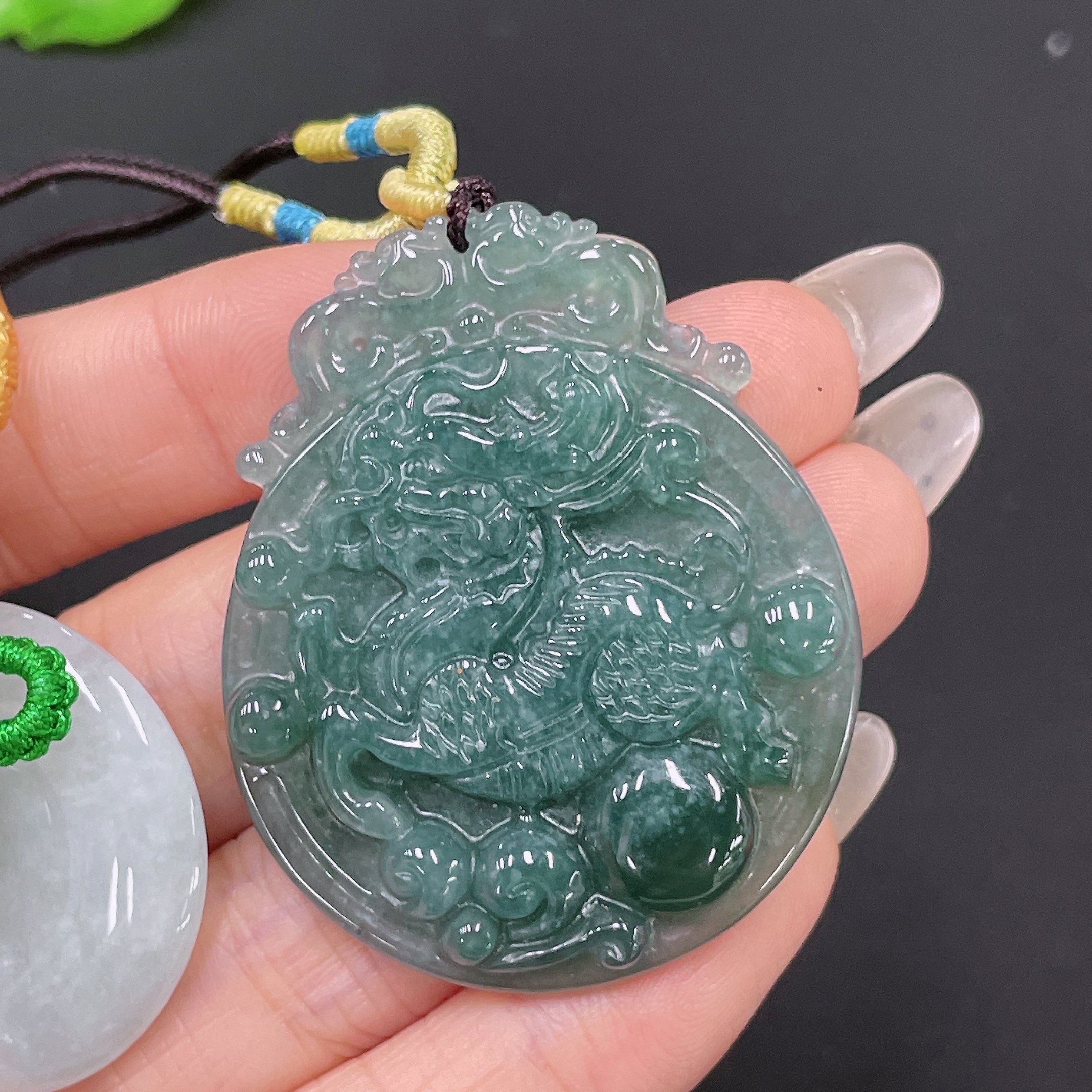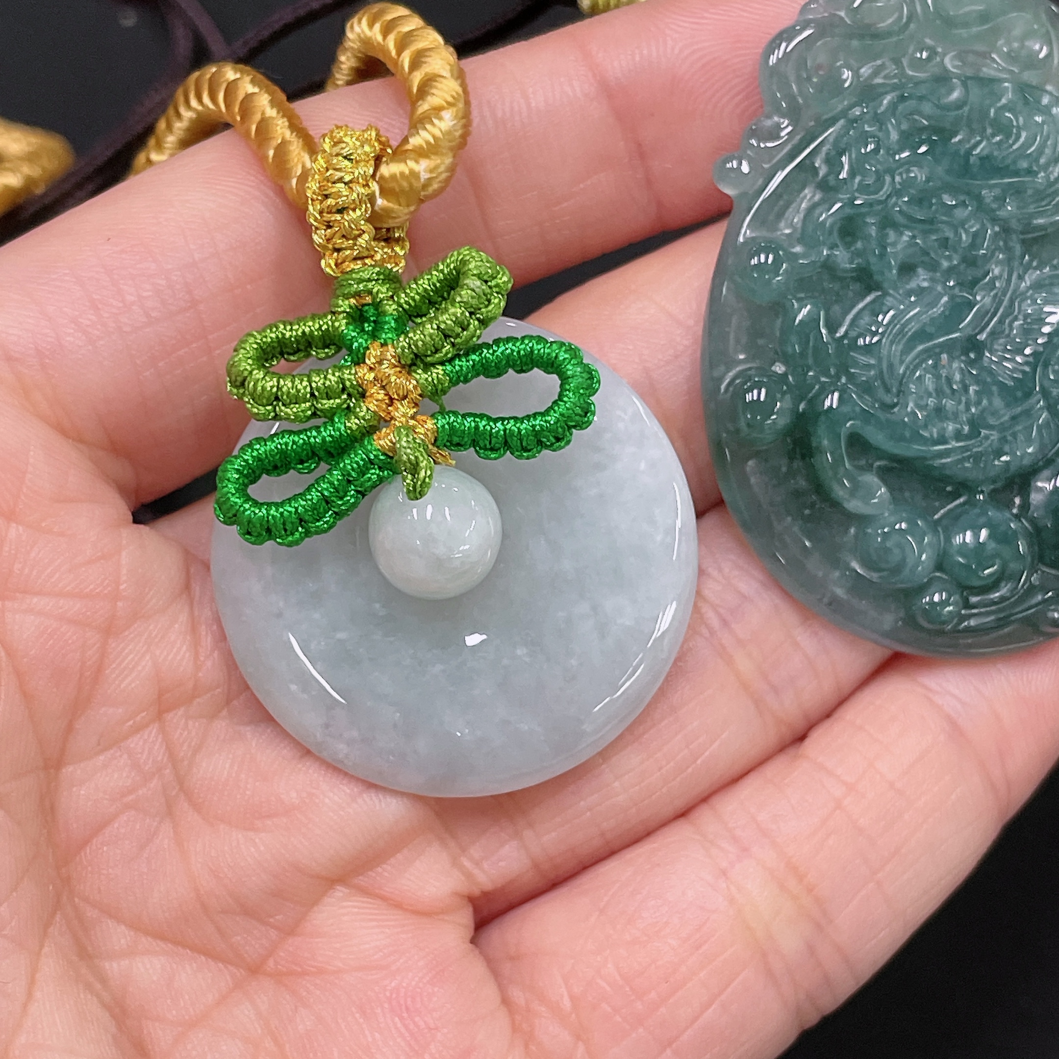 Jadeite Pendant Dragon Plaque + Peace Buckle Sell as a Lot Non-Gold