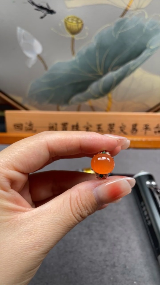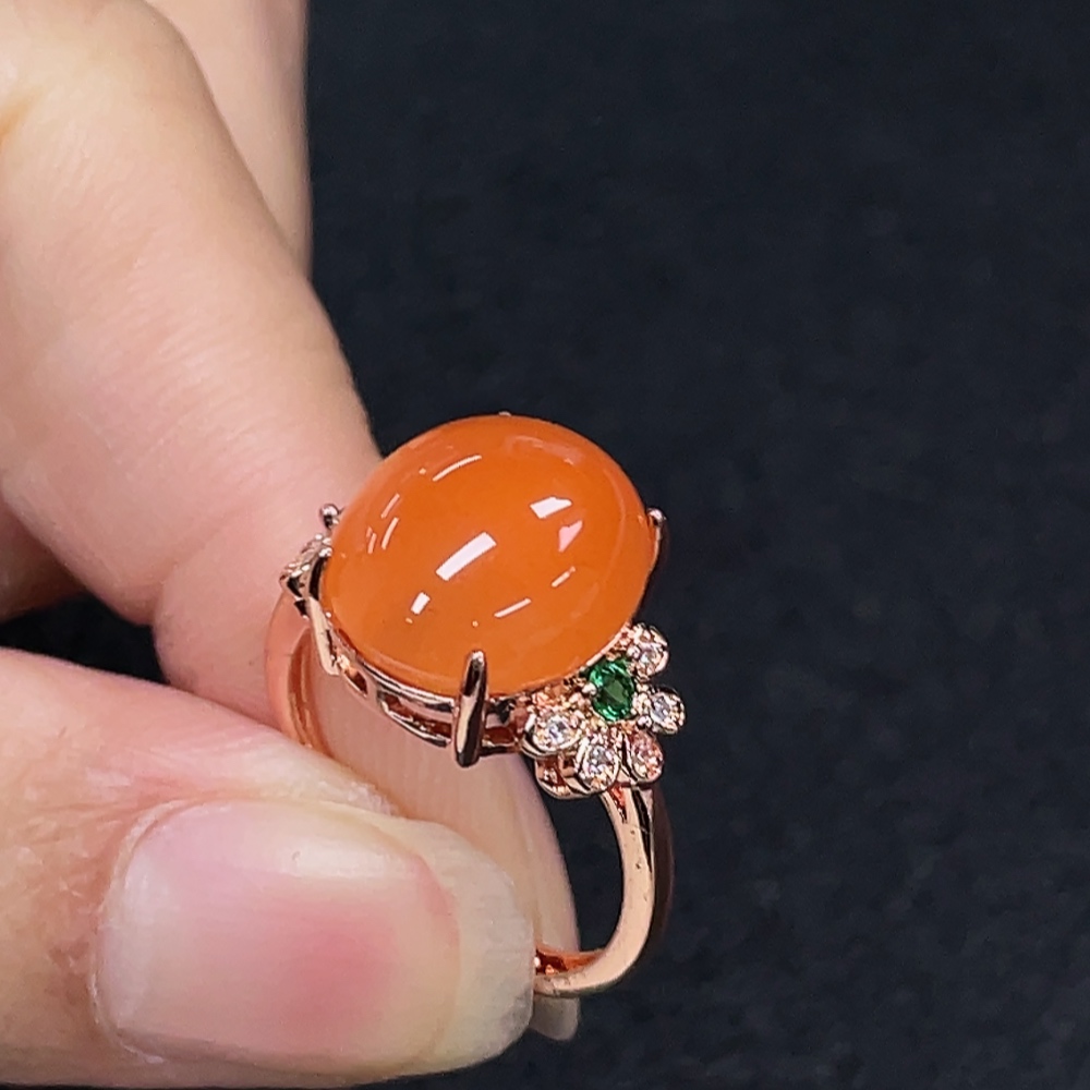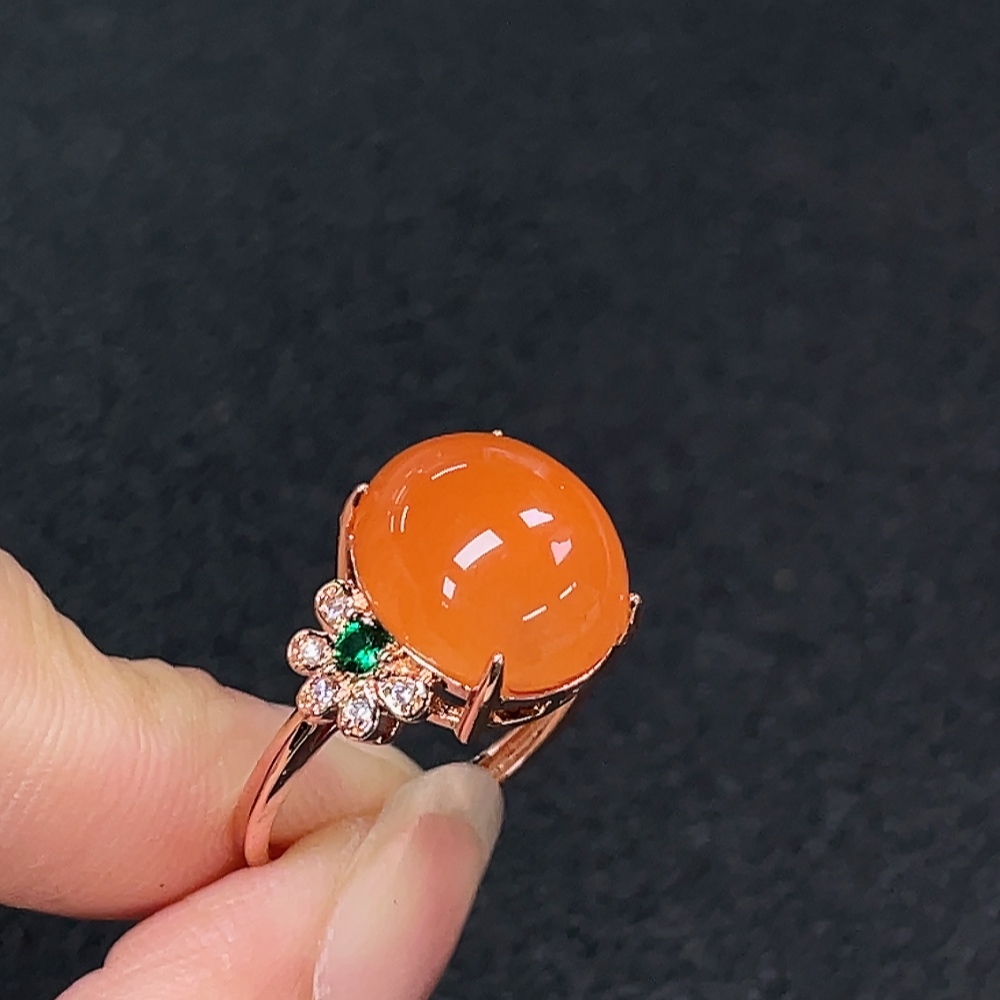 South Red Agate Ring Non-Gold Adjustable Total Weight Approx. 3.91g