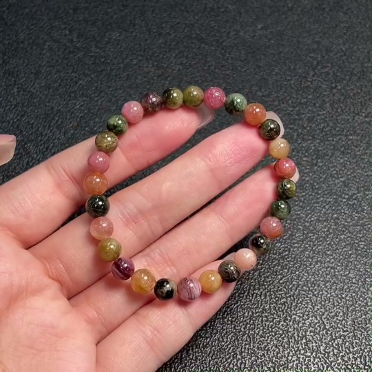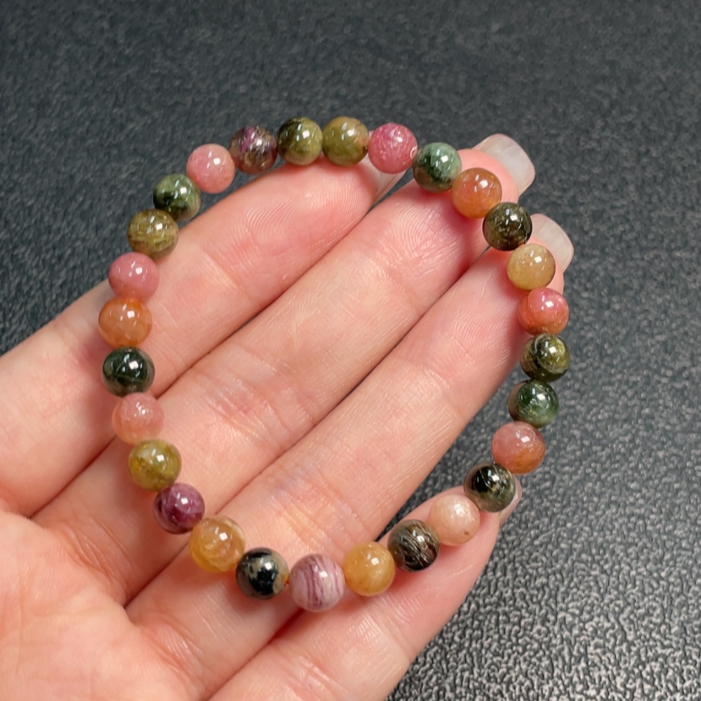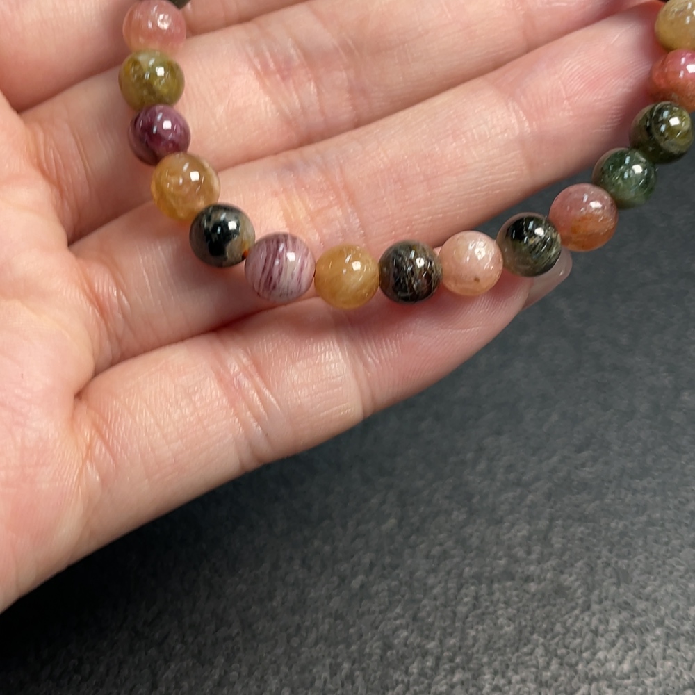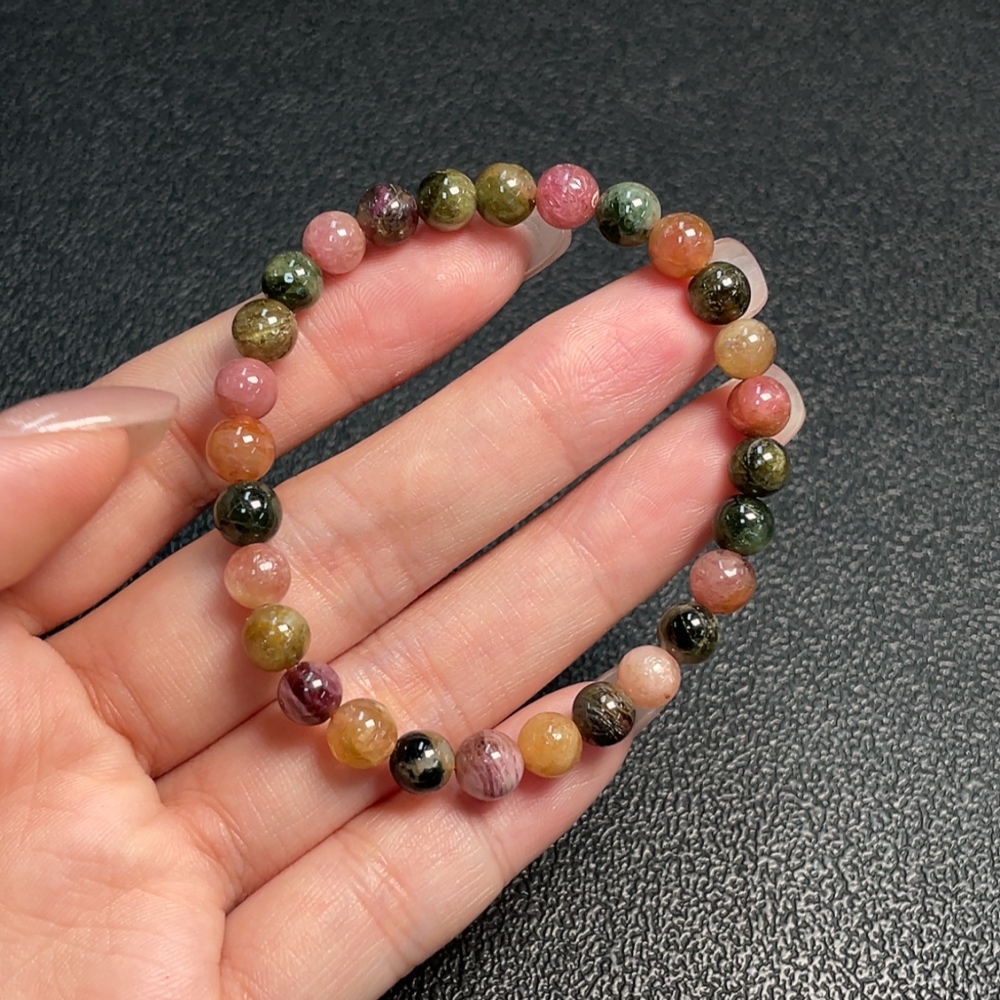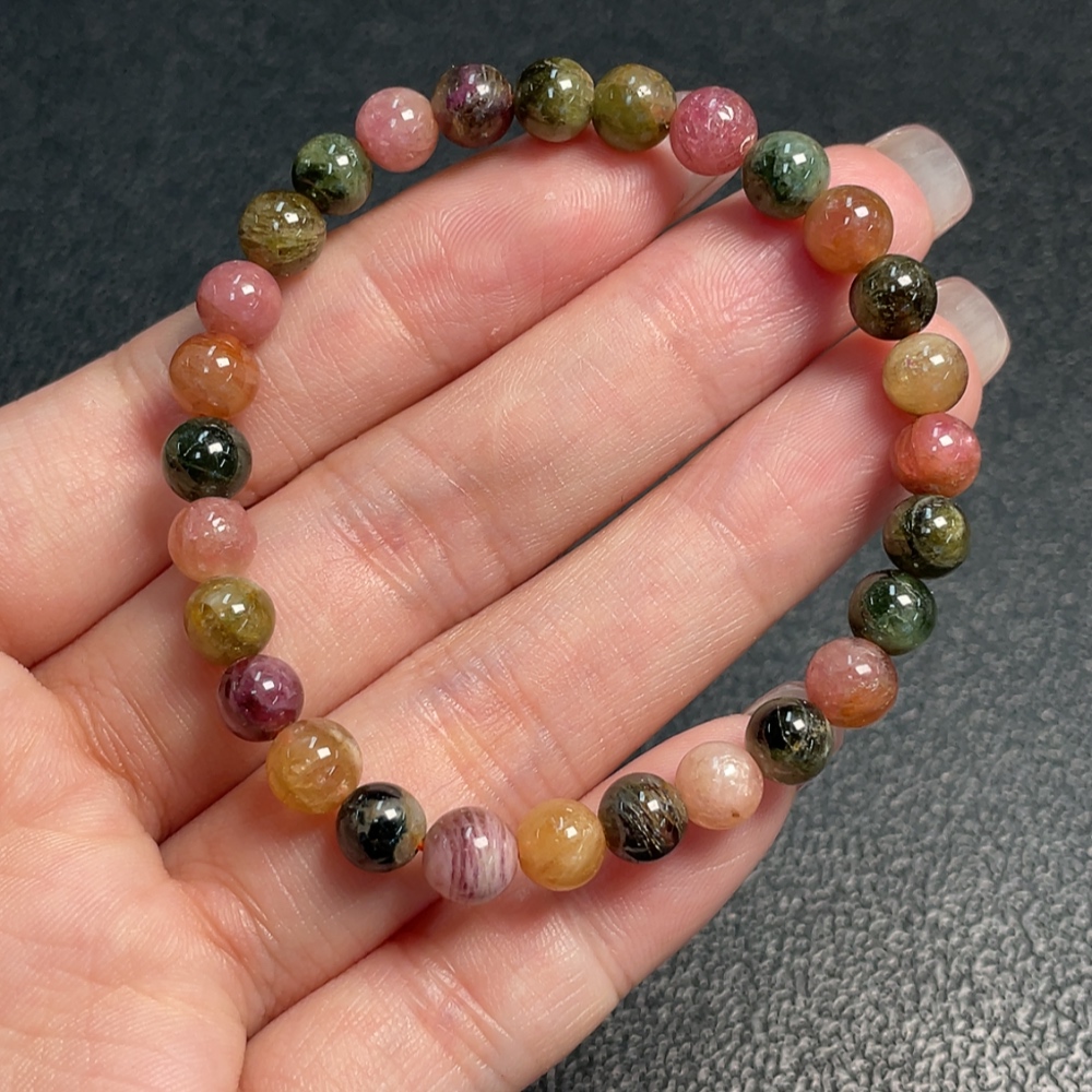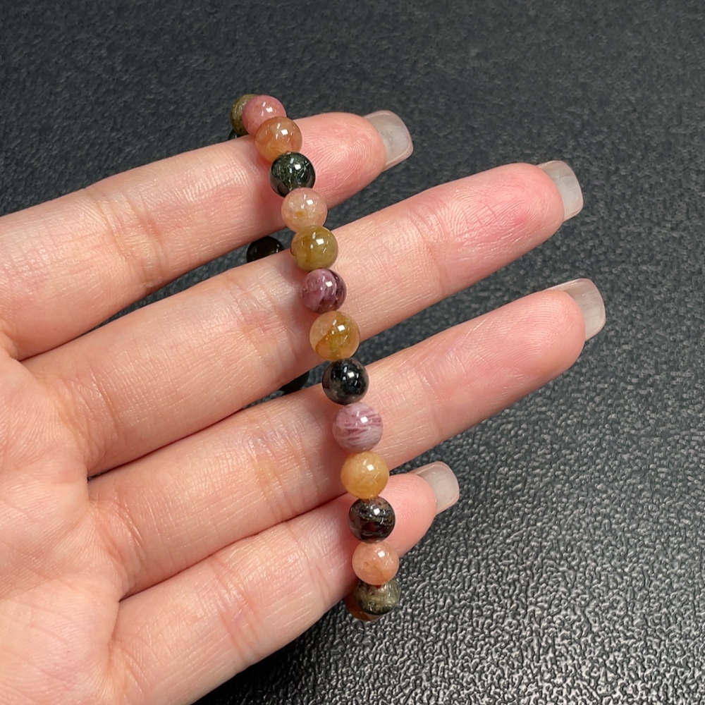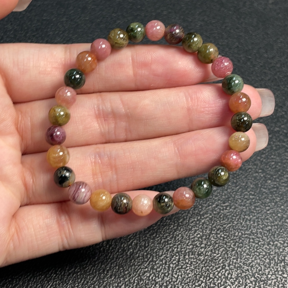 Tourmaline Bracelet with Visible Organic Matter and Other Mineral Components, Total Weight Approx. 10.29g, Size About 6.4mm