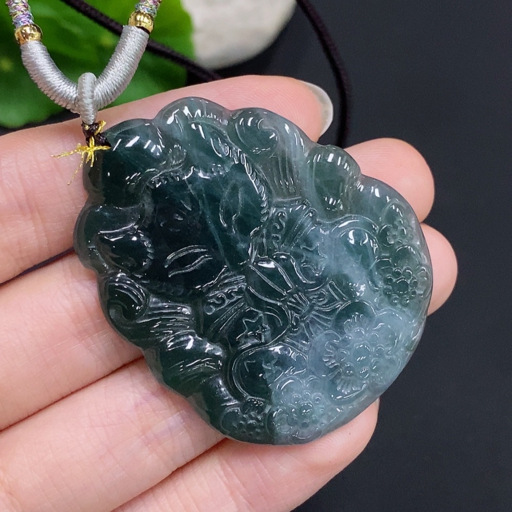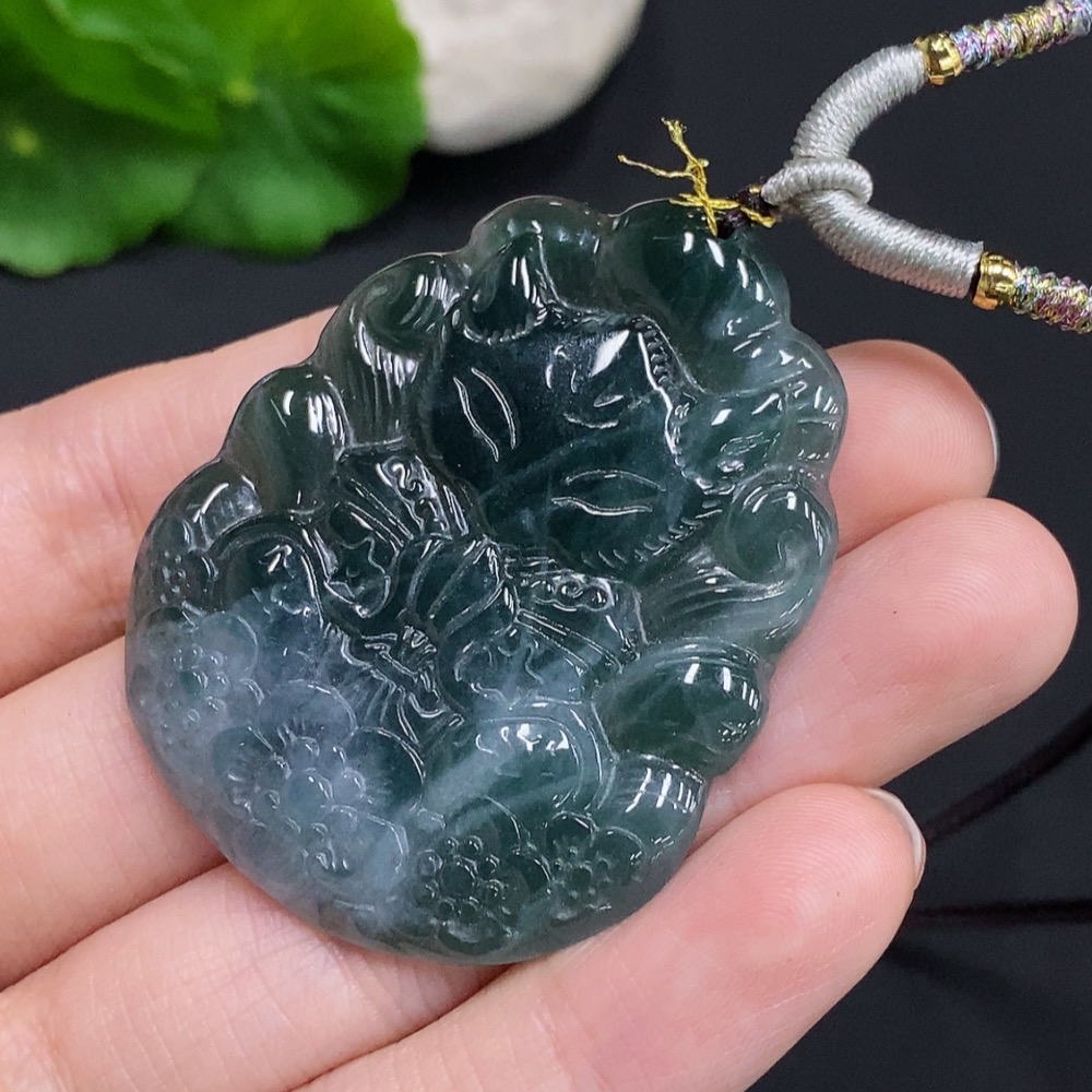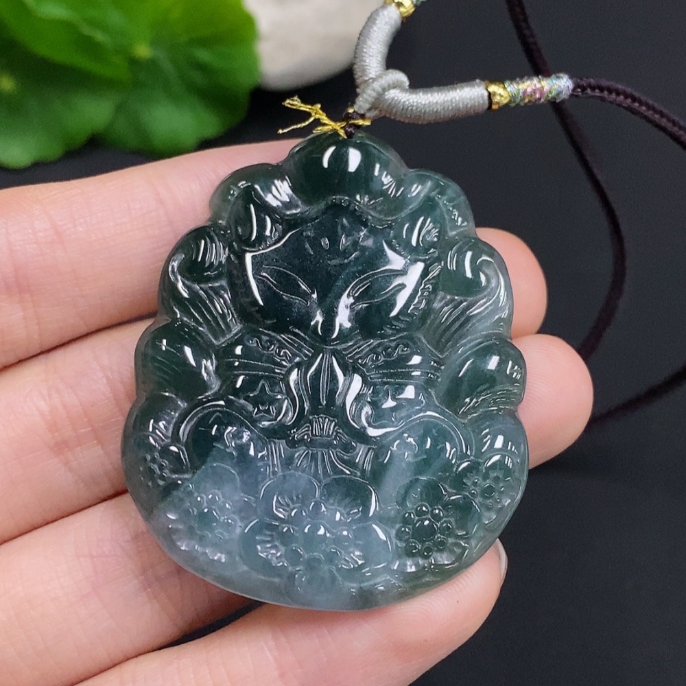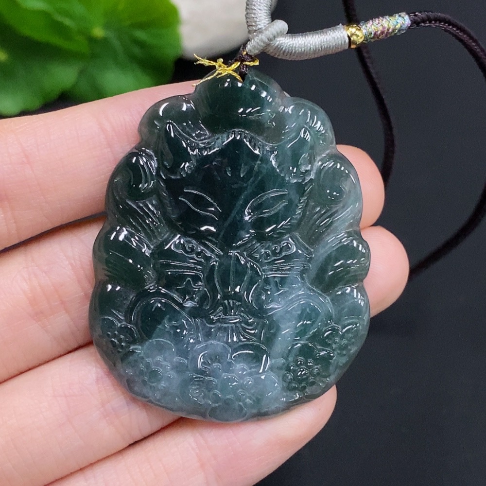 Jadeite Nine-Tailed Fox Pendant Total Weight Approx. 19.7g (Including Rope Weight)