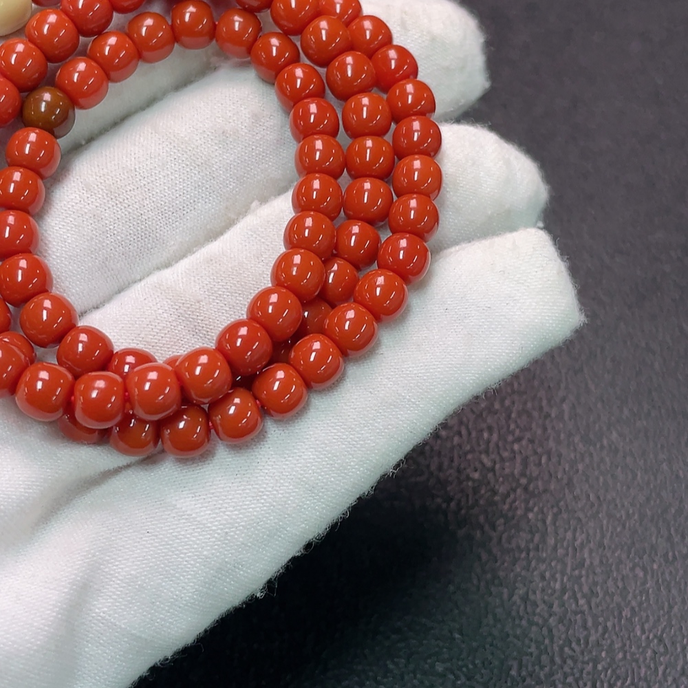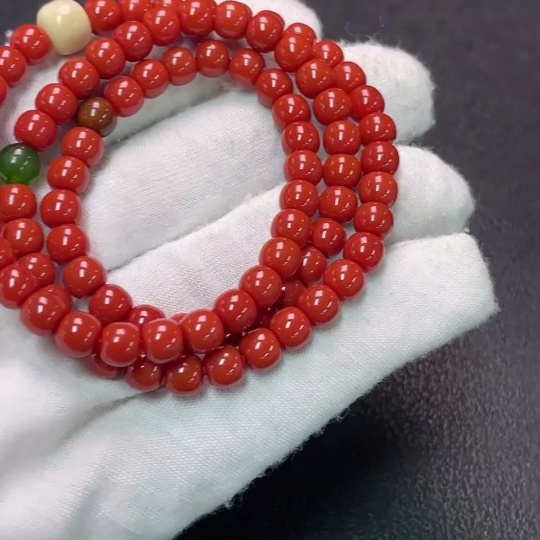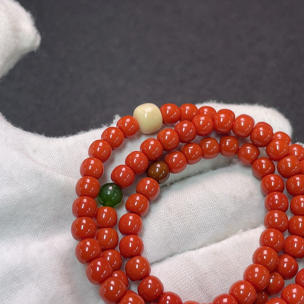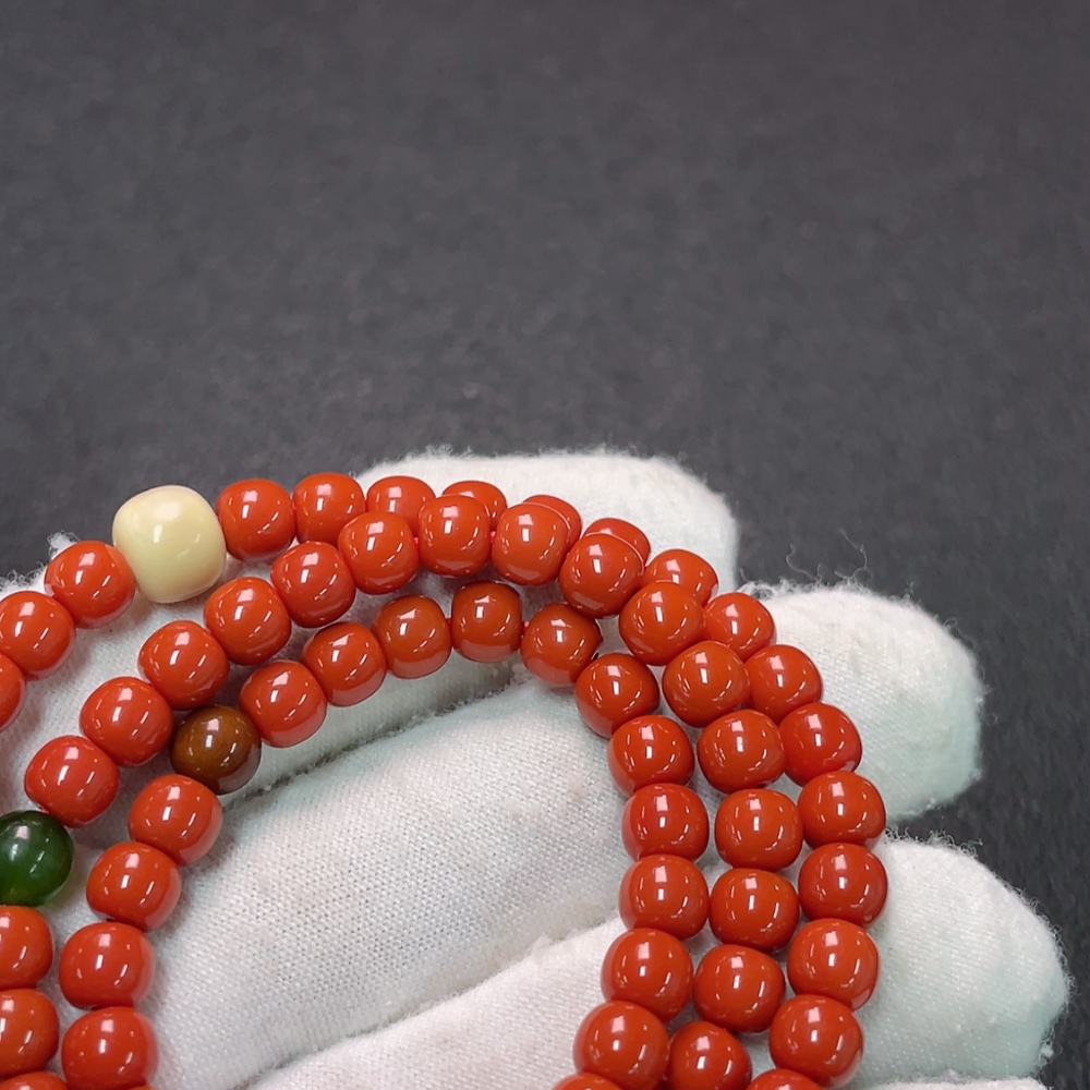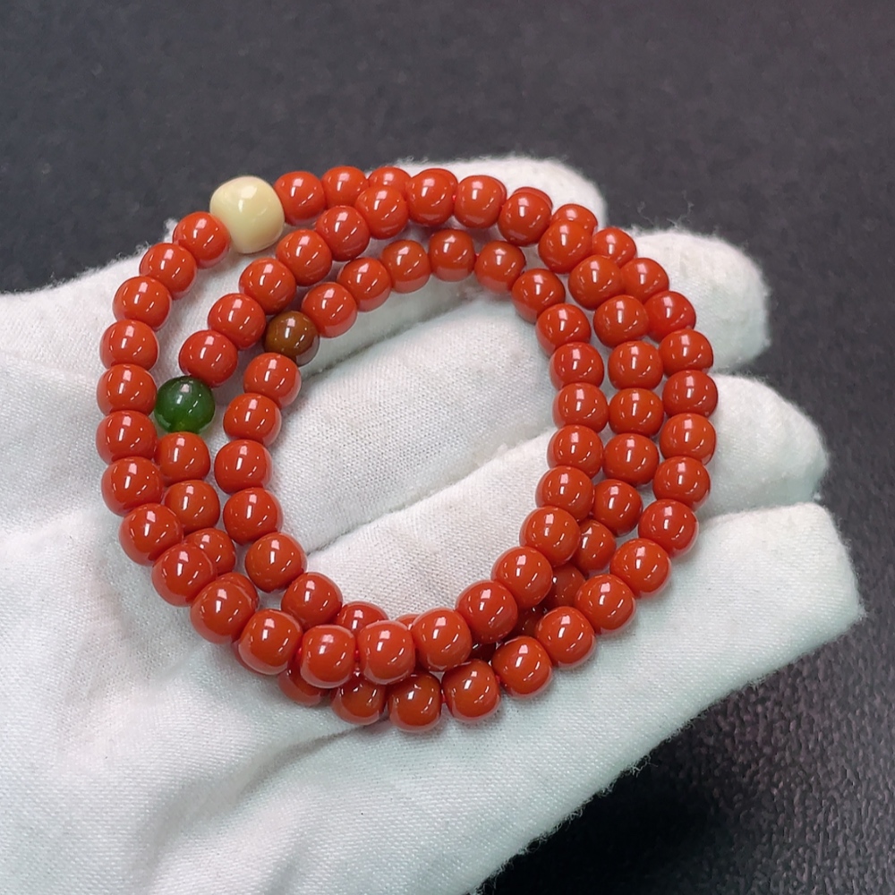 Red Agate Bead Strand with Hetian Jade (Green), Visible Organic Matter, Stones May Be Non-Natural, Total Weight Approx. 23.07g, Size ~5.7mm