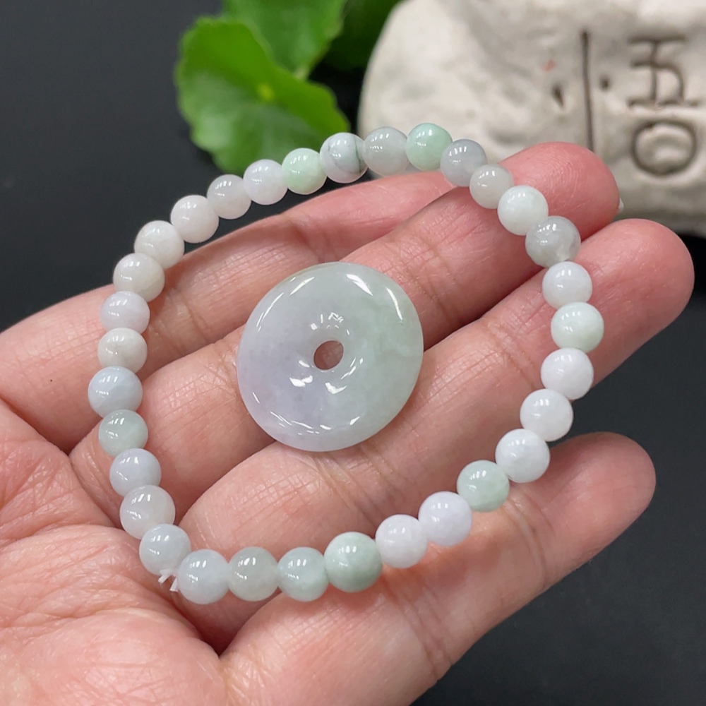 Jadeite Bracelet + Pendant Approx. 5.3mm Total Weight Approx. 12.1g