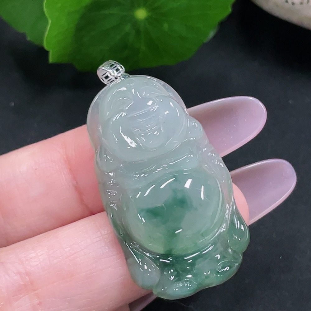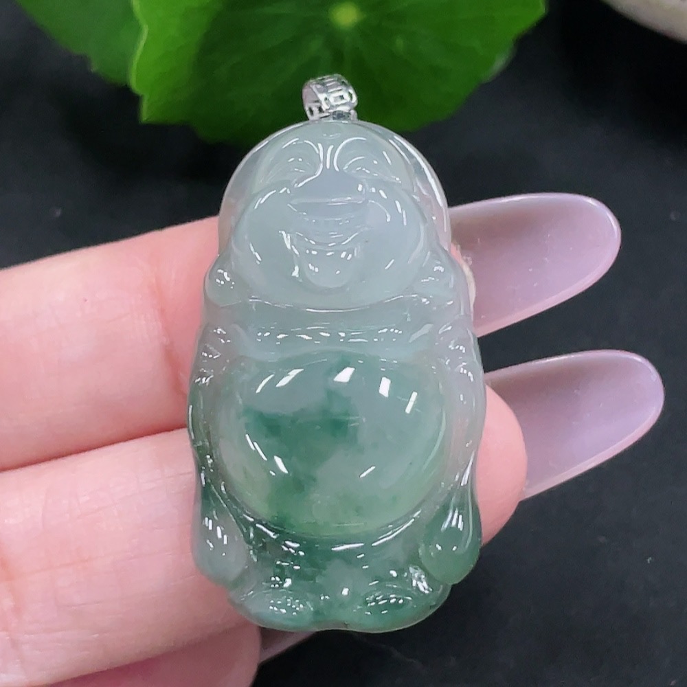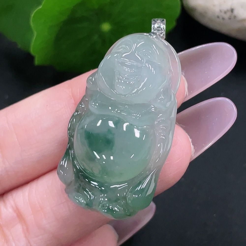 Jadeite Standing Buddha Pendant 18K Gold Total Weight Approx. 10.4g