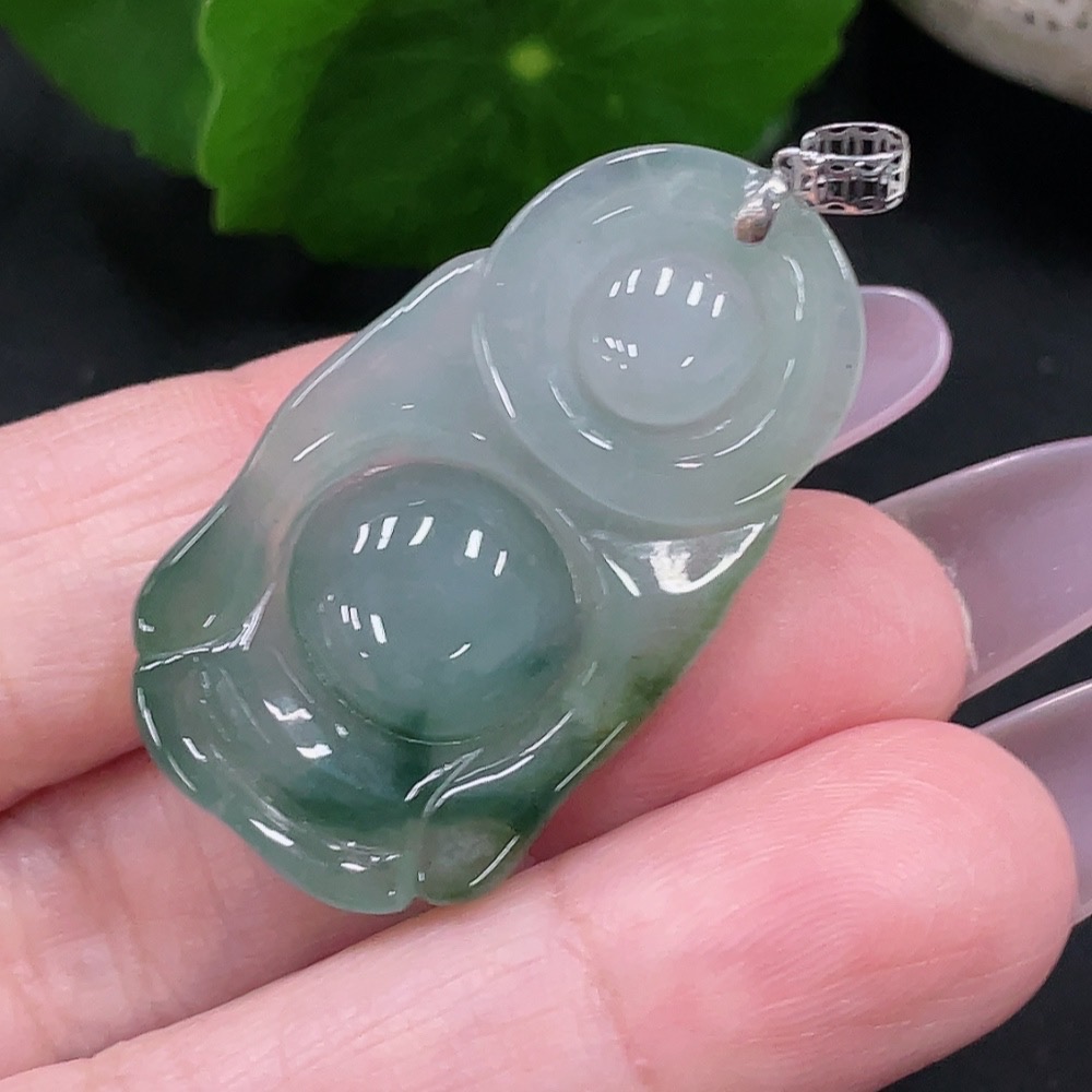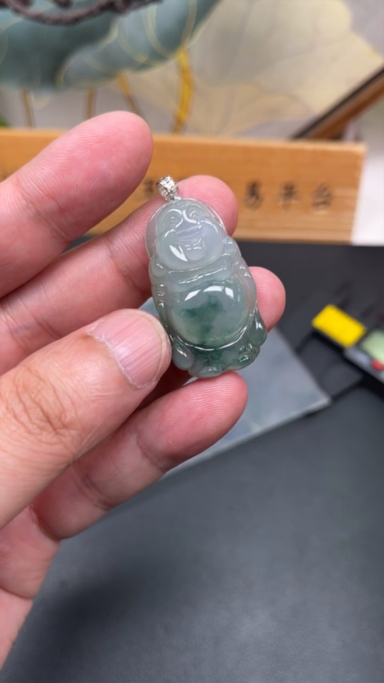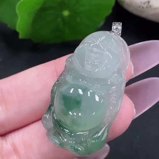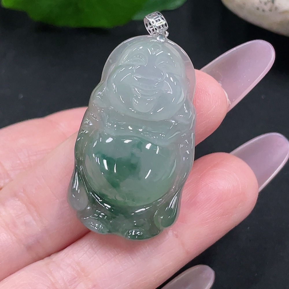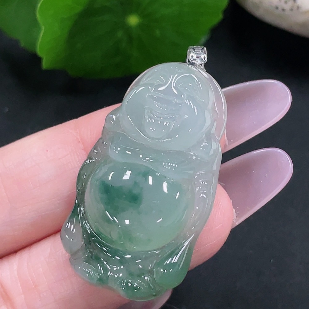 Jadeite Standing Buddha Pendant 18K Gold Total Weight Approx. 10.4g