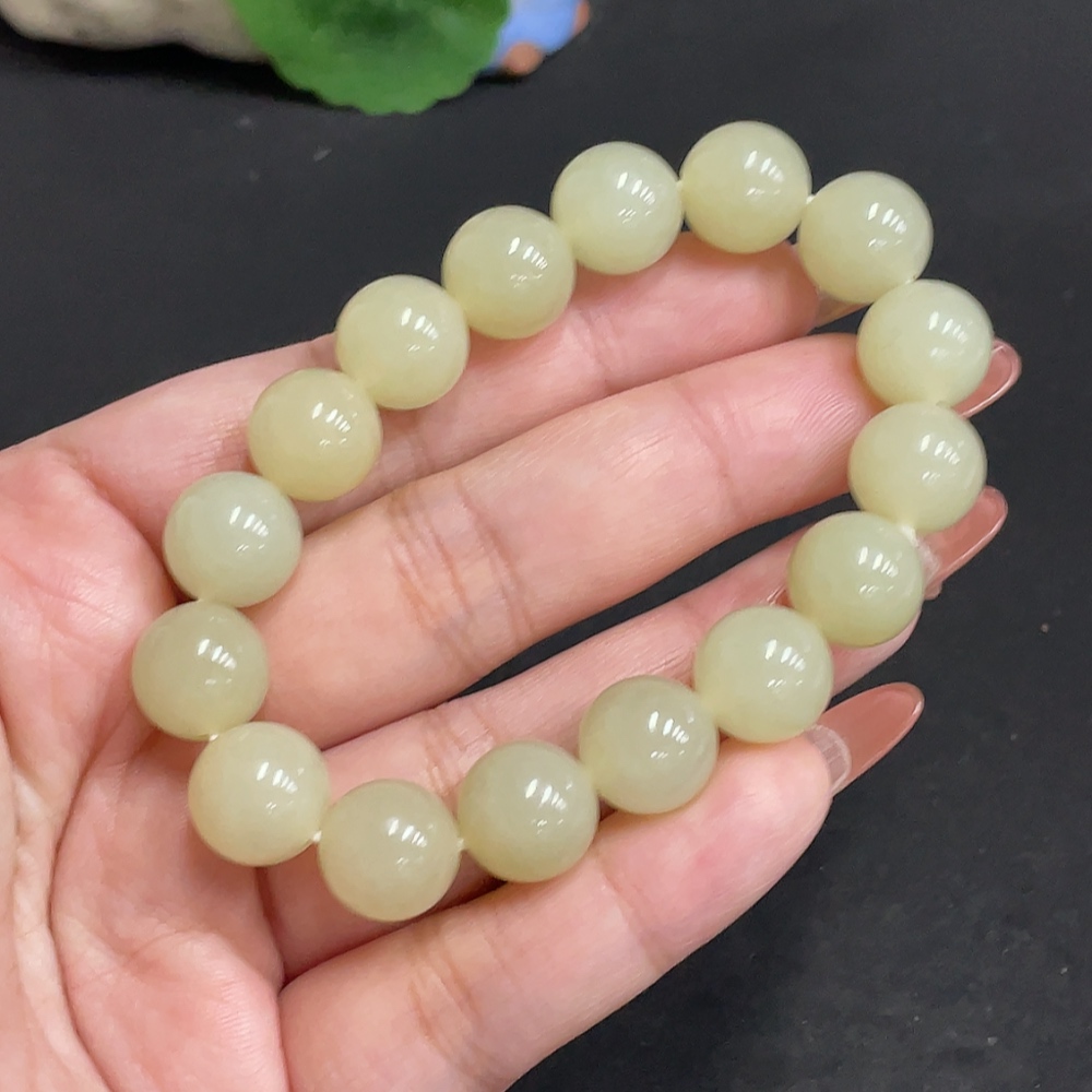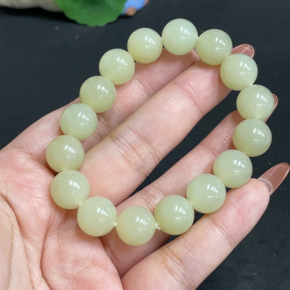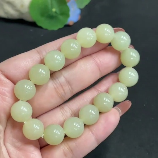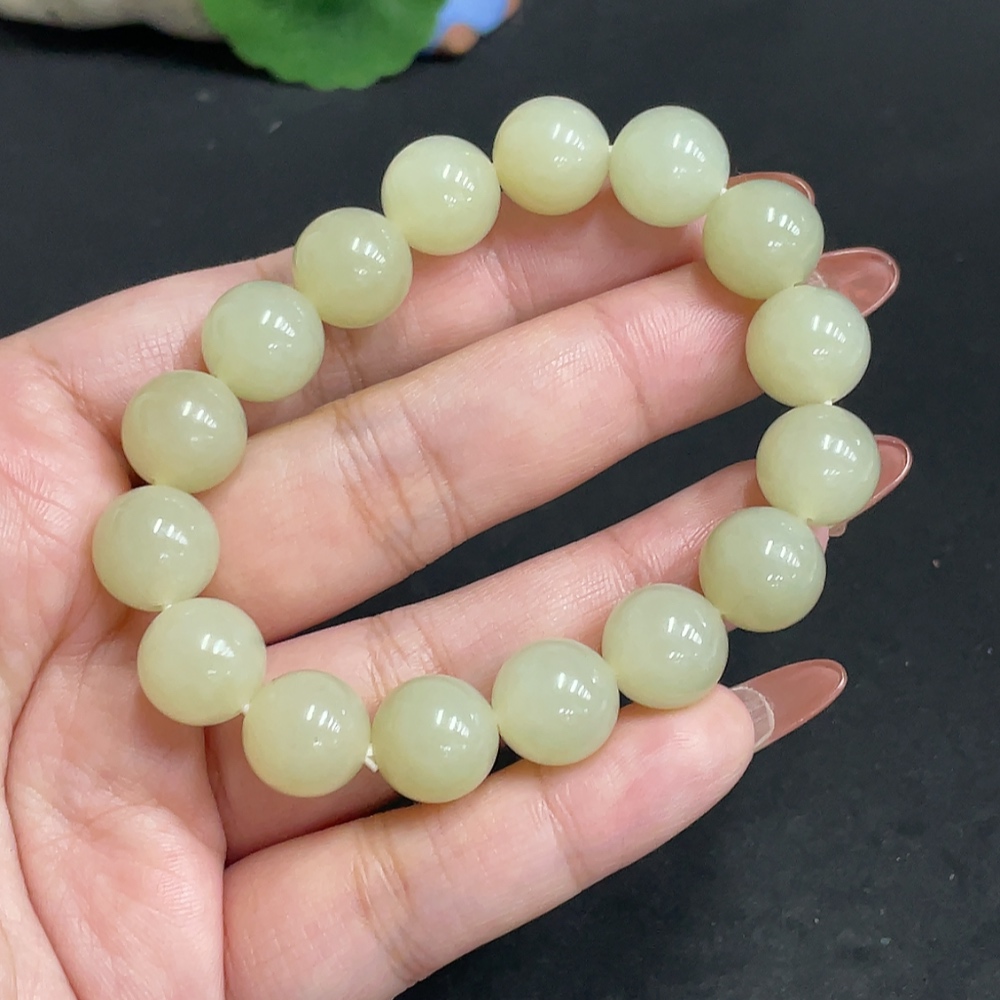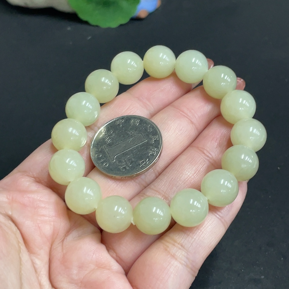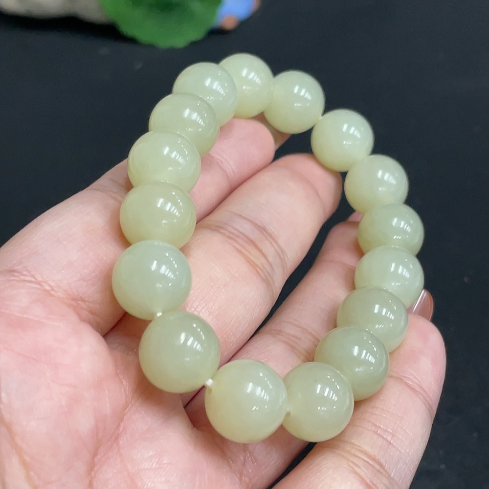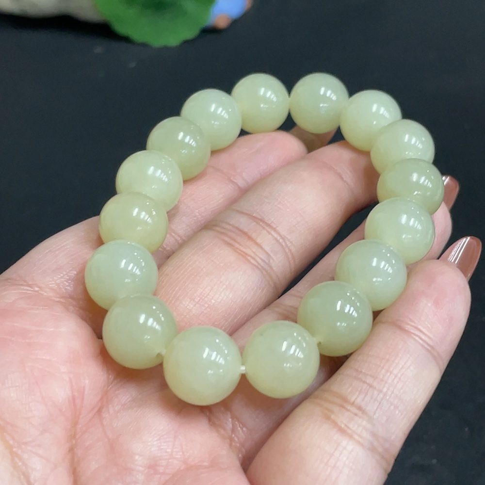 Hetian Jade Bracelet, Approx. 11.8 mm Beads, Total Weight About 40.9g