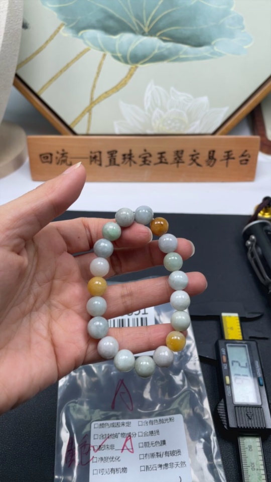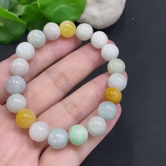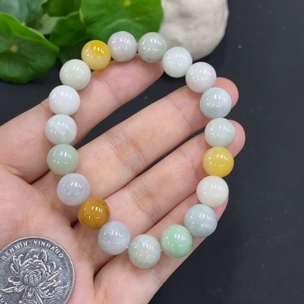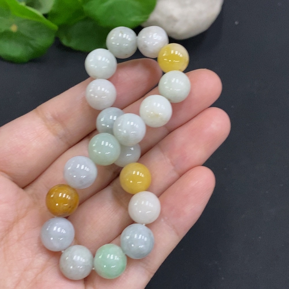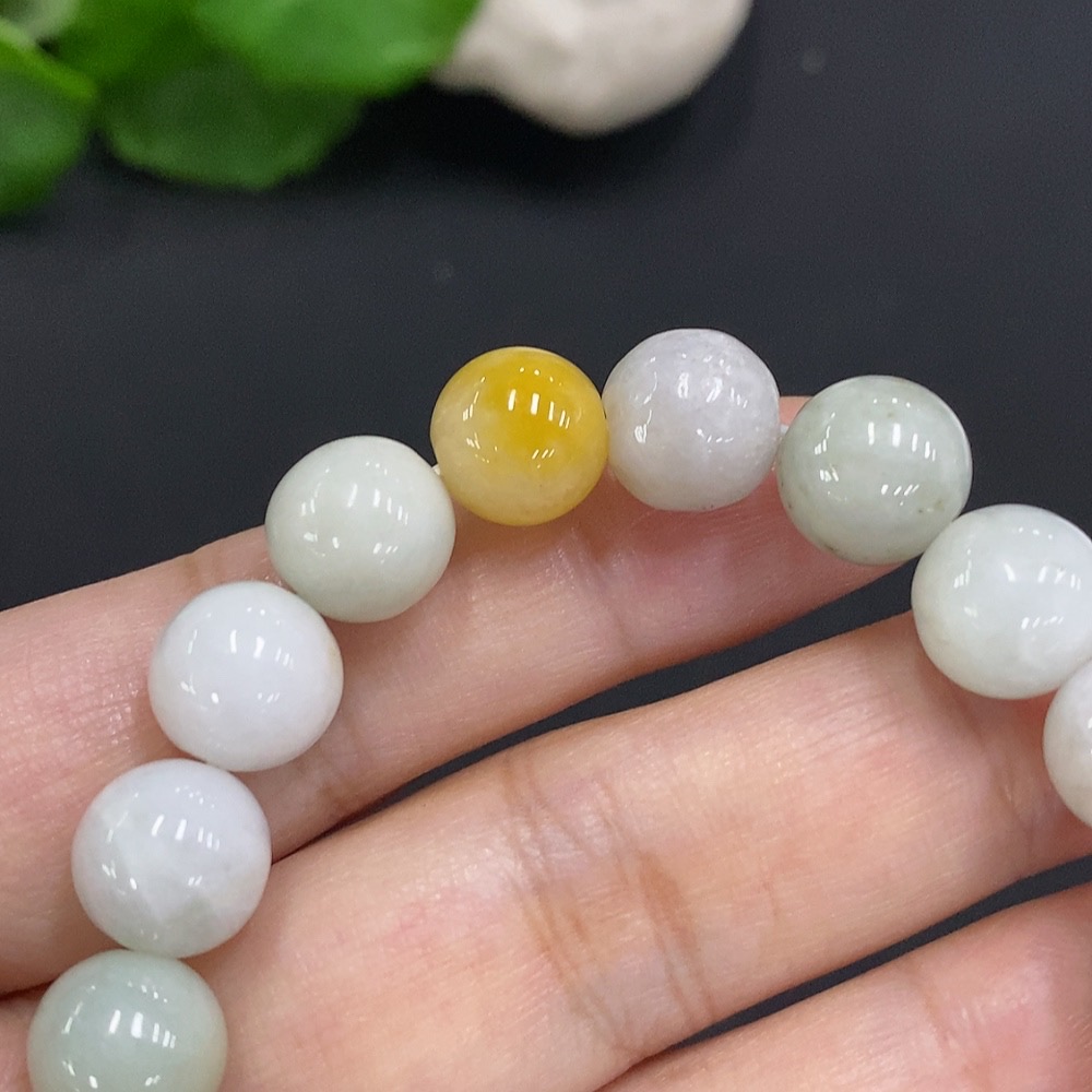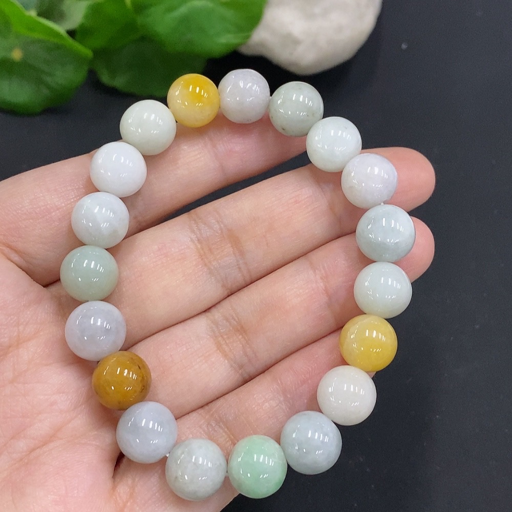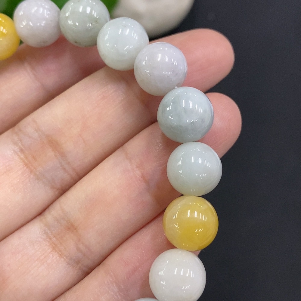 Jadeite Bracelet Total Weight Approx. 32g Size 9.8mm Yellow Beads Non-Jadeite
