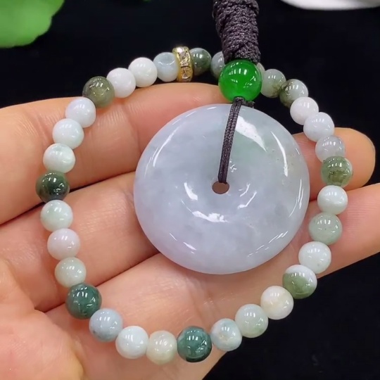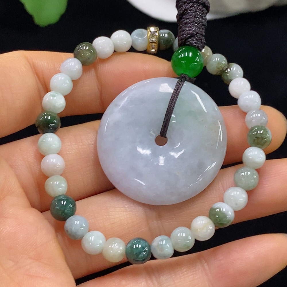 Jadeite Bracelet/Ping An Kou Pendant Sell as a Lot with Non-A Grade Beads Non-Gold