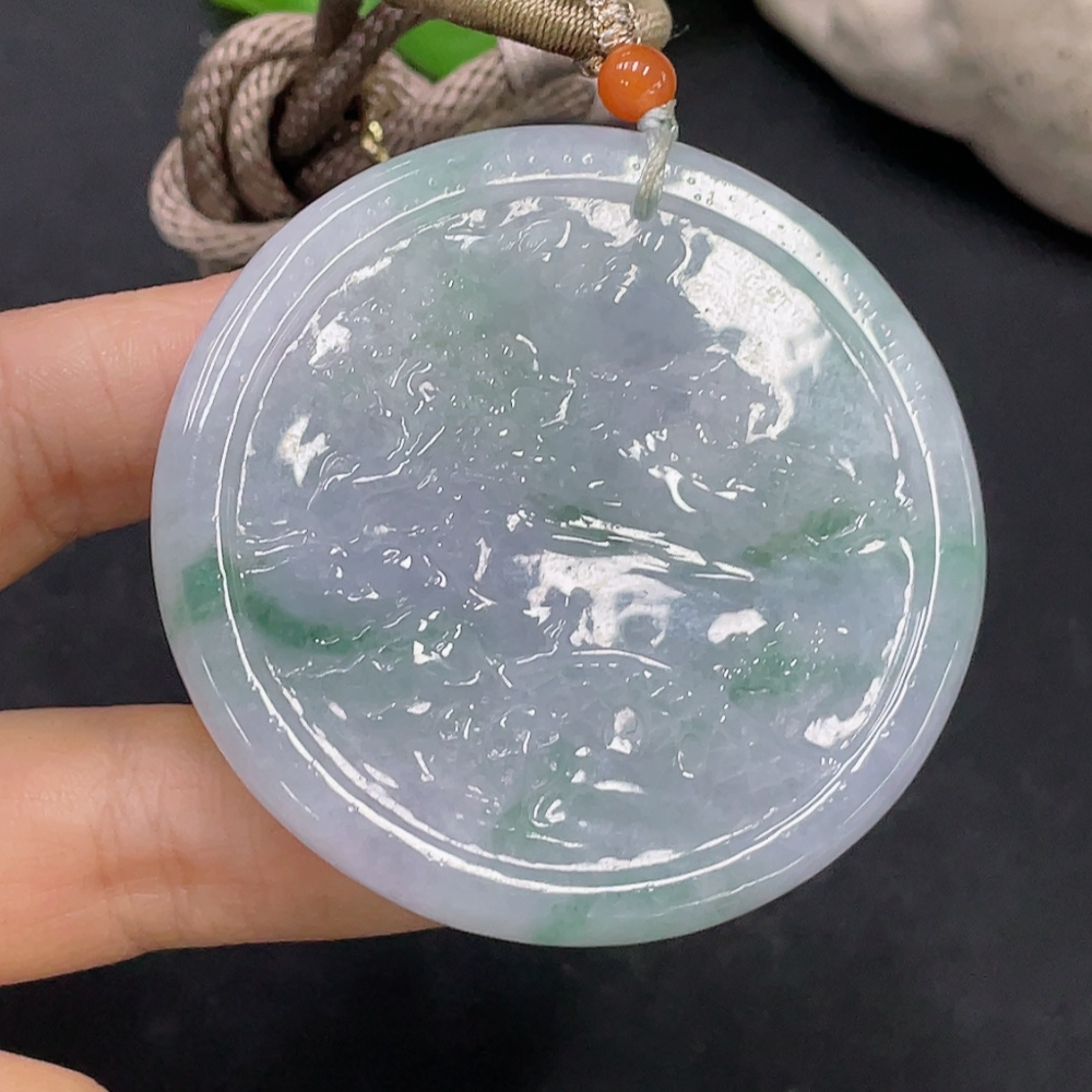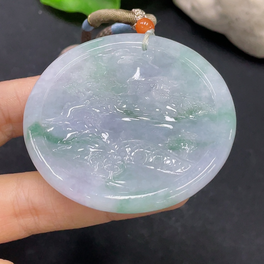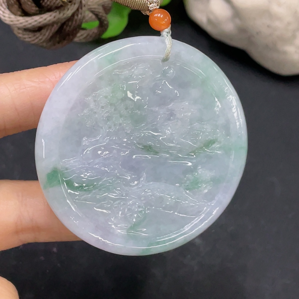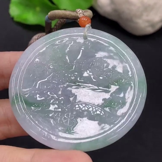 Jadeite Landscape Pendant Total Weight Approx. 41.68g (Including Cord Weight) With Non-Grade A Beads