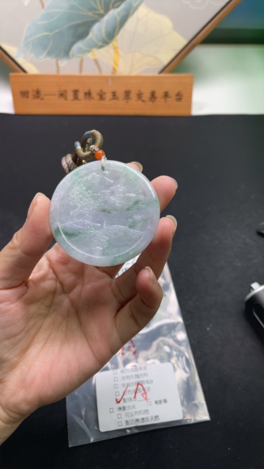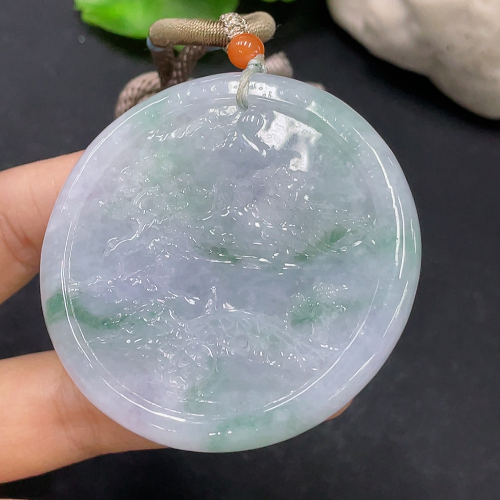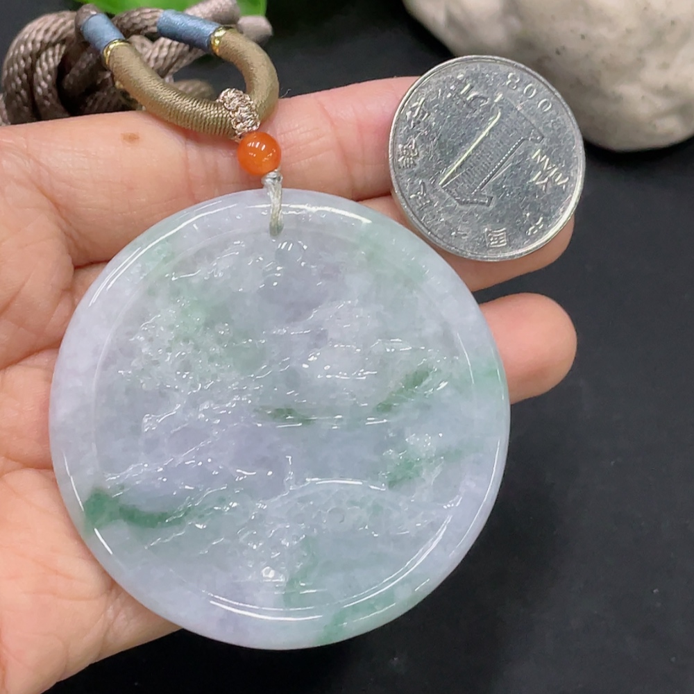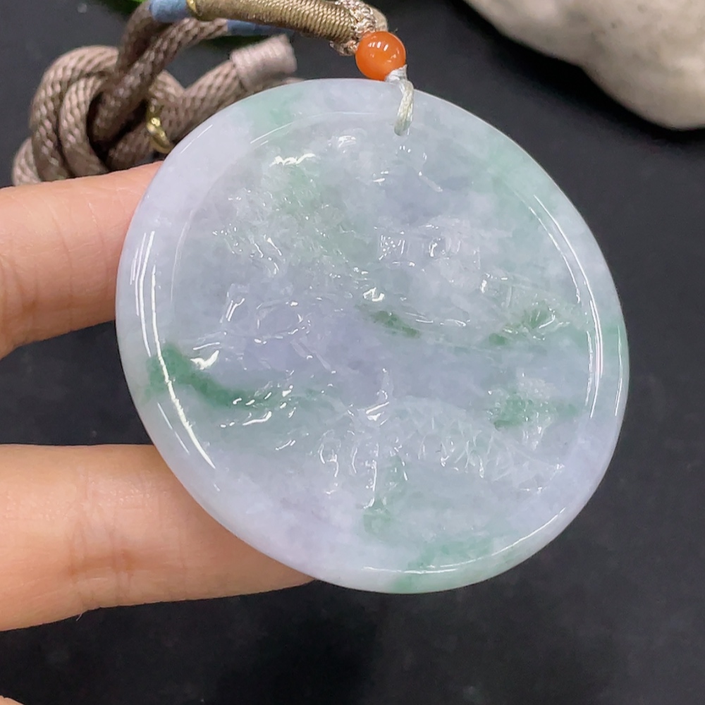 Jadeite Landscape Pendant Total Weight Approx. 41.68g (Including Cord Weight) With Non-Grade A Beads