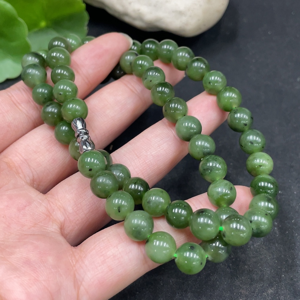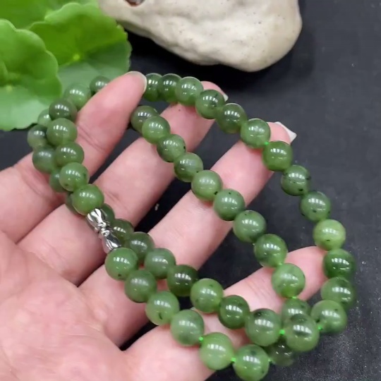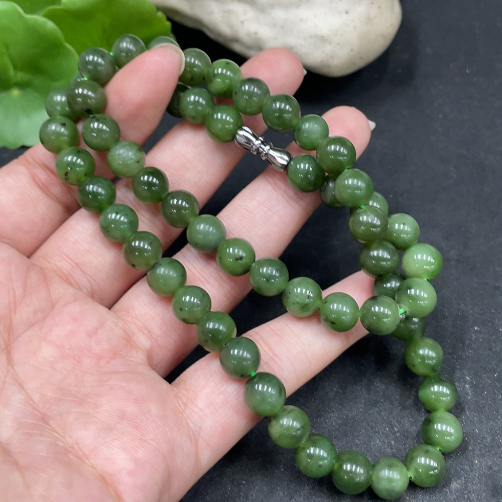 Hetian Jade Jasper Bead Necklace, approx. 8mm, total weight about 44.9g