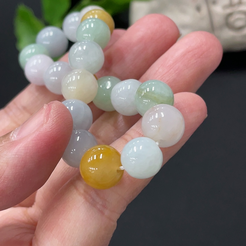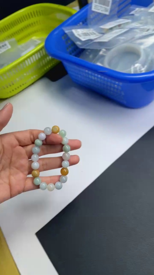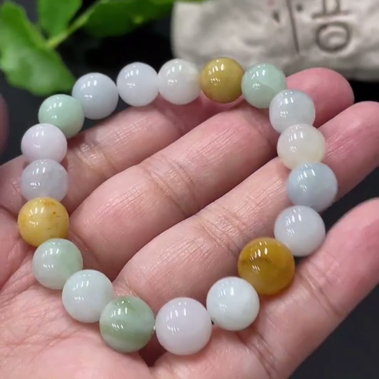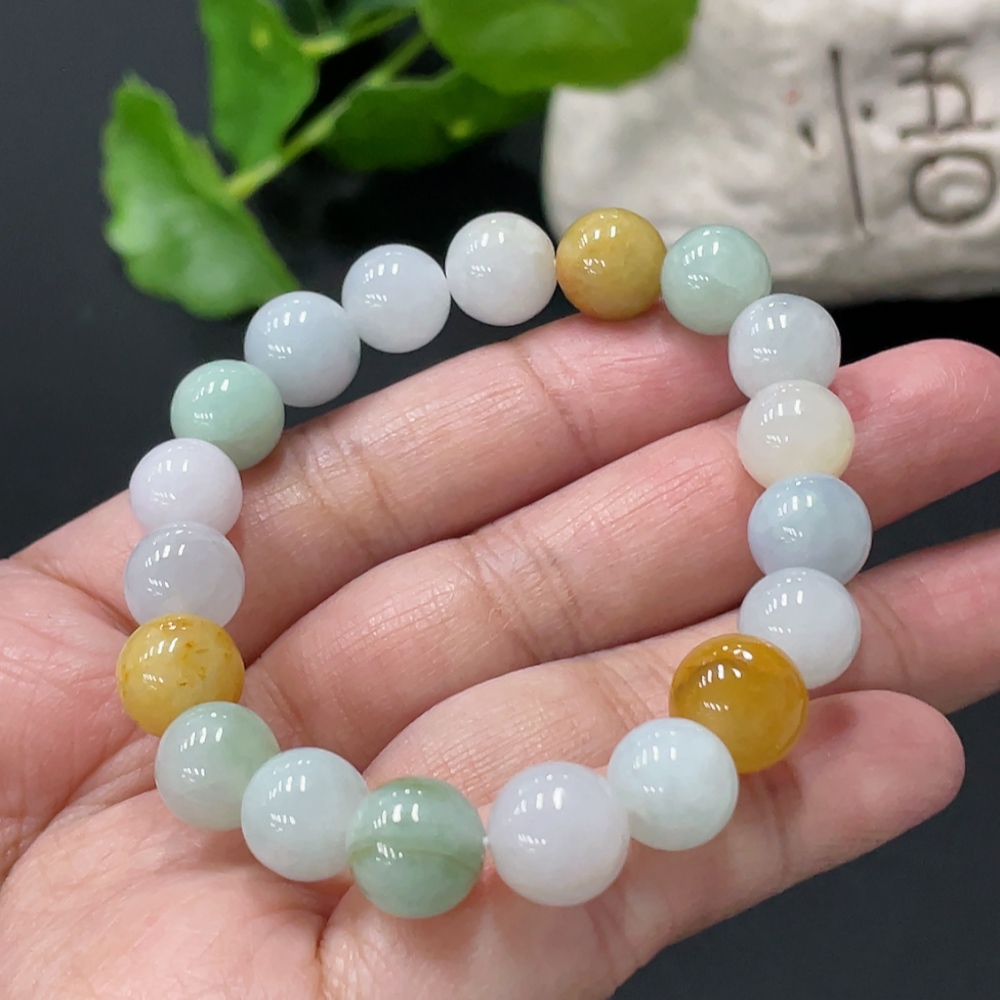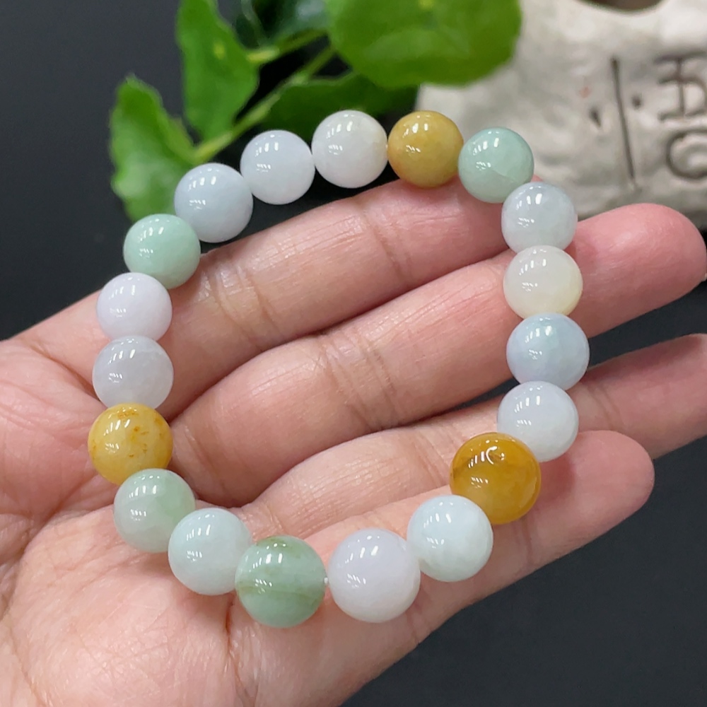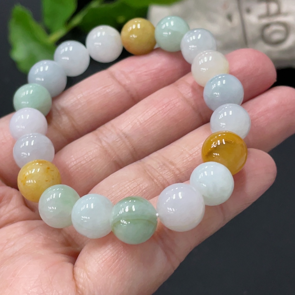 Jadeite Bracelet Approx. 9.2mm Beads Total Weight Approx. 26.2g Yellow Beads Non-A