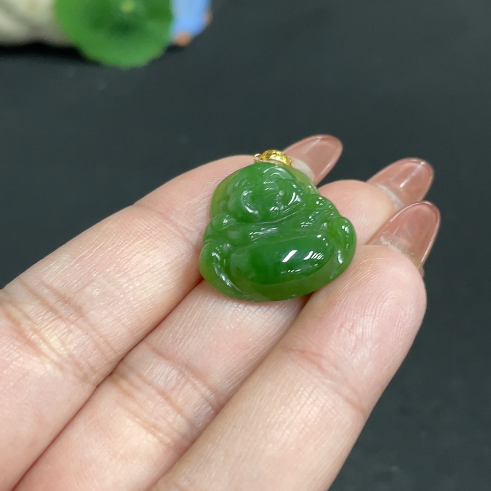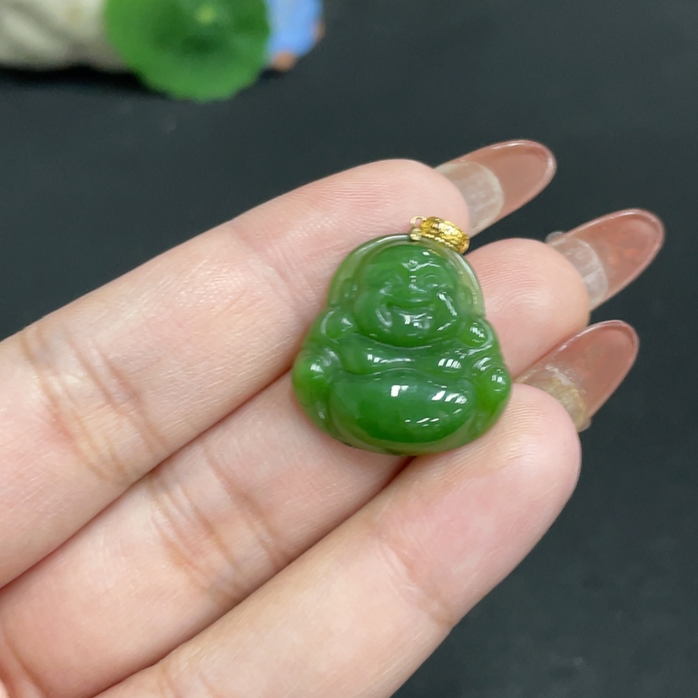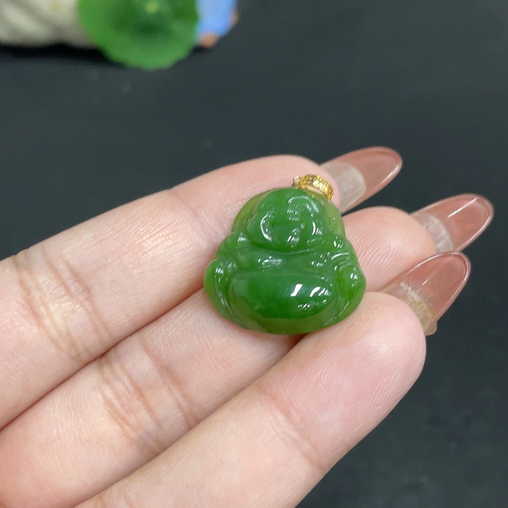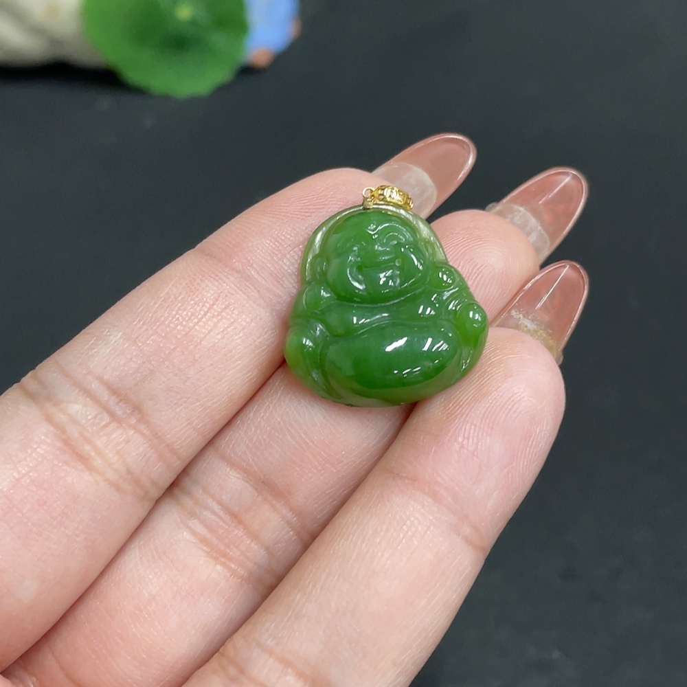 Hetian Jade Jasper Inlaid Pendant, Buddha, 18k, Total Weight Approx. 4.3g