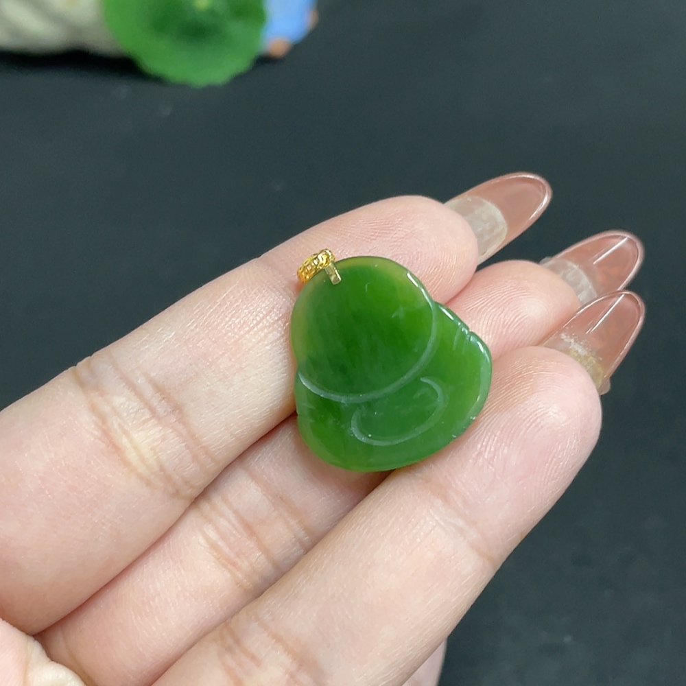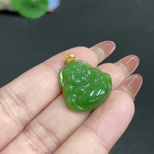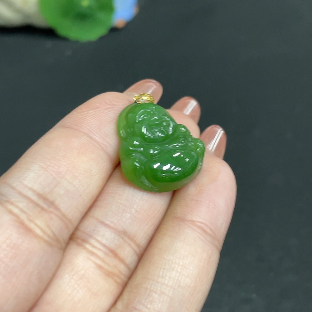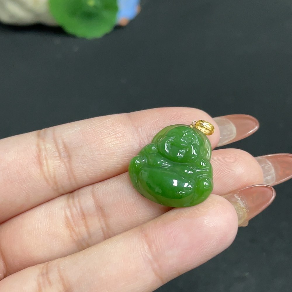 Hetian Jade Jasper Inlaid Pendant, Buddha, 18k, Total Weight Approx. 4.3g