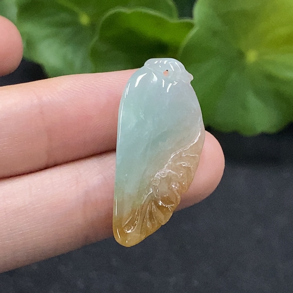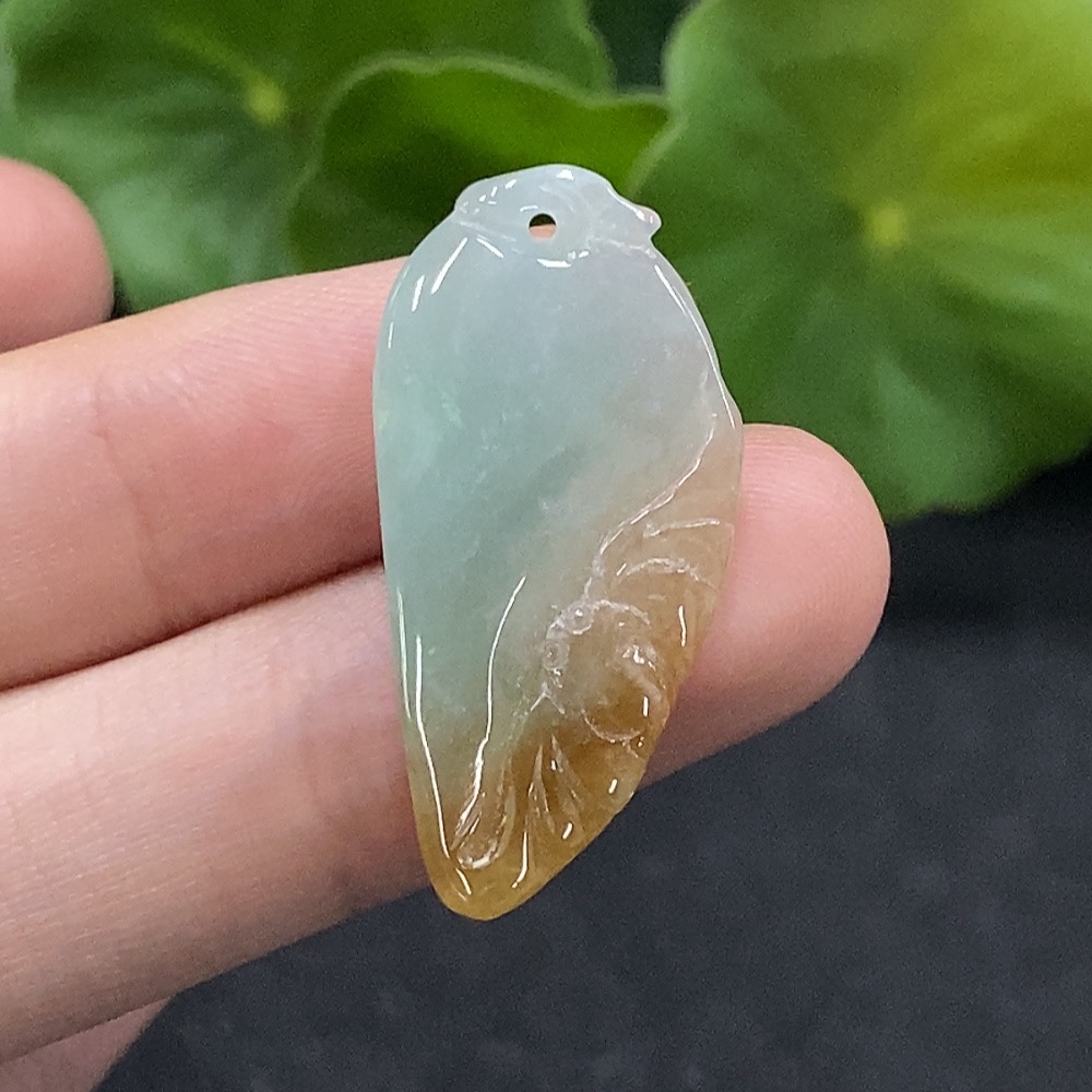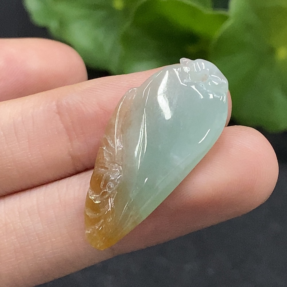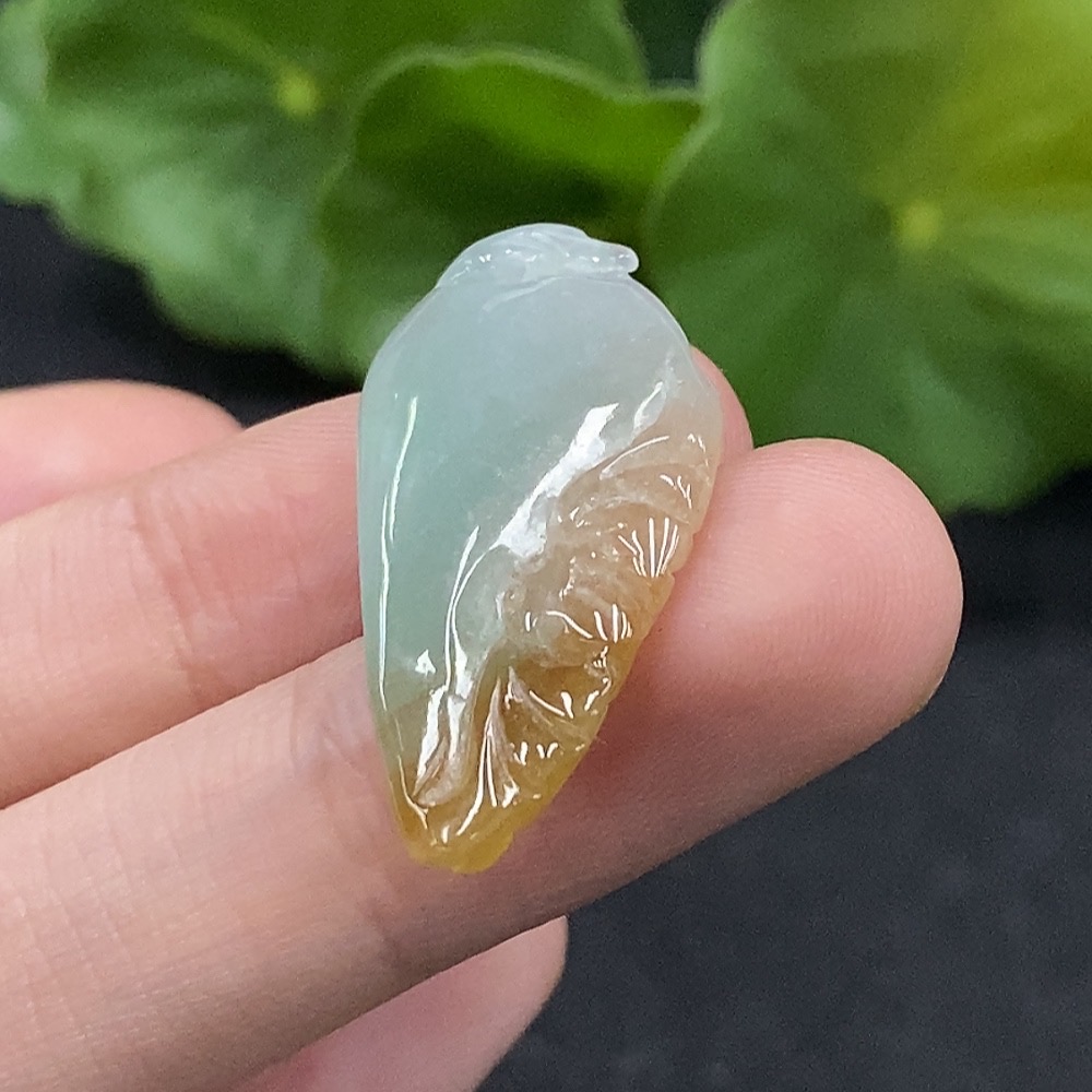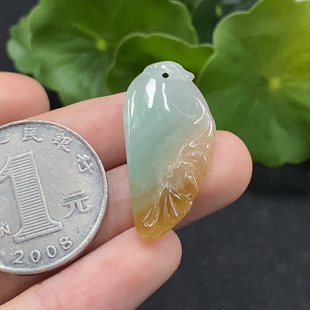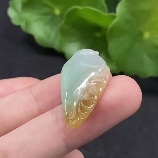 Jadeite Pendant Fu Gua, Total Weight Approx. 3.27g, Yellow Part Color Origin Undetermined