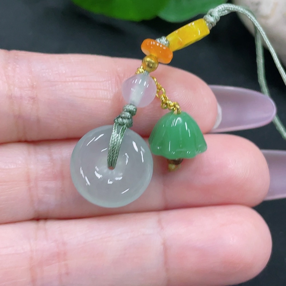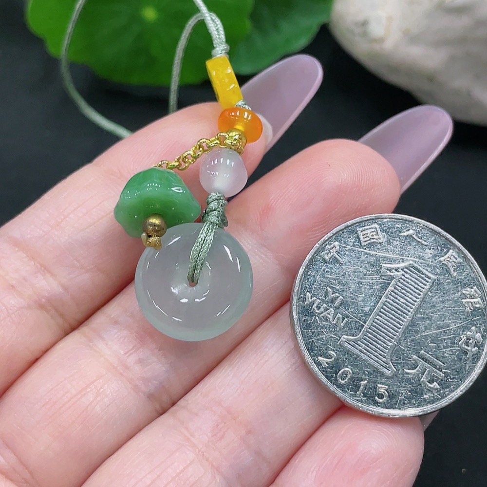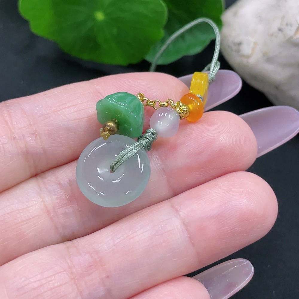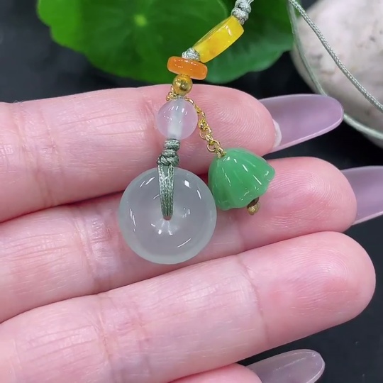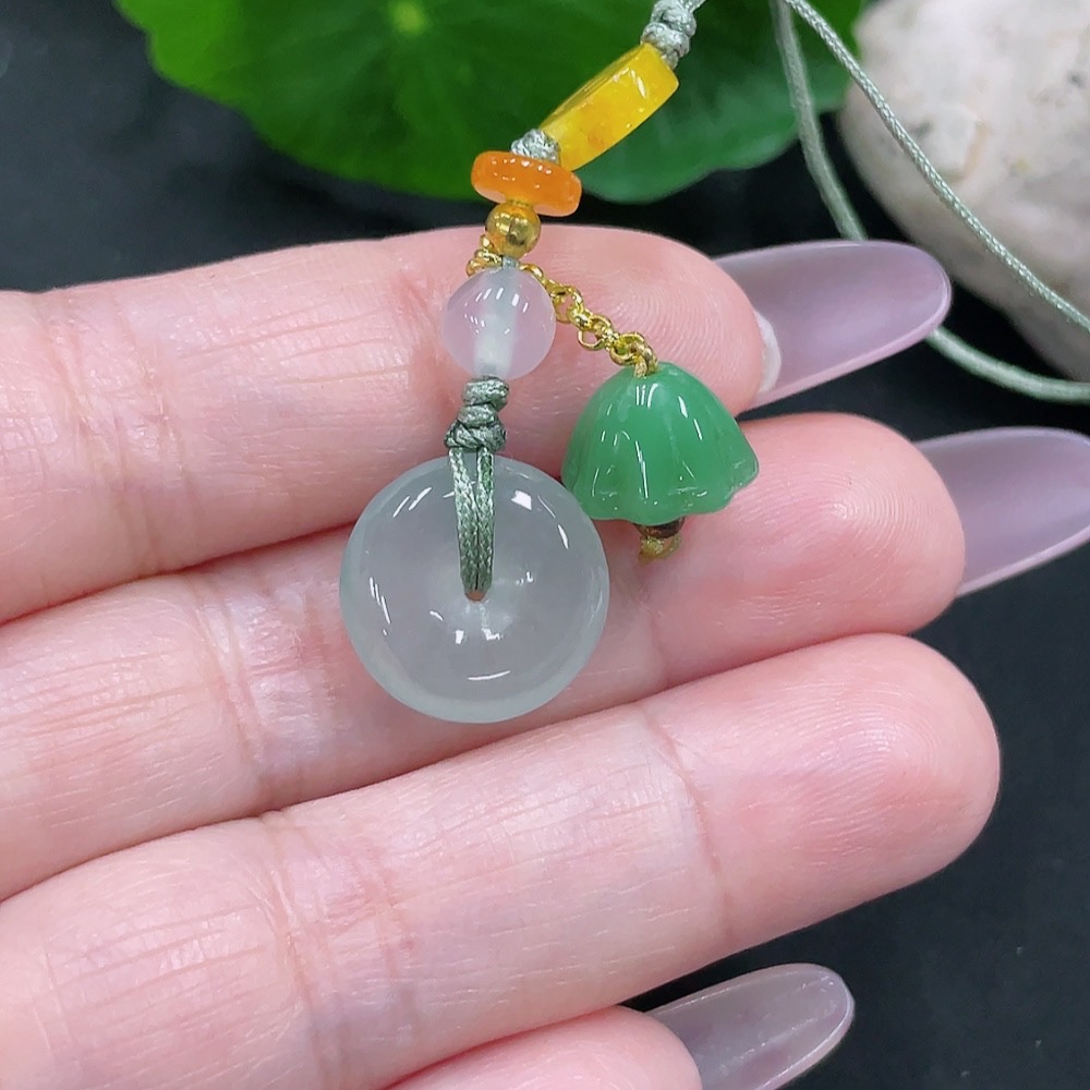Jadeite Pendant with Non-A Grade Beads, Non-Gold Inlaid, Total Weight Approx. 3.66g