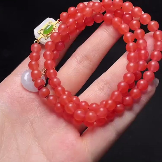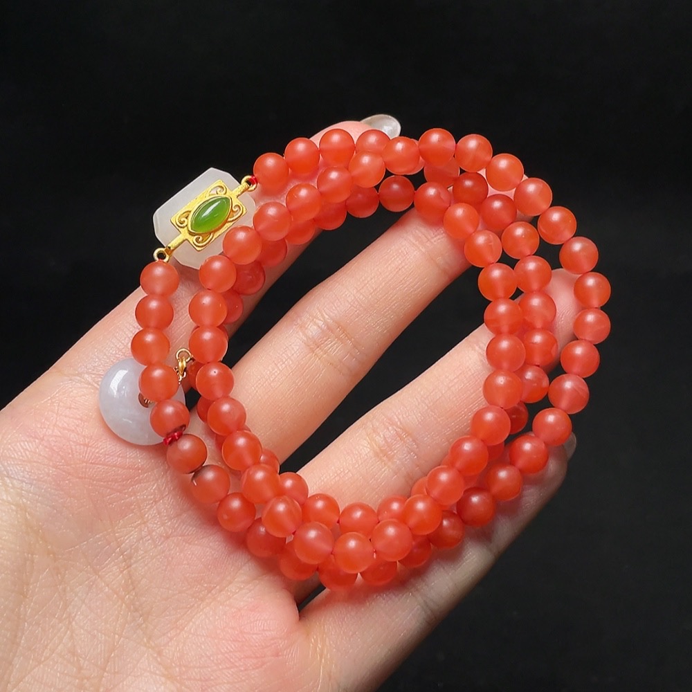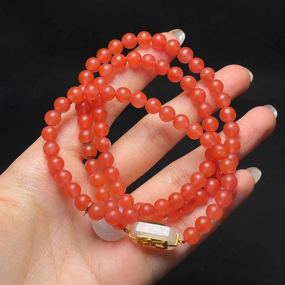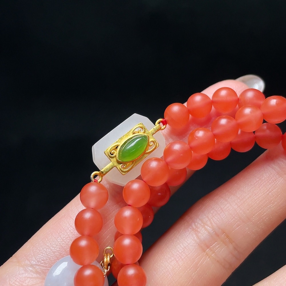 South Red Agate Bead Necklace with Jadeite and Hetian Jade, Containing Other Mineral Components, Visible Organic Matter, Non-Gold, Total Weight Approximately 32.9g, Size About 6mm