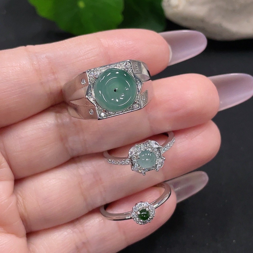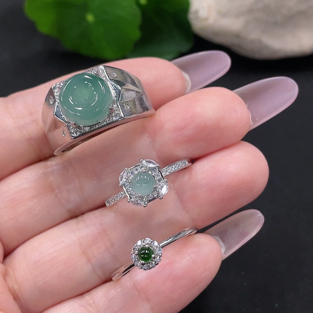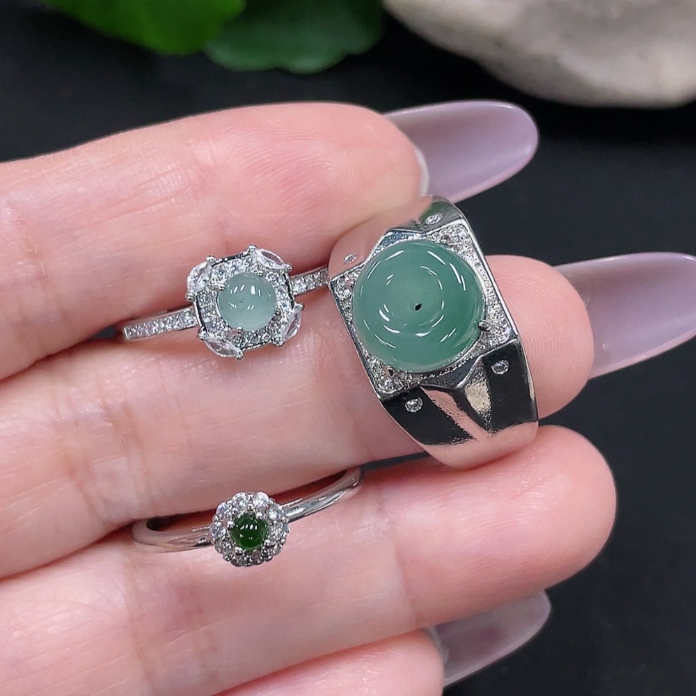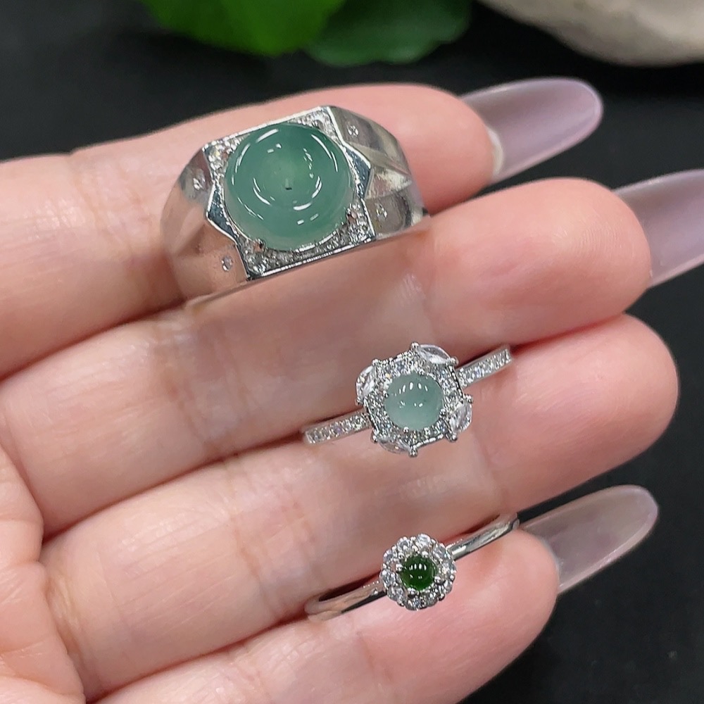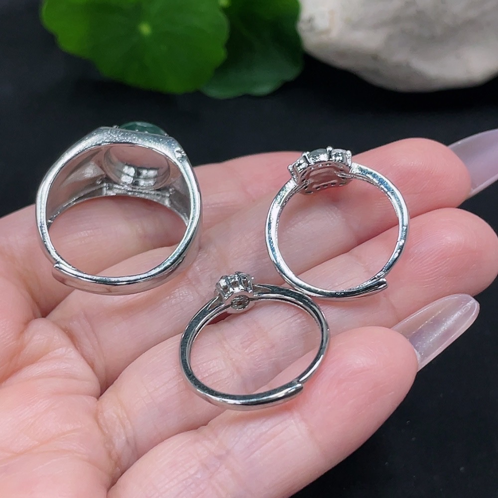Trezaar - Jadeite cabochon ring, non-gold setting, adjustable