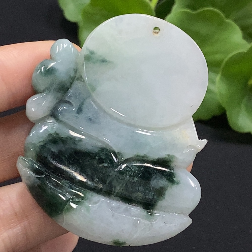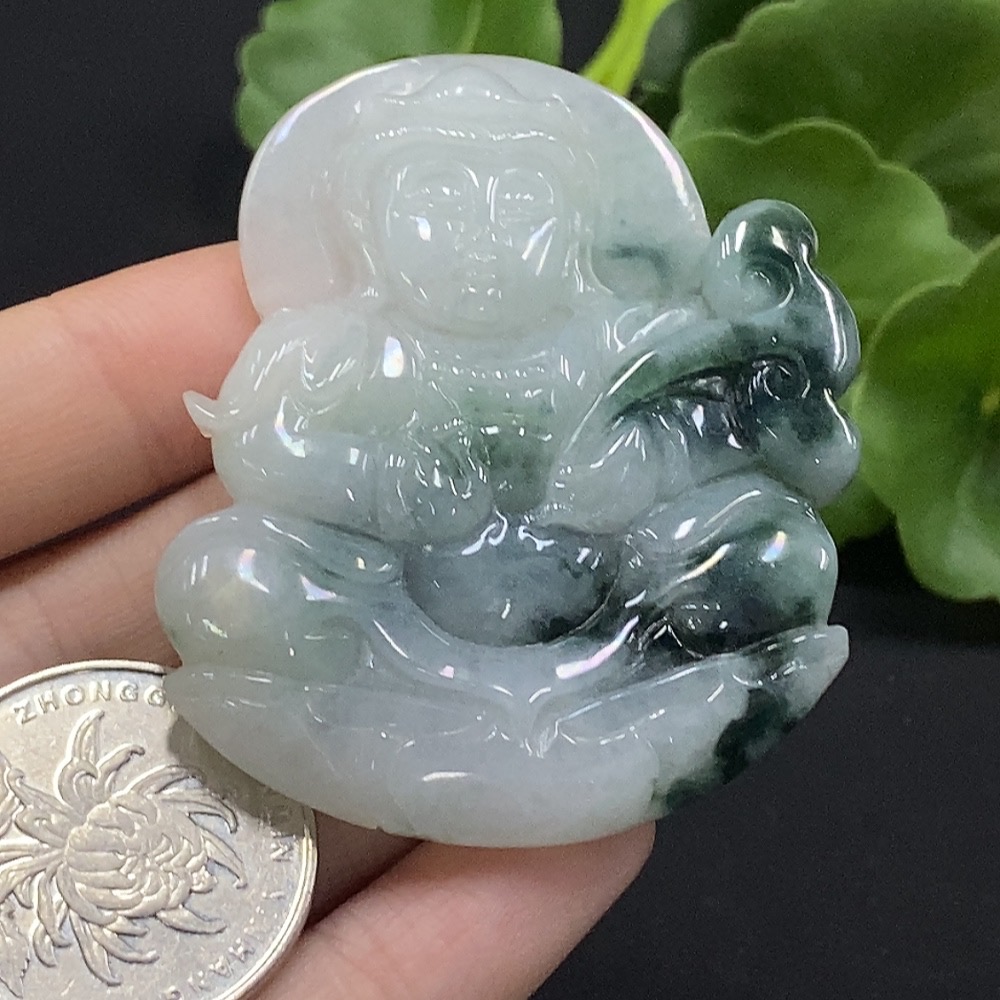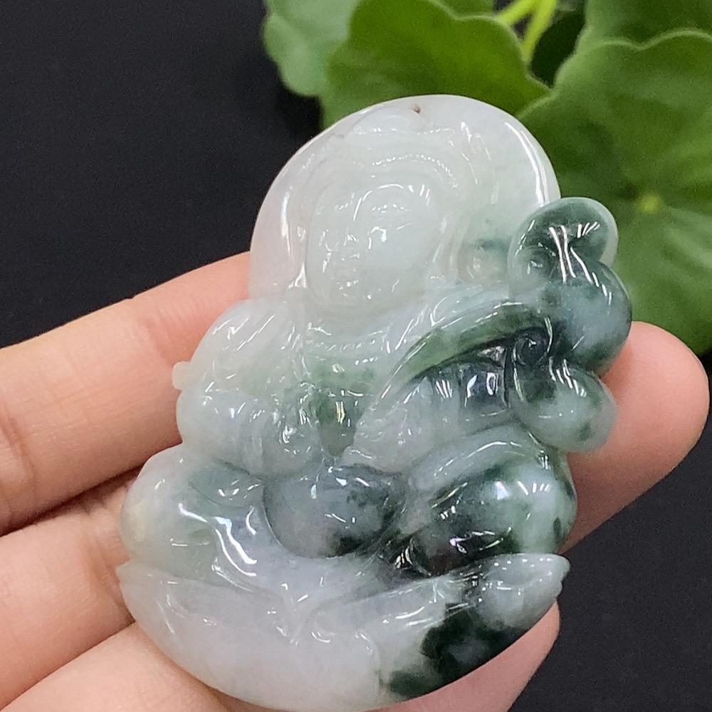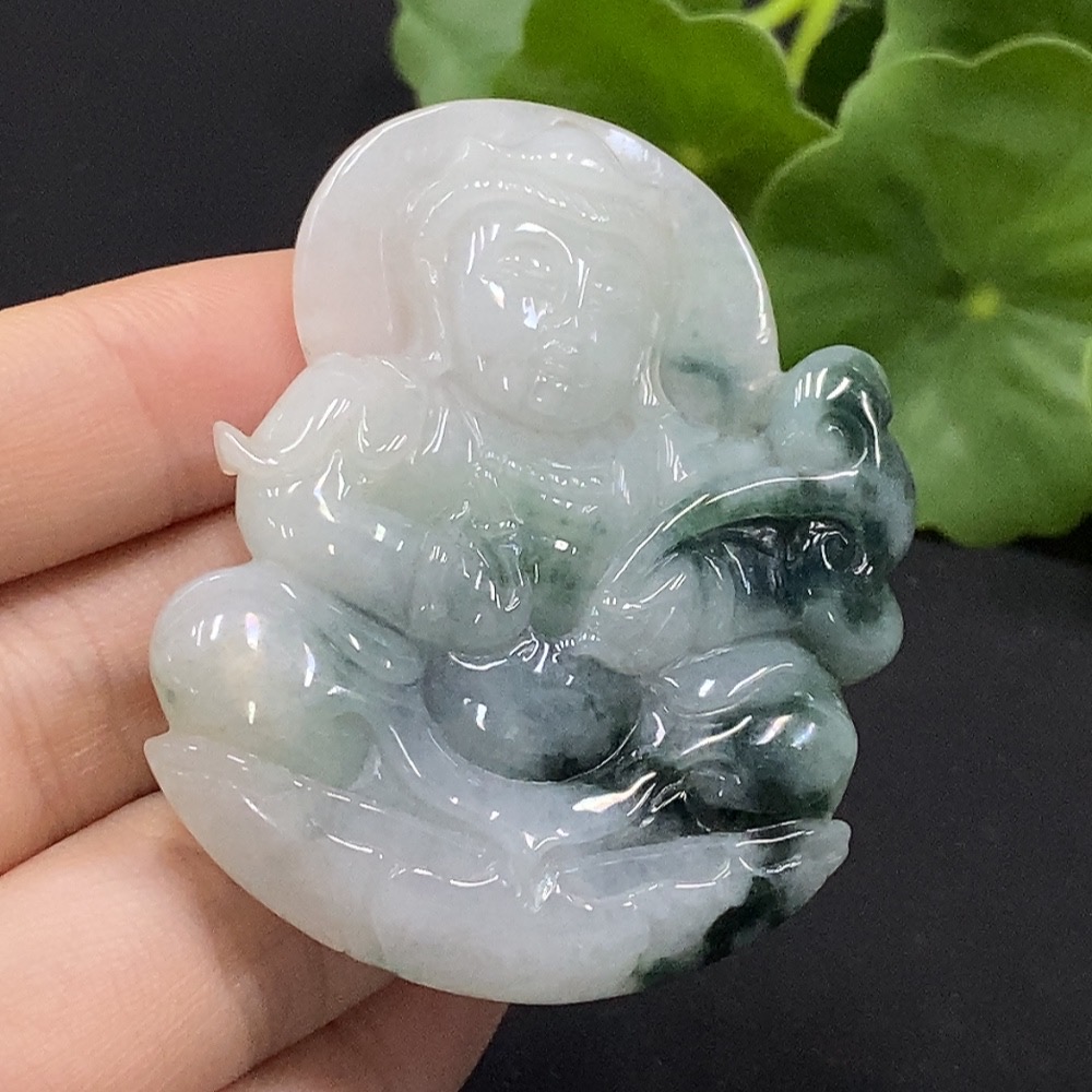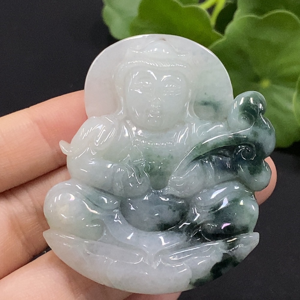 Jadeite Guanyin Pendant Total Weight Approx. 32.6g (Including Other Mineral Components)