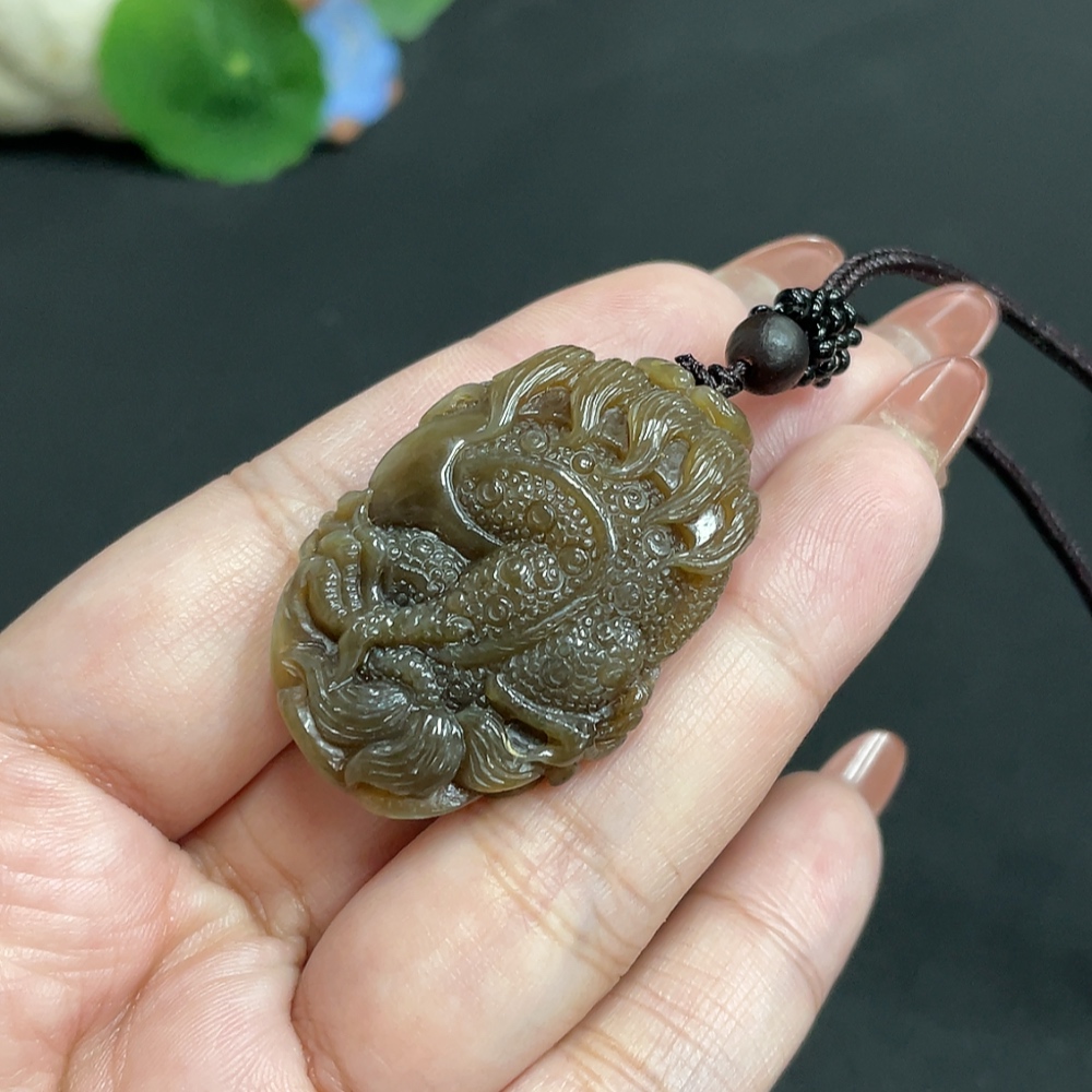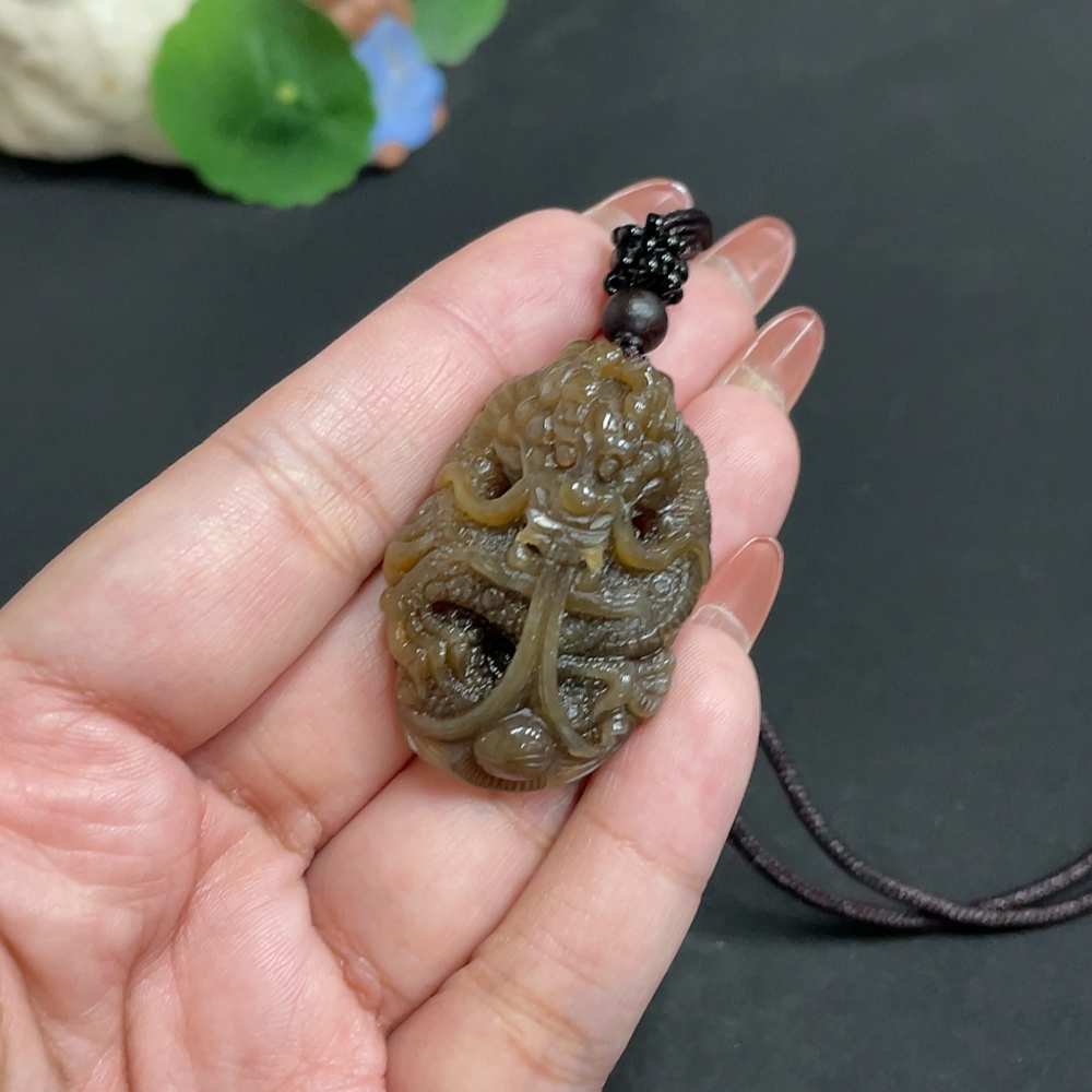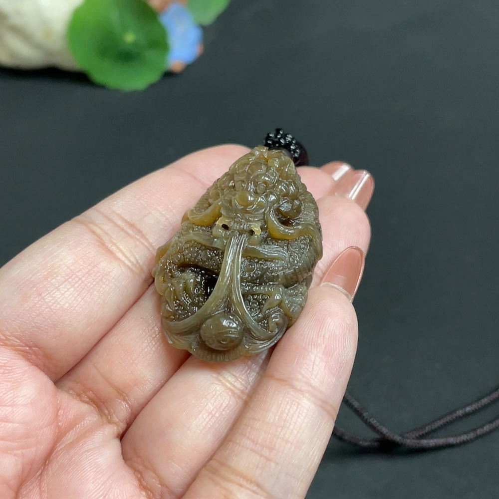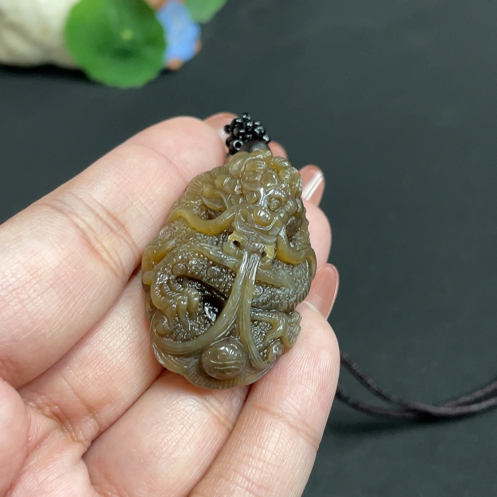 Hetian Jade Pendant Dragon Total Weight [including rope] 26.4g