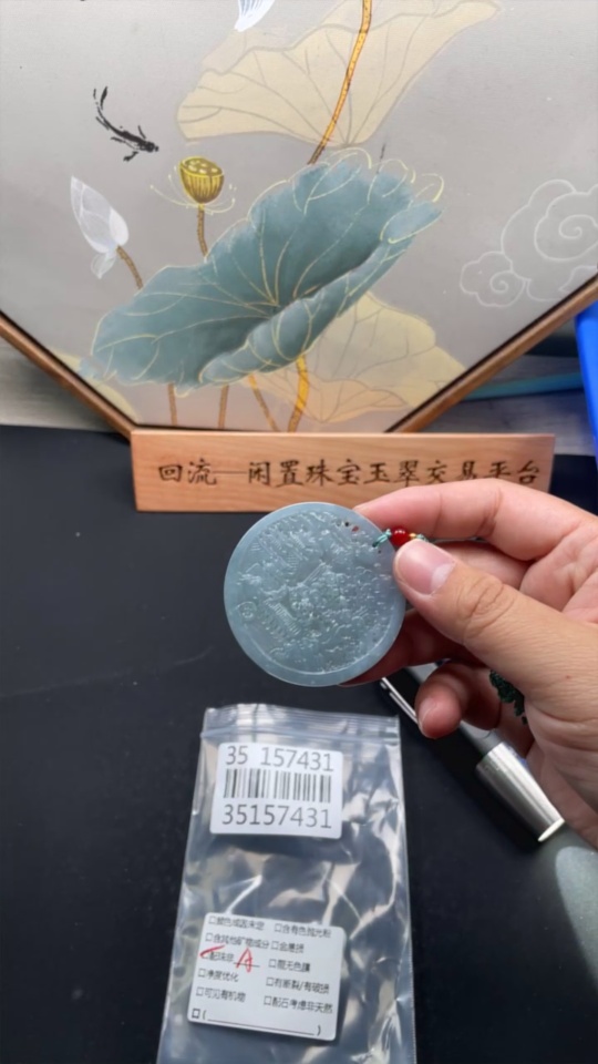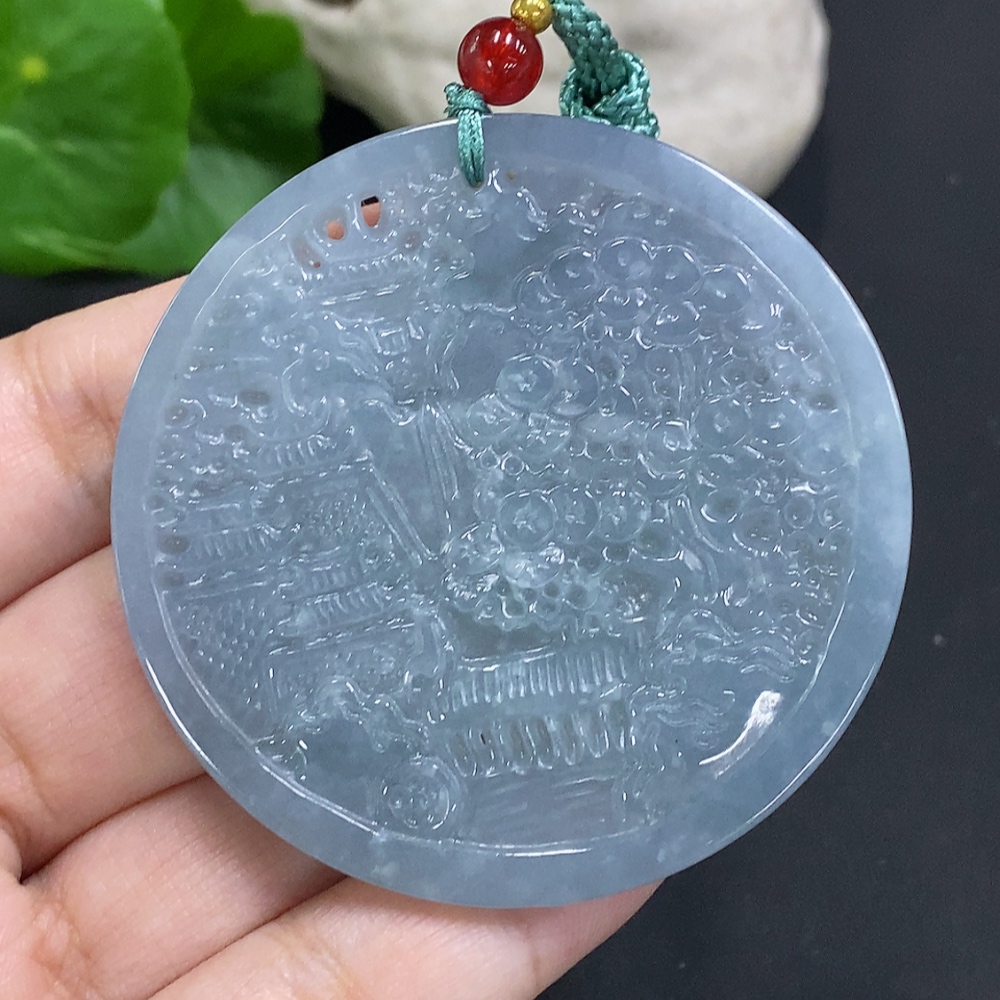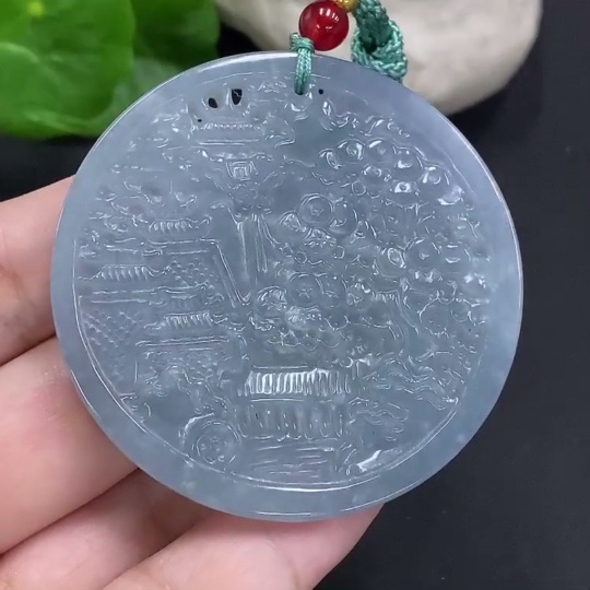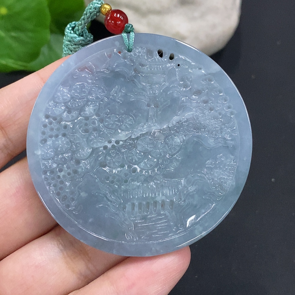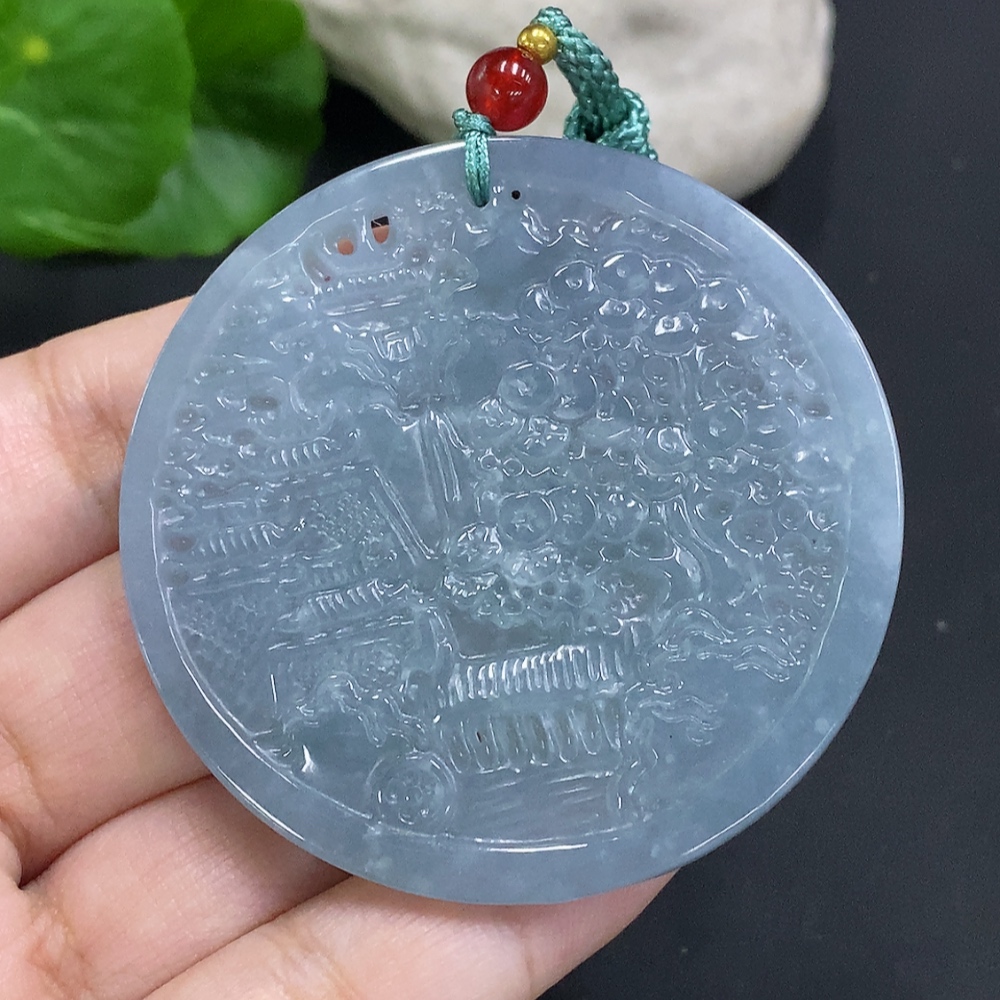 Jadeite Landscape Pendant Total Weight Approx. 25g (Matching Beads Non-Grade A)