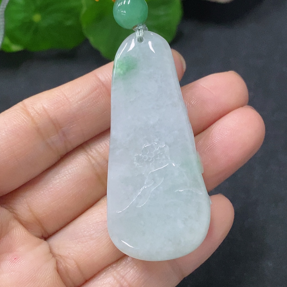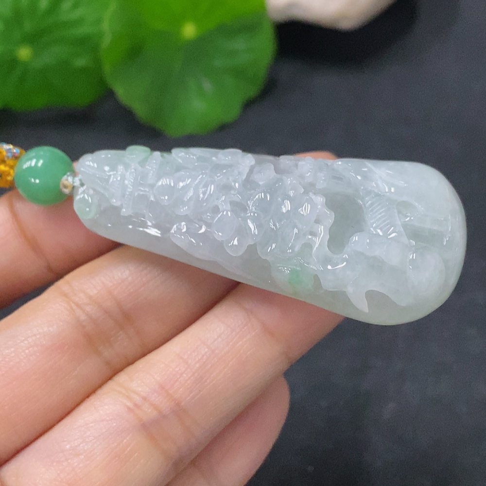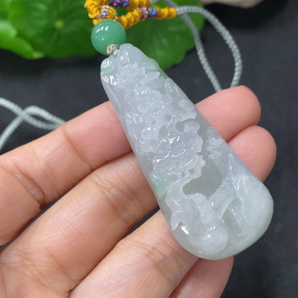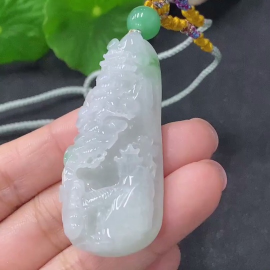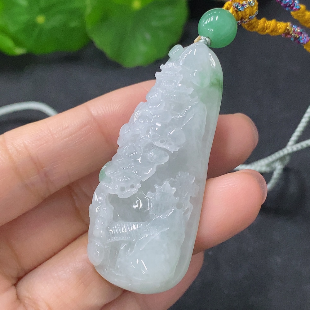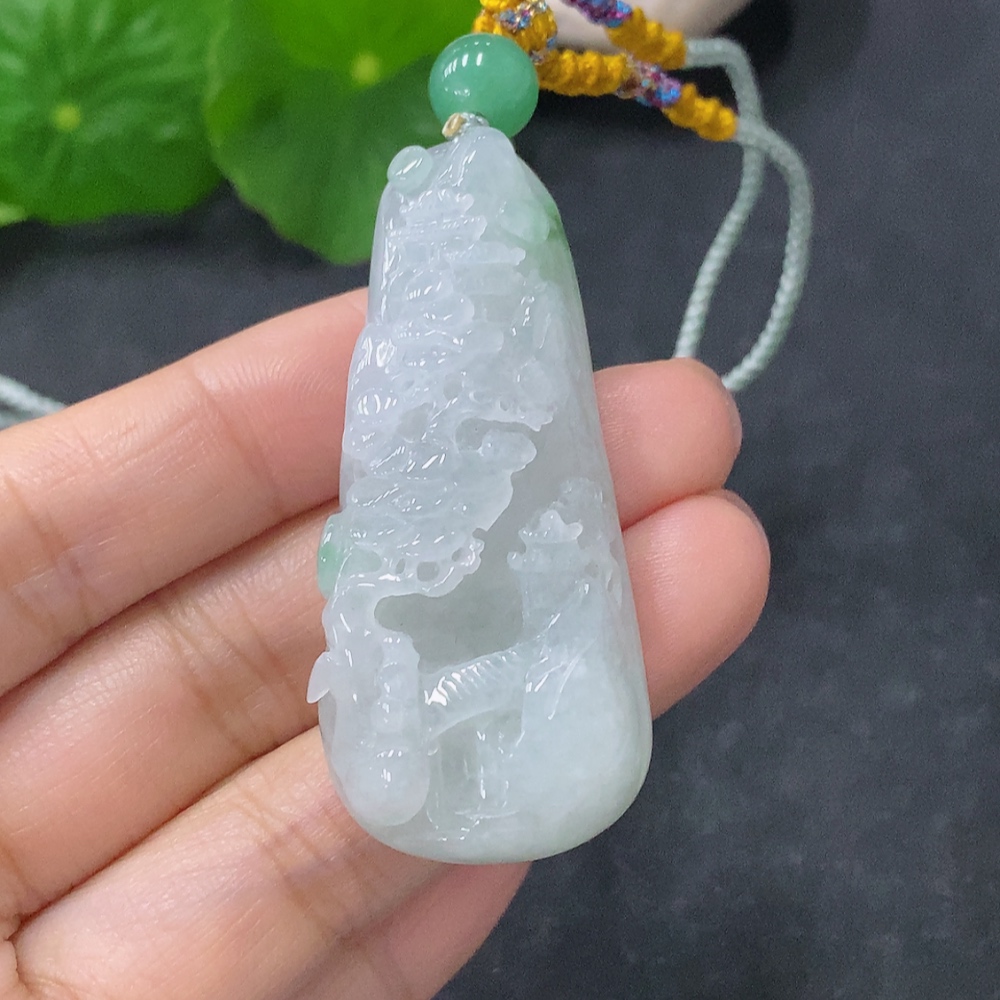 Jadeite Pendant Landscape Plaque Total Weight Approx. 26.6g Including Cord Non-Grade A Beads