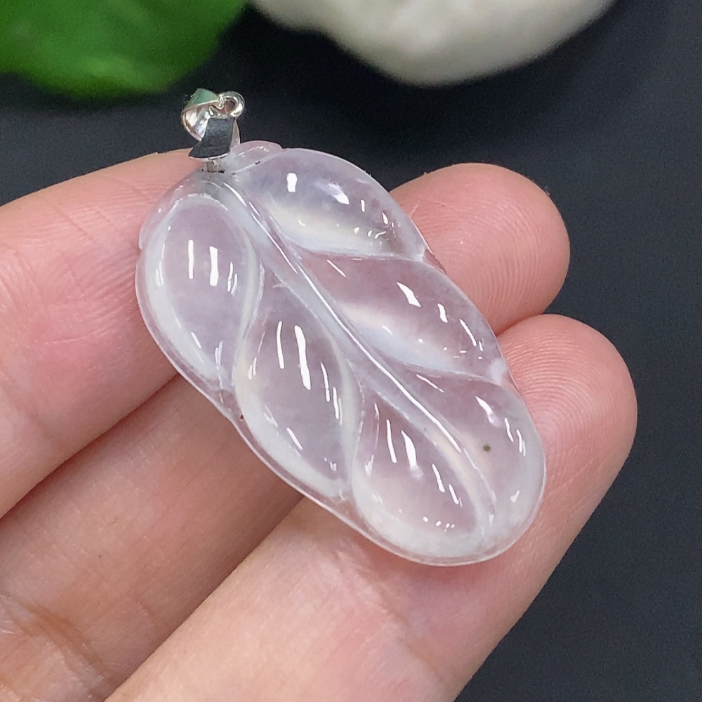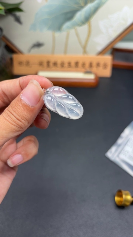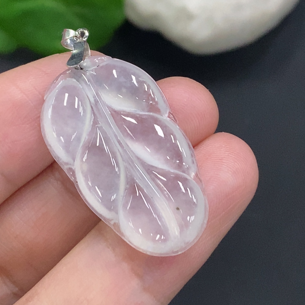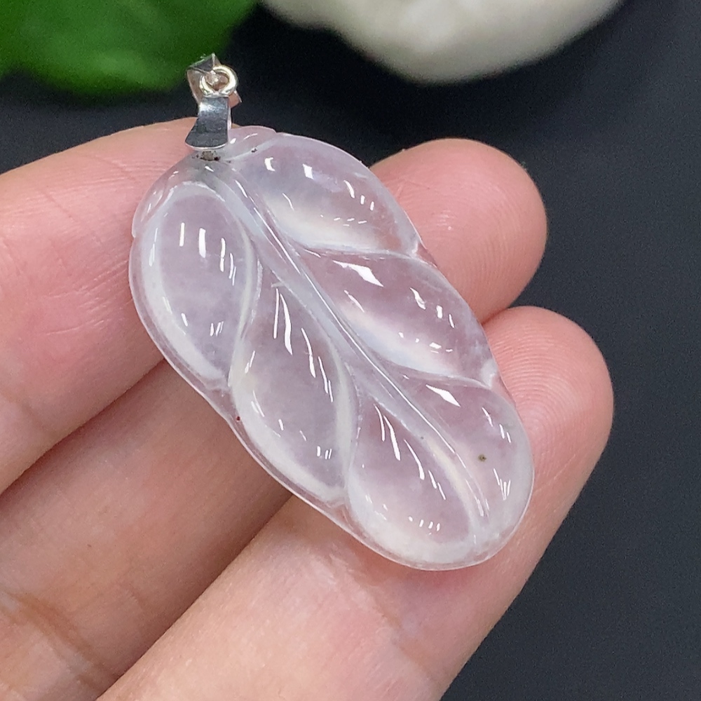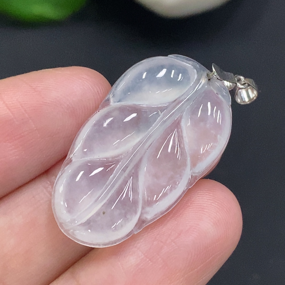 Jadeite Leaf Pendant with 18K Gold Clasp, Total Weight Approximately 4.1g