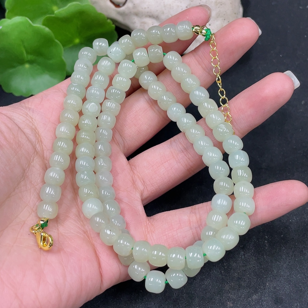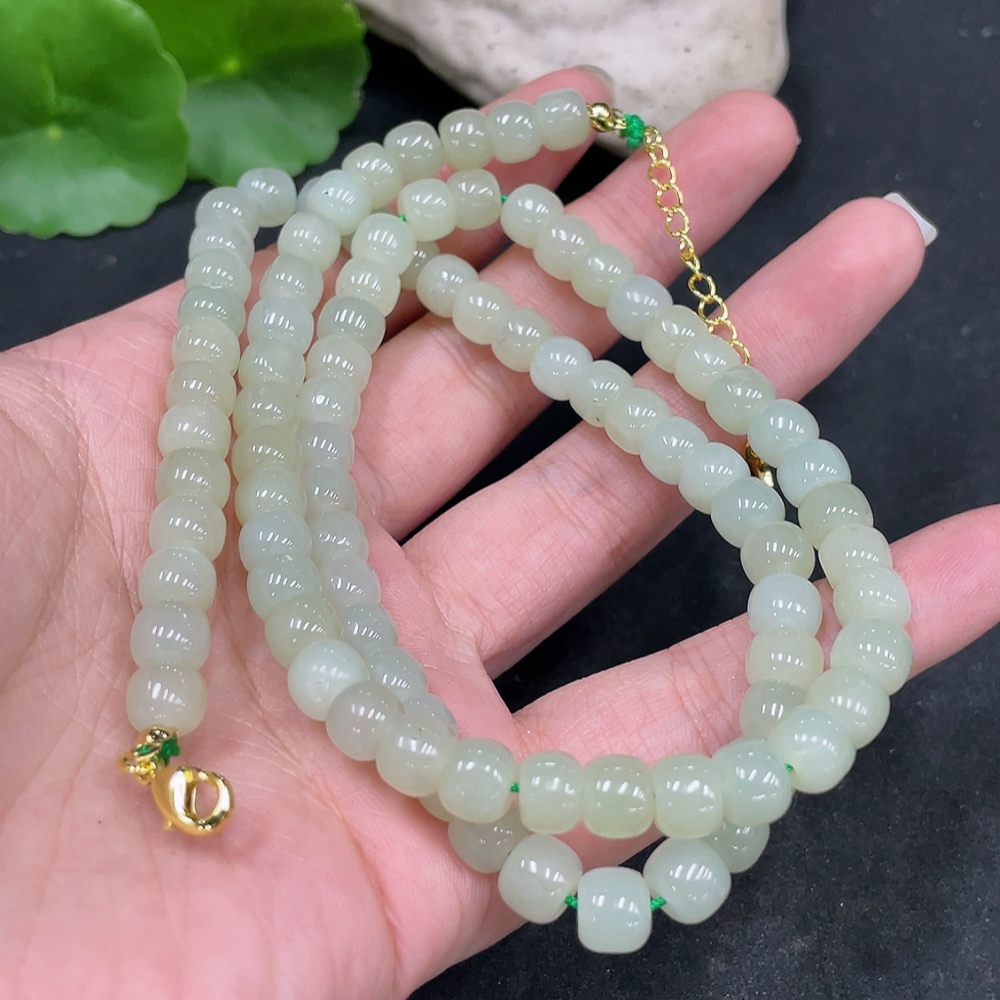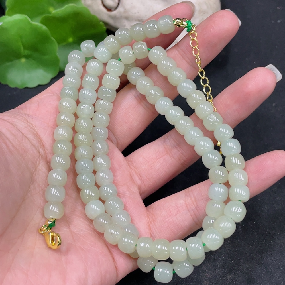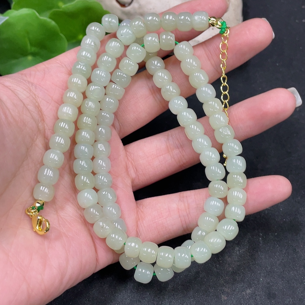 Hetian Jade Bead Necklace Approx. 6.7mm Non-Gold Total Weight About 47g