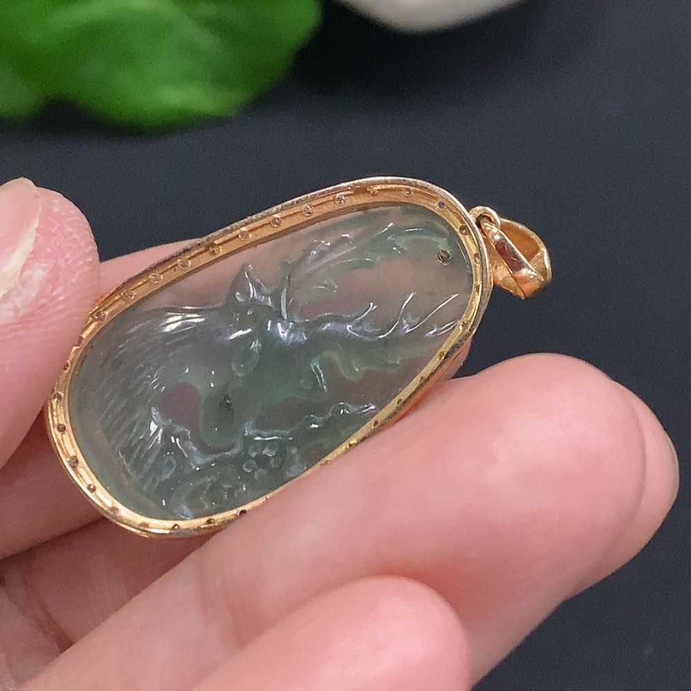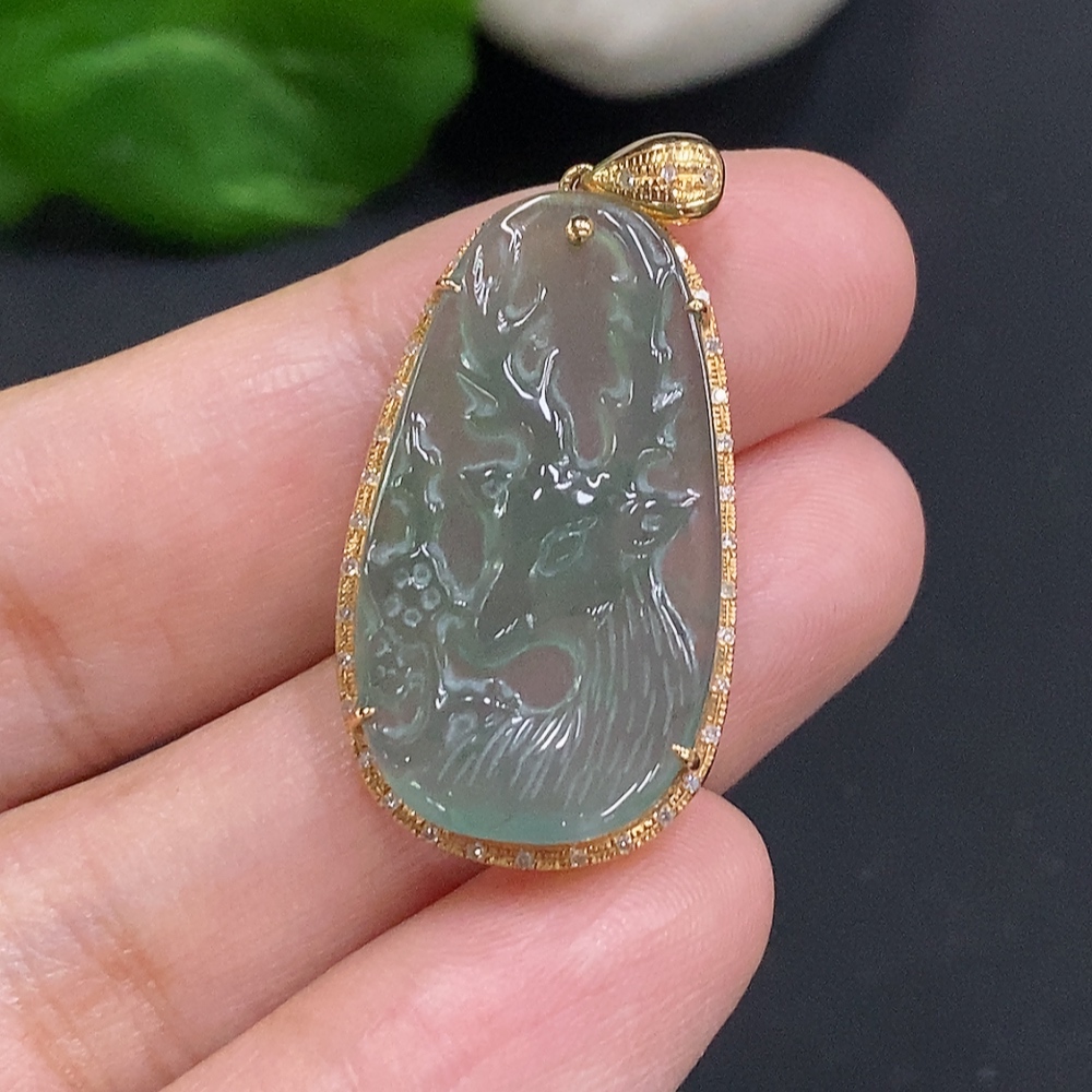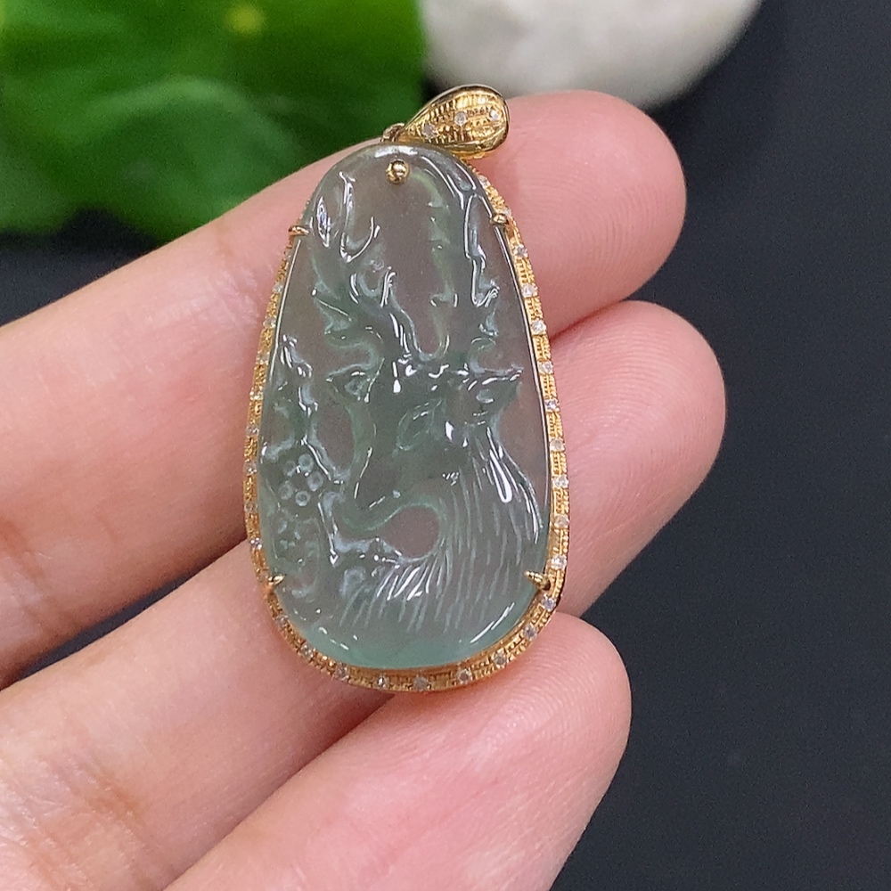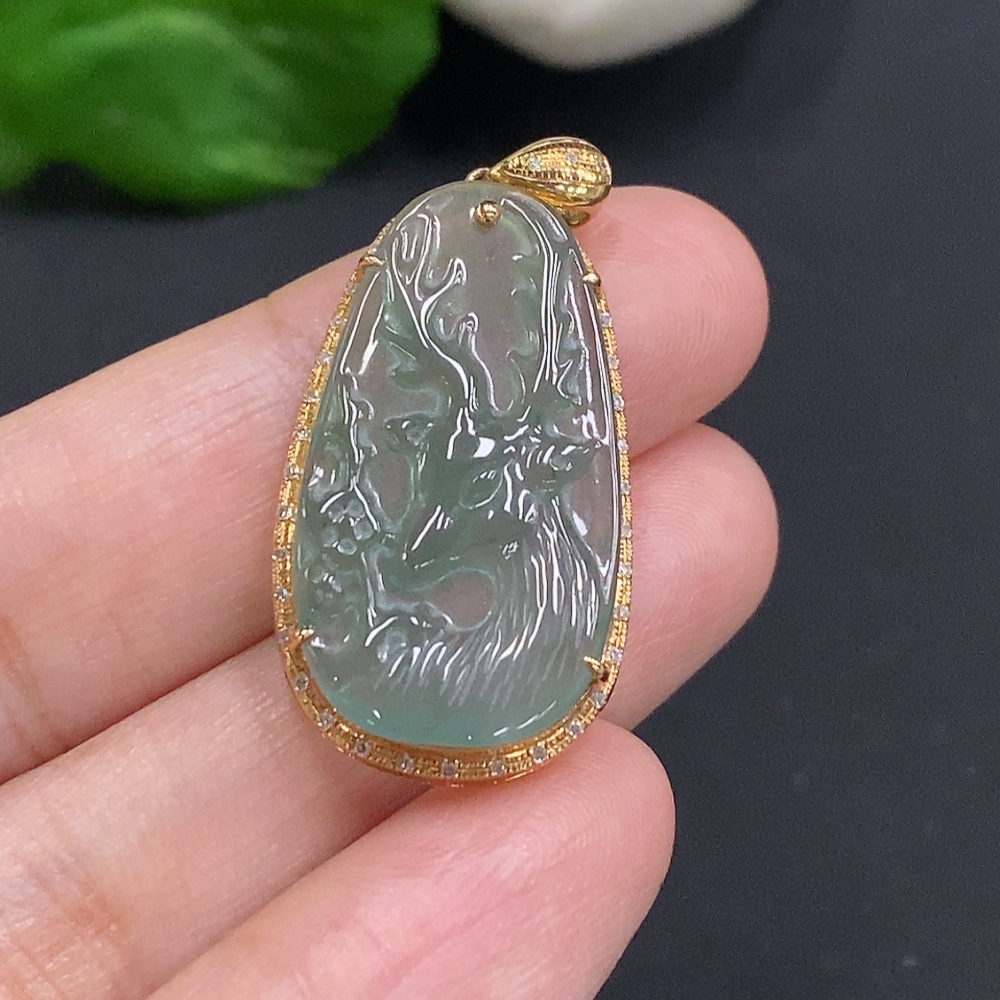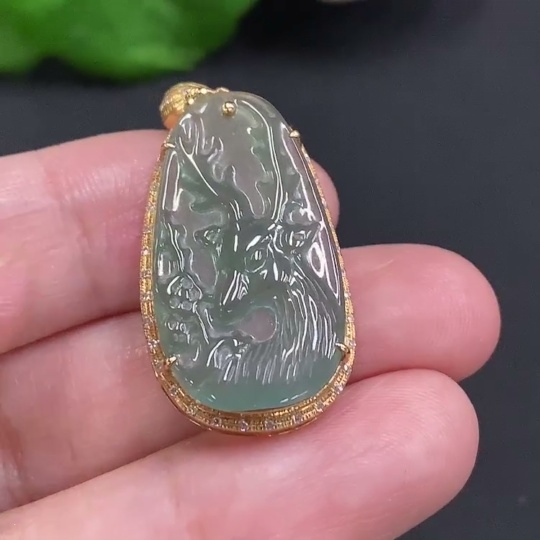 Jadeite Pendant with 18K Gold Setting Total Weight Approx. 3.8g Accented with Diamonds
