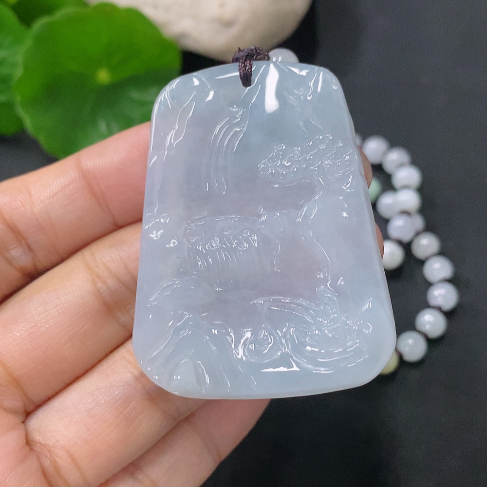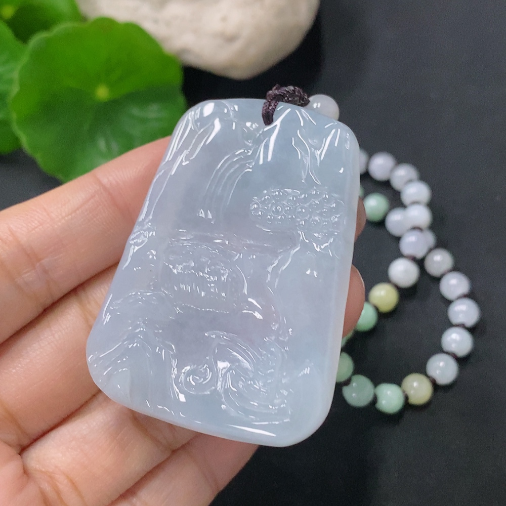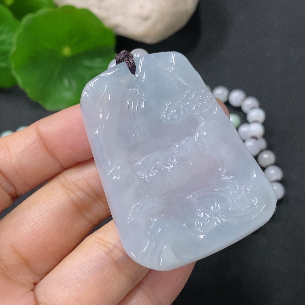Jadeite Pendant Landscape Plaque Total Weight Approx. 45.95g Including Chain