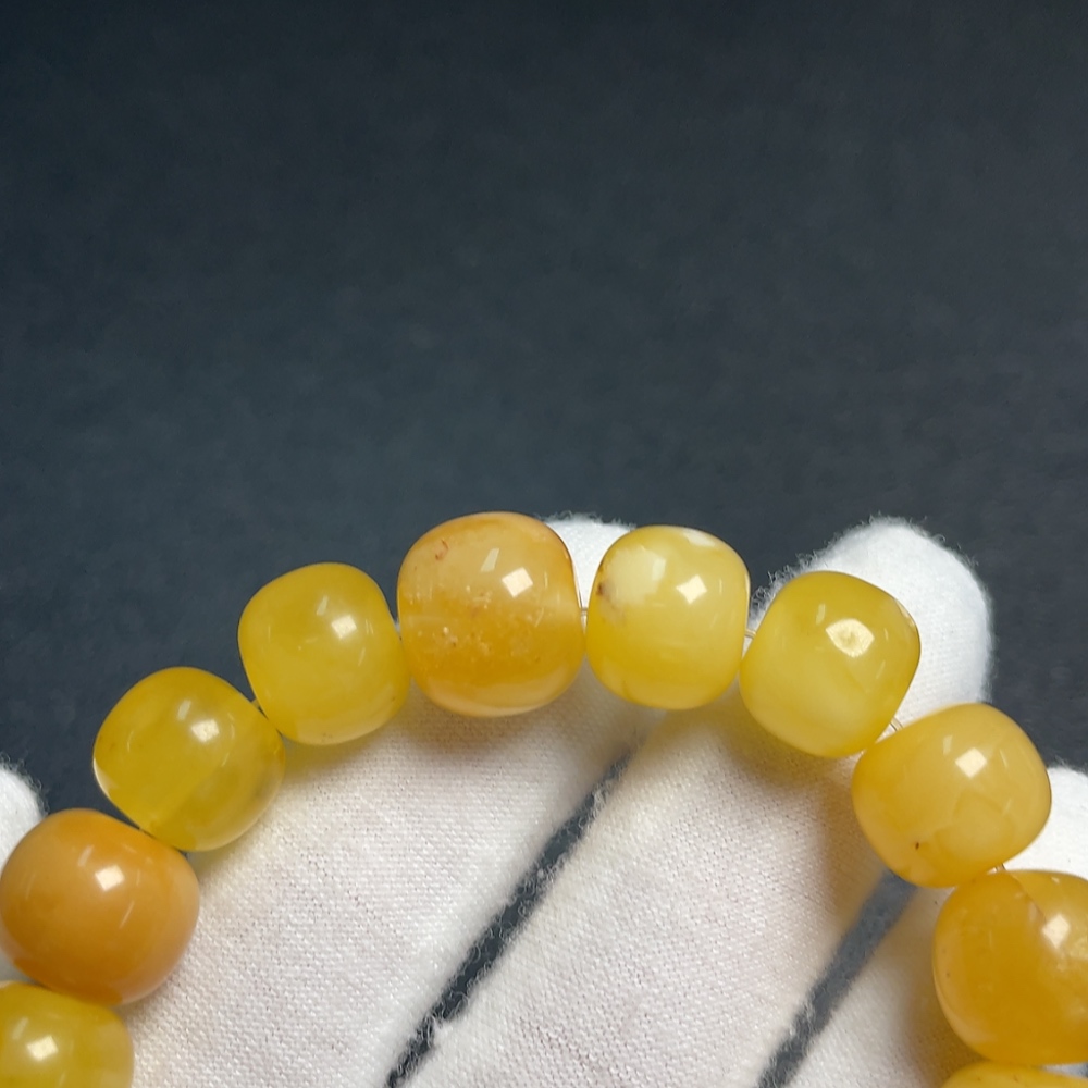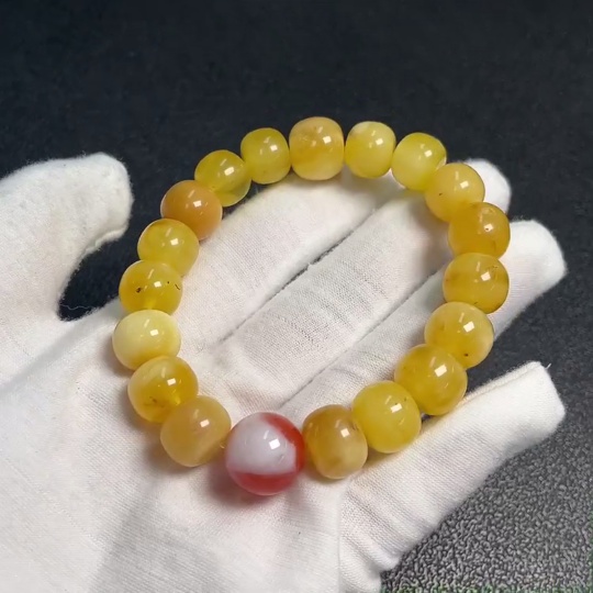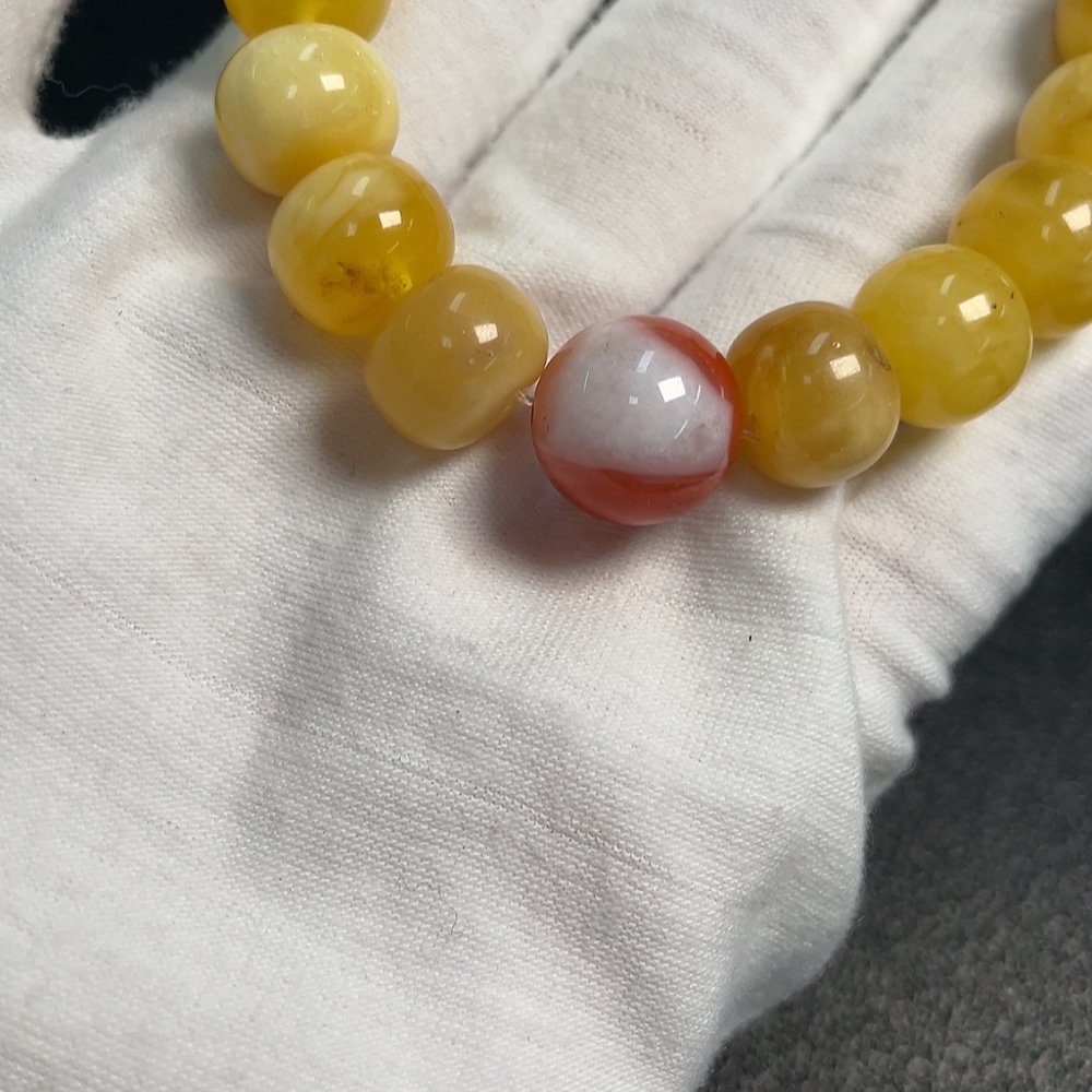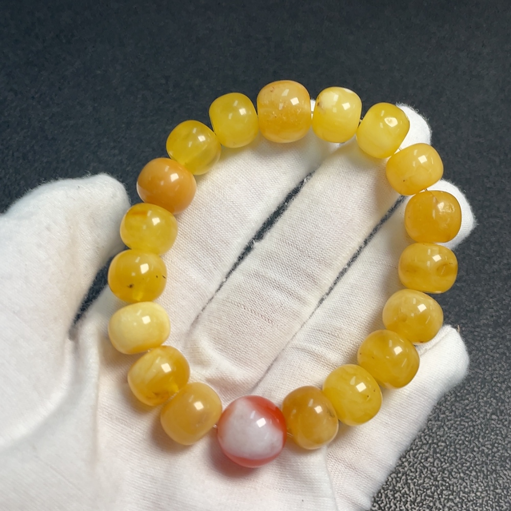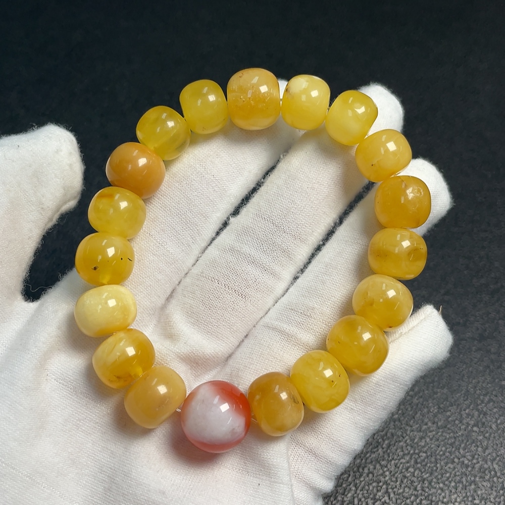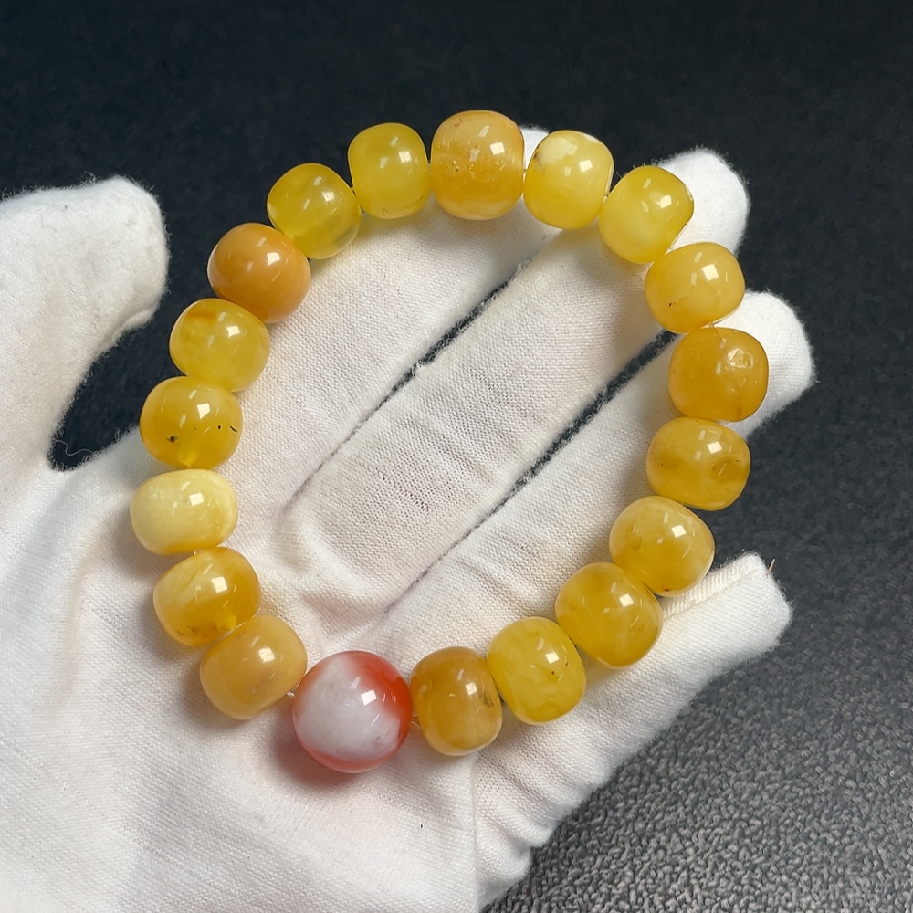 Amber Beeswax Bracelet, Total Weight Approx. 19.45g, Size 12.4mm, Paired with Southern Red Agate Containing Visible Organic Matter