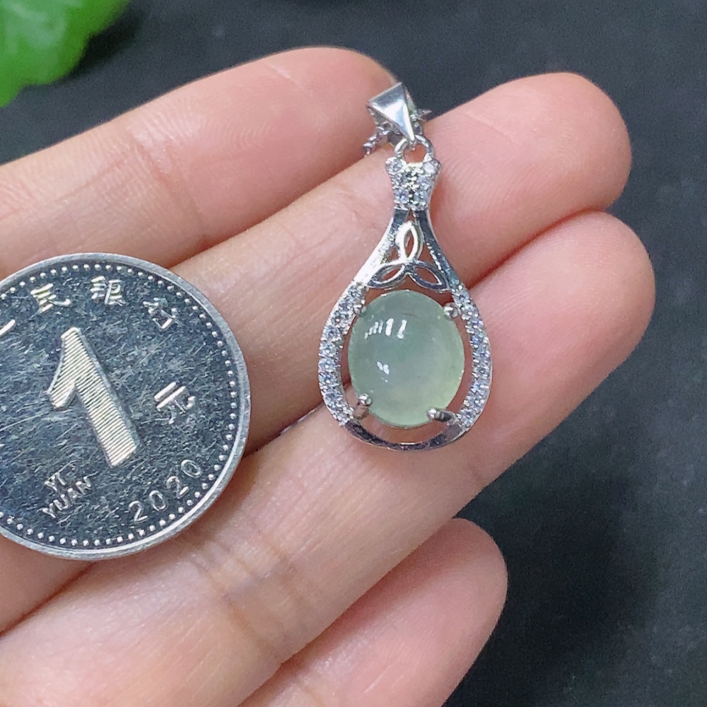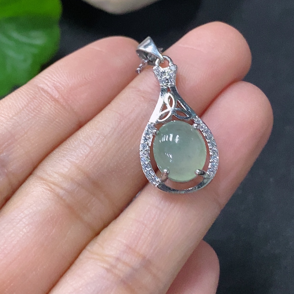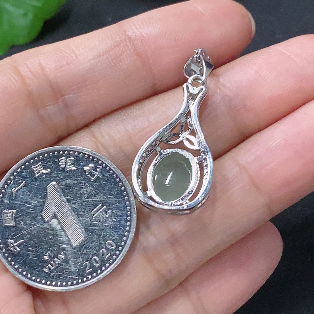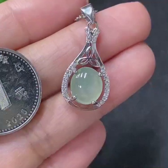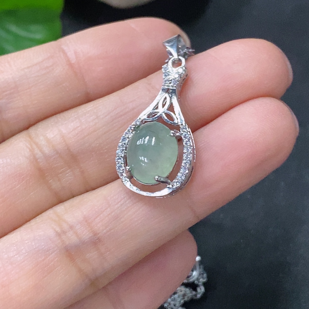 Jadeite inlaid cabochon pendant non-gold total weight approx. 3.39g including chain