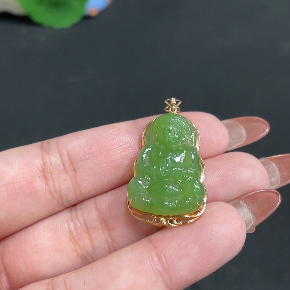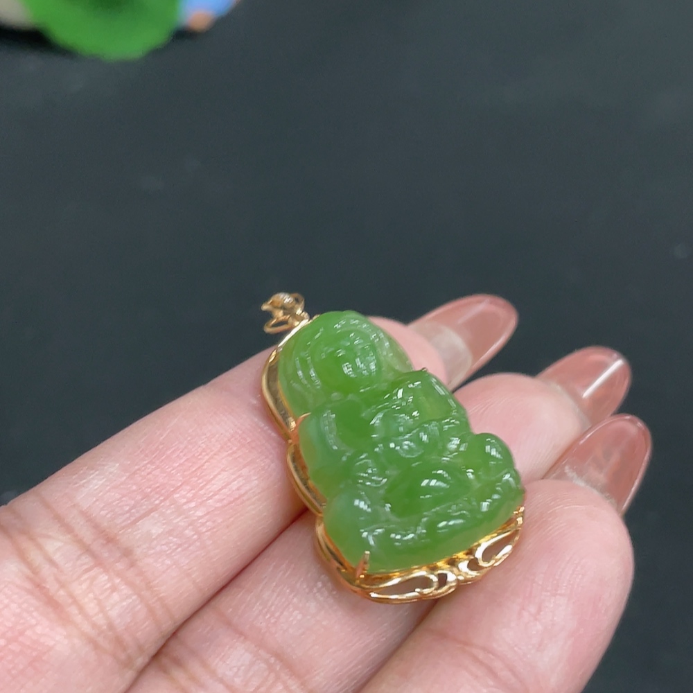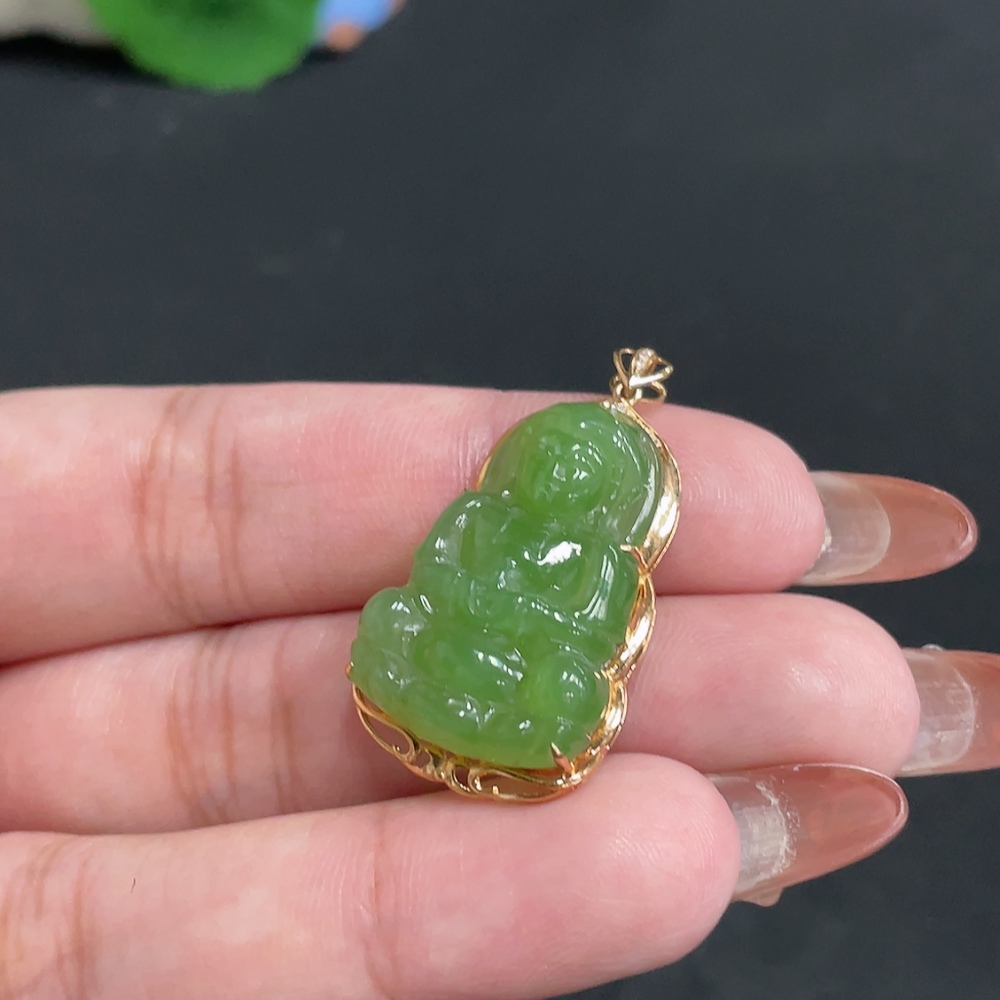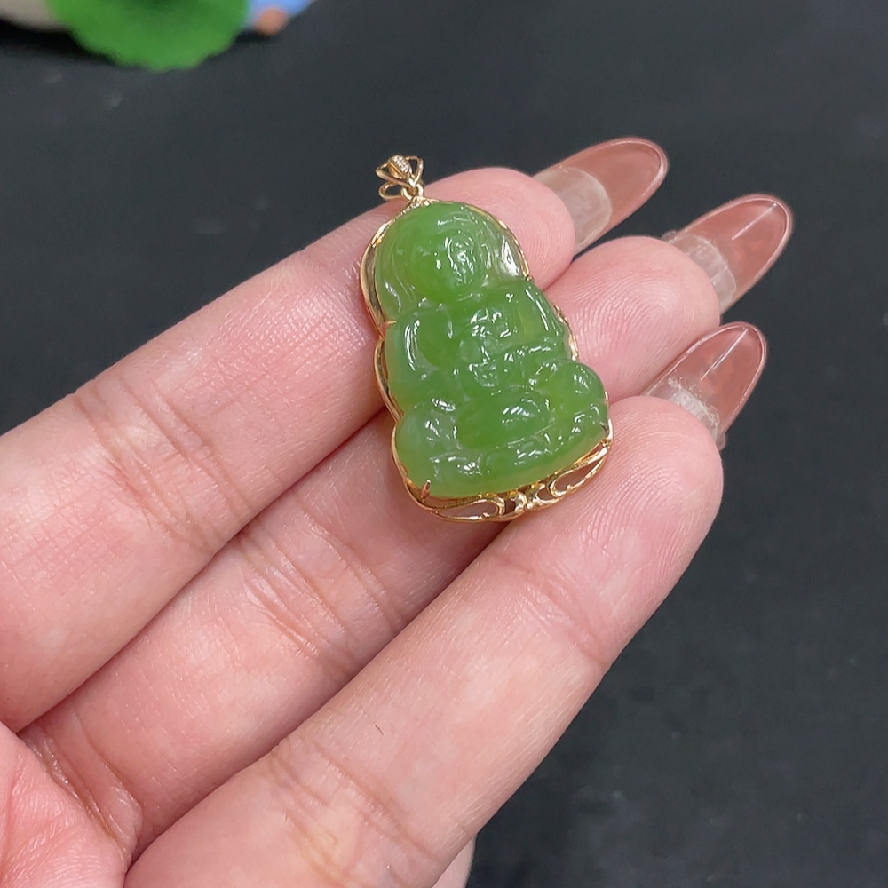 Hetian Jade Jasper Inlaid Pendant Guanyin Total Weight Approx. 4.5g 18k with Diamond Accents