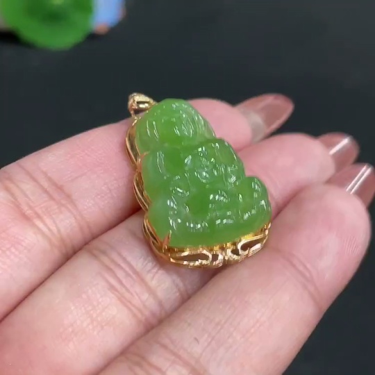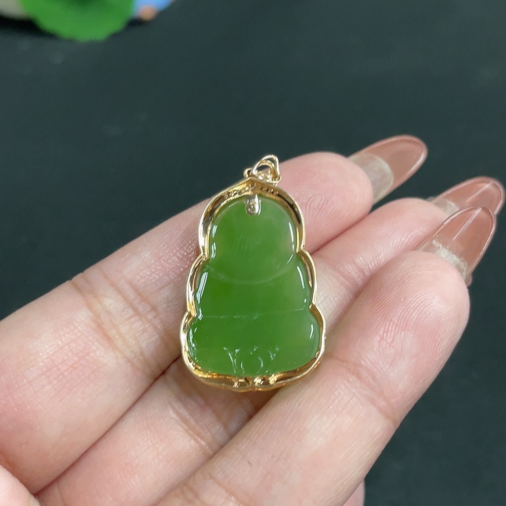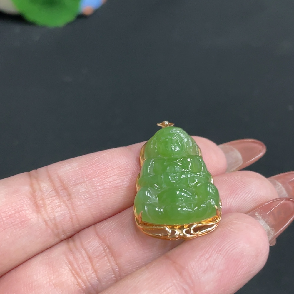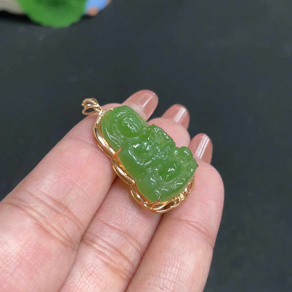 Hetian Jade Jasper Inlaid Pendant Guanyin Total Weight Approx. 4.5g 18k with Diamond Accents