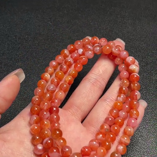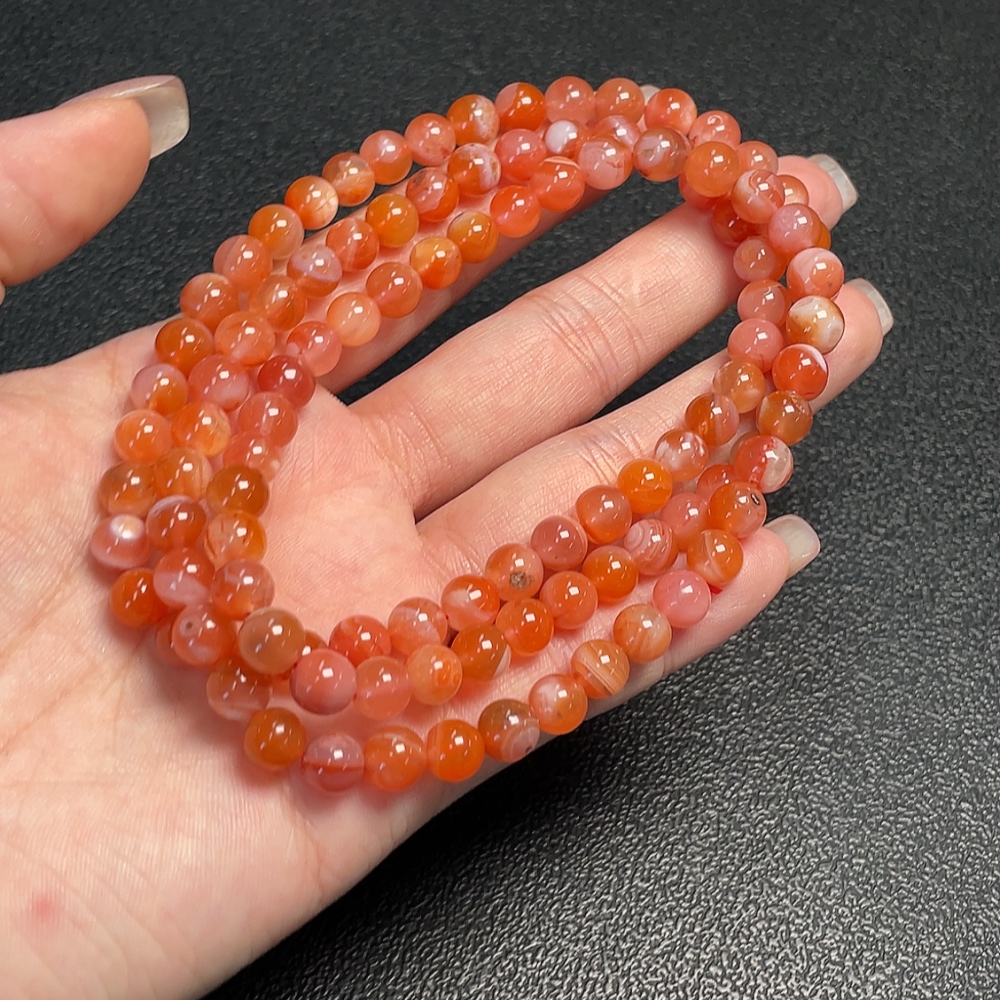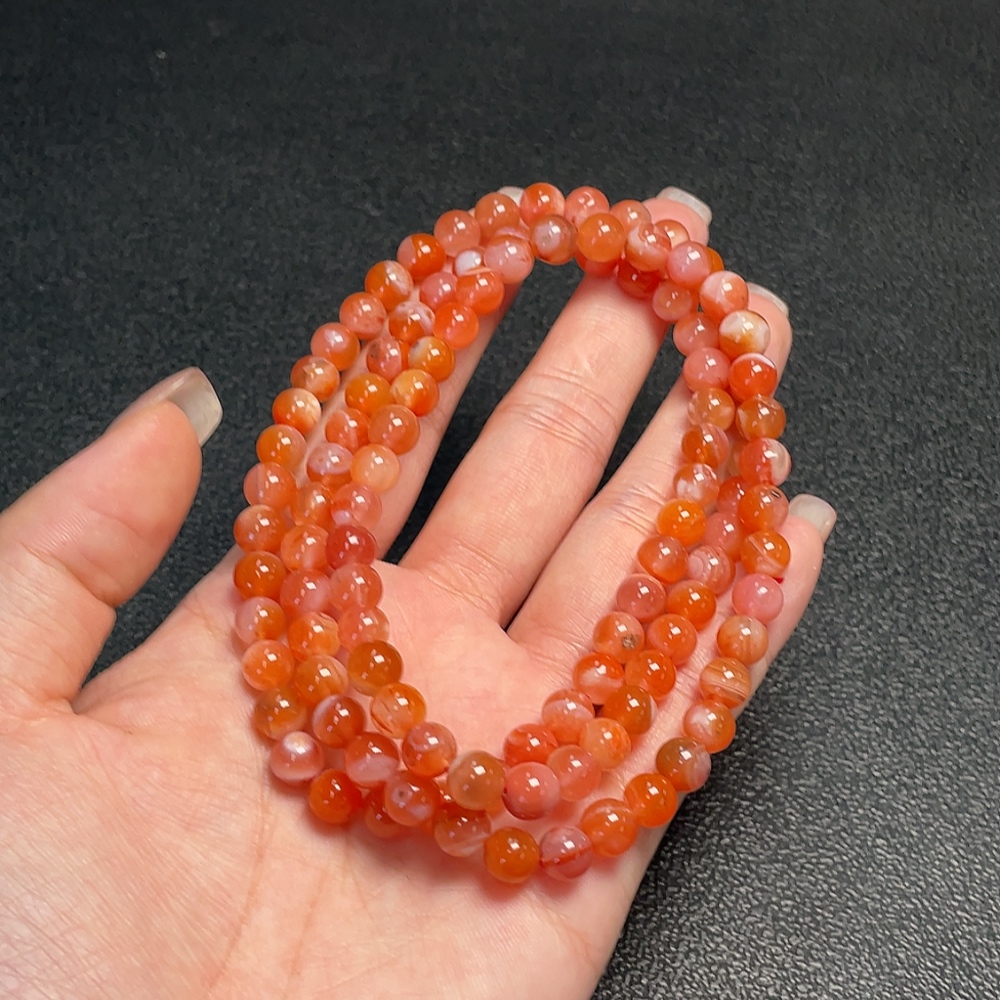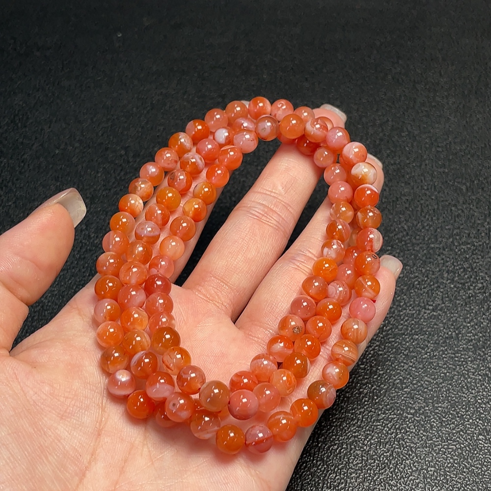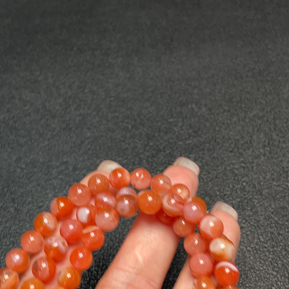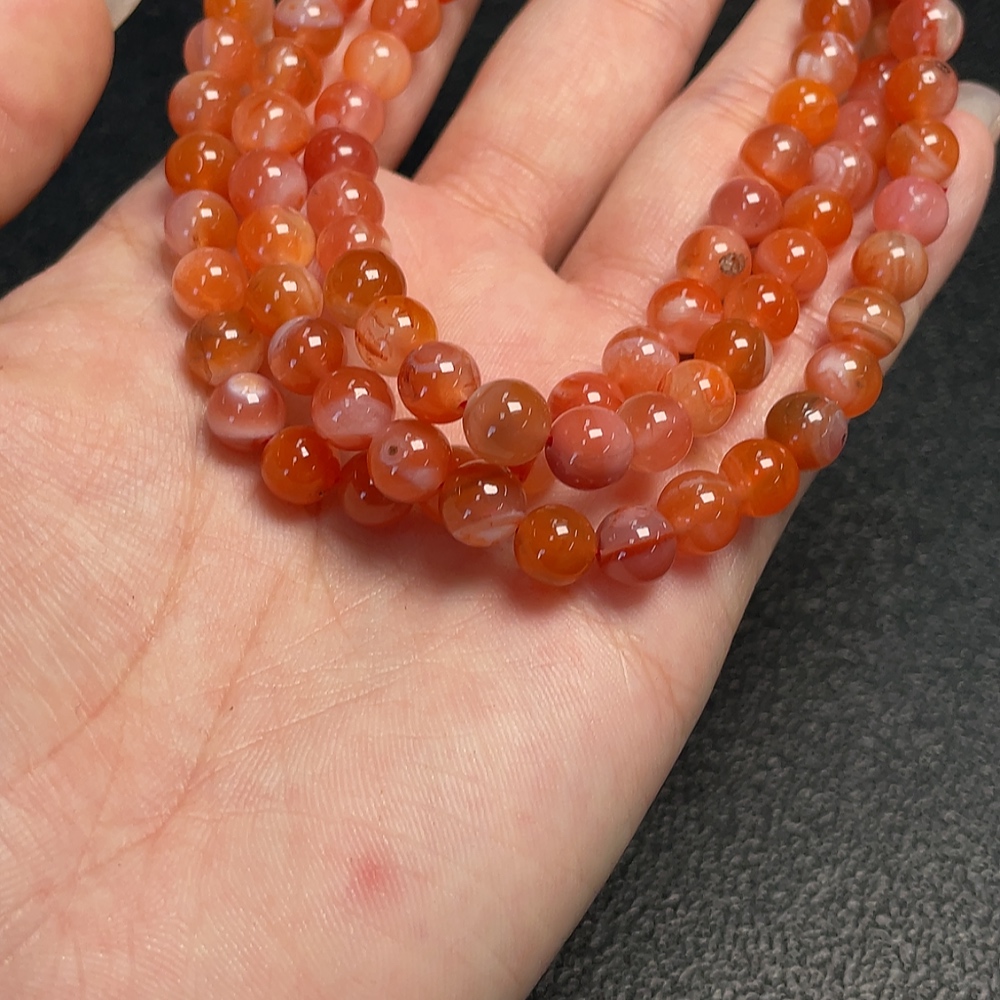 South Red Agate Bead Necklace with Visible Organic Matter, Total Weight Approximately 43.95g, Bead Size About 6.8mm