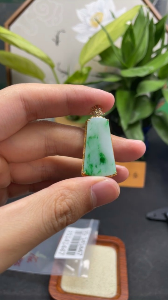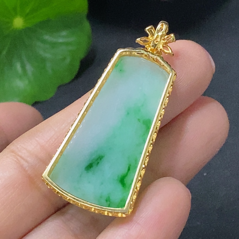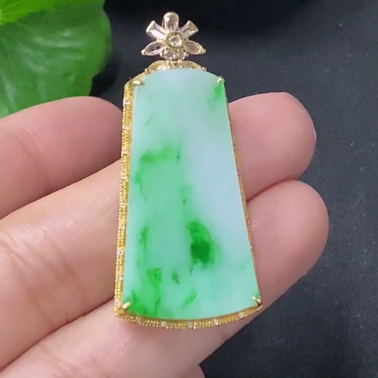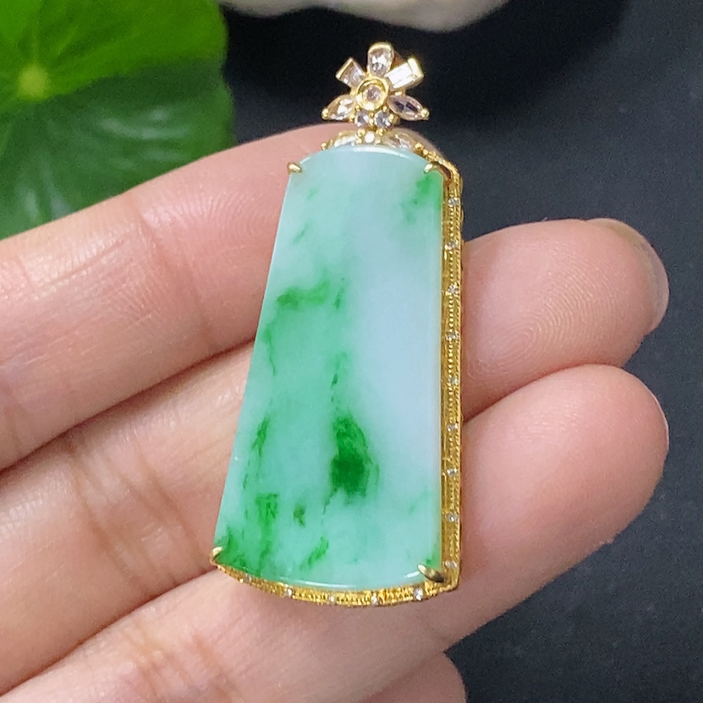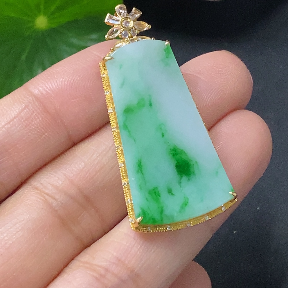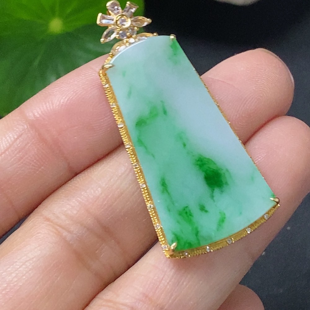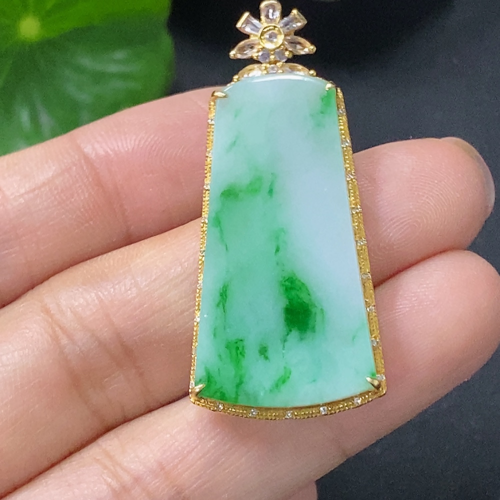 Jadeite Plain Pendant with 18k Diamond Accents (Minimal Side Stones Only) Total Weight Approx. 4.95g