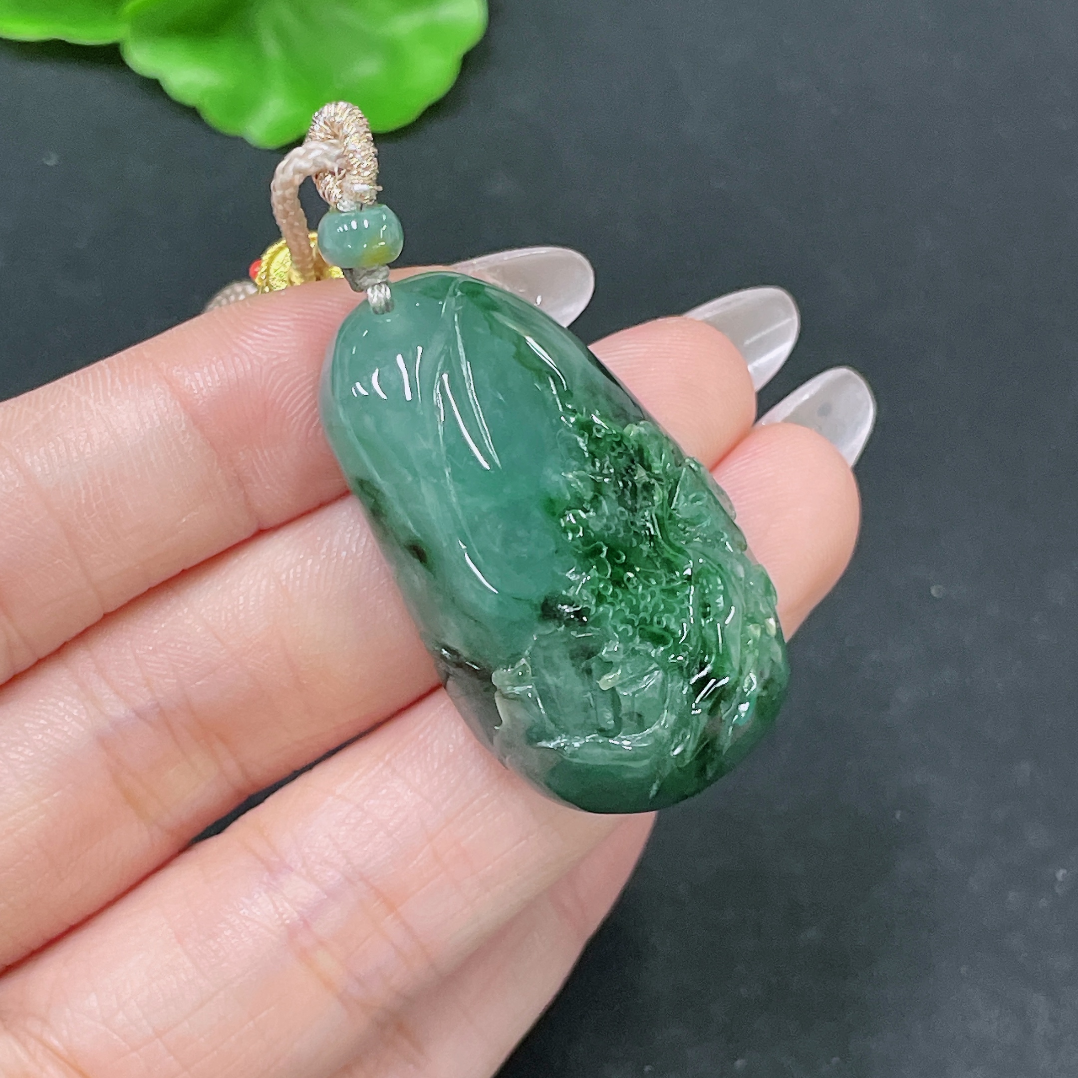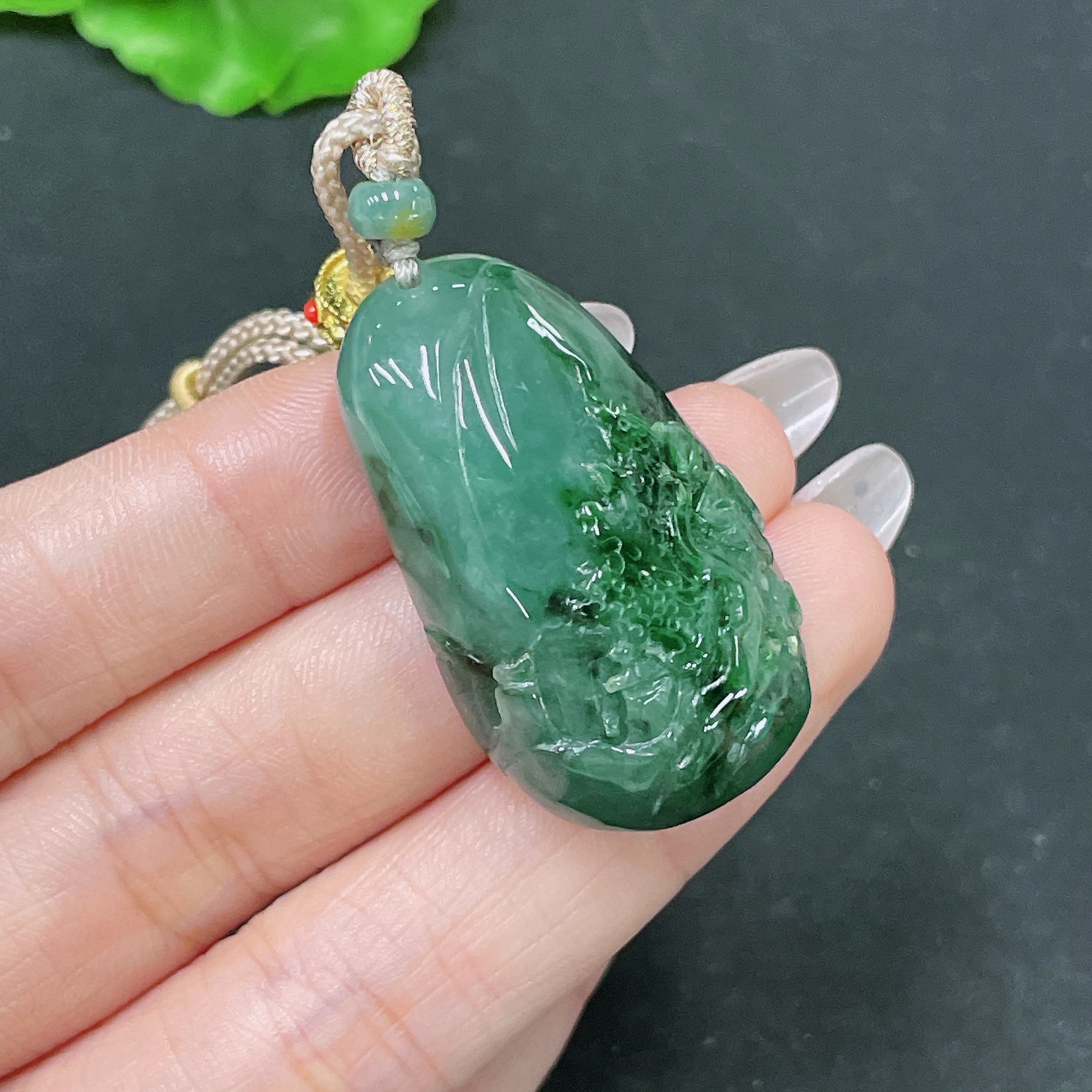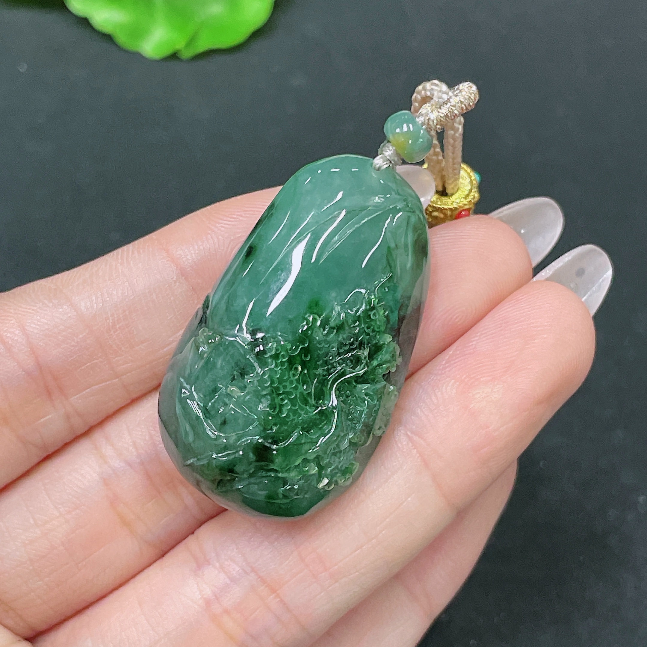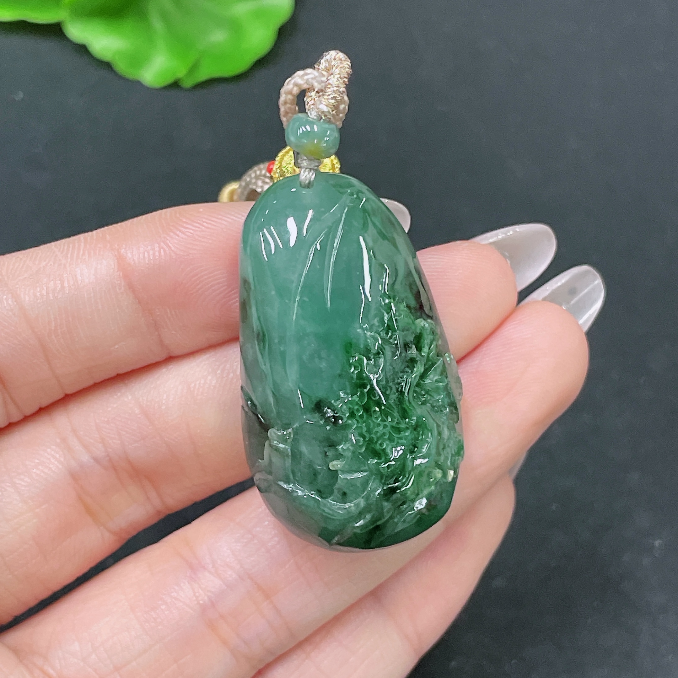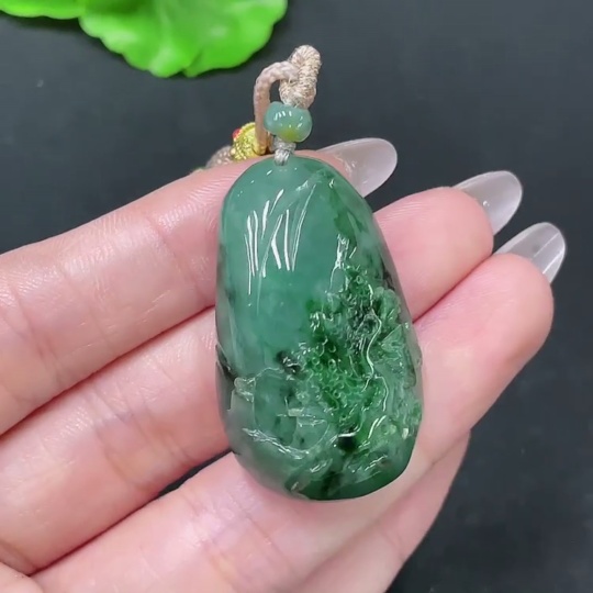 Jadeite Pendant Landscape with Cord Total Weight Approx. 23.26g